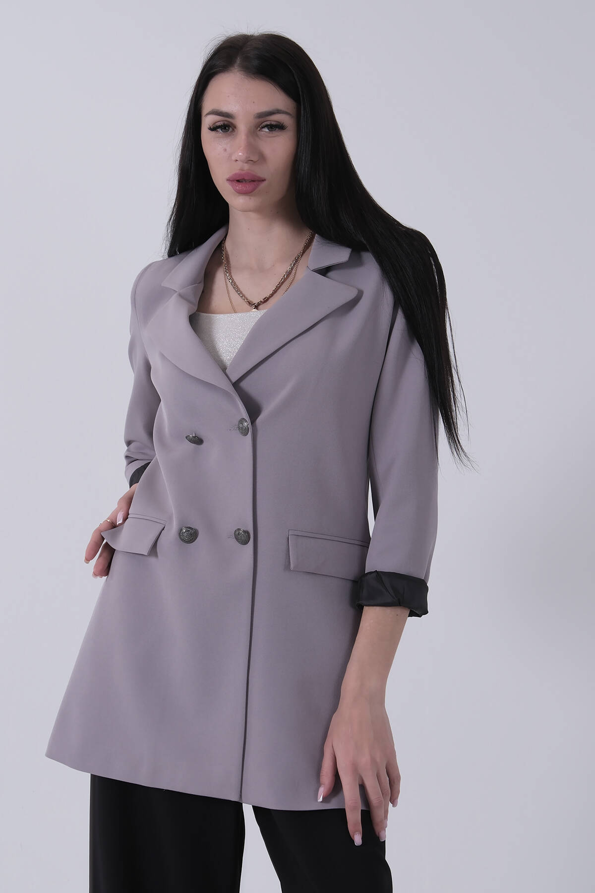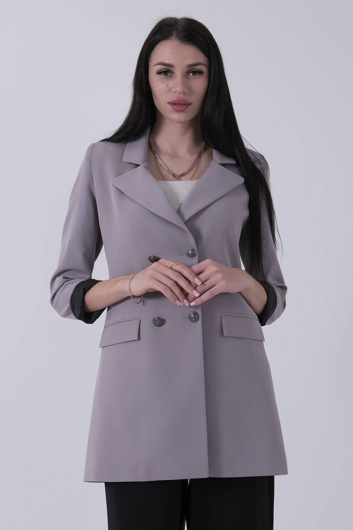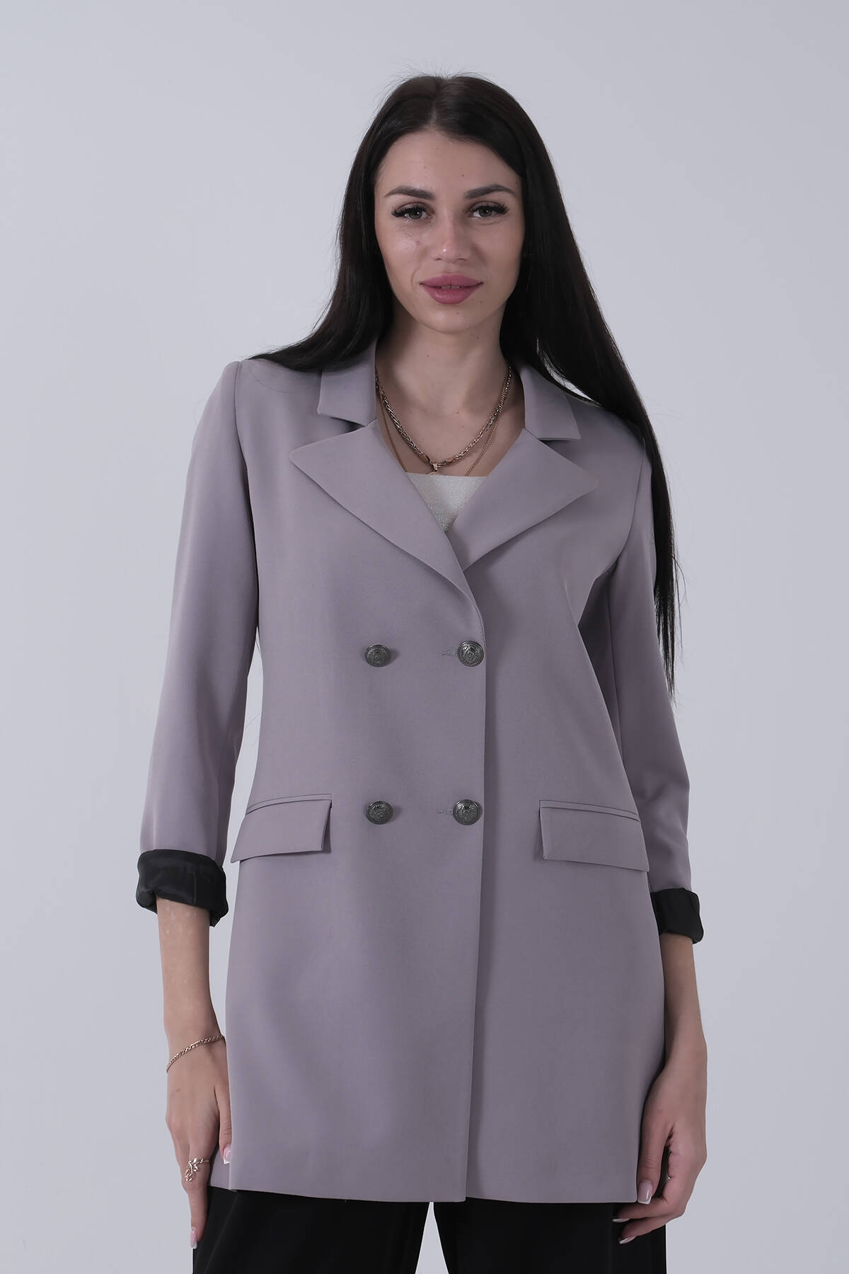 Gri Astarlı Düğme Kapamalı Blazer Ceket 0105123.06