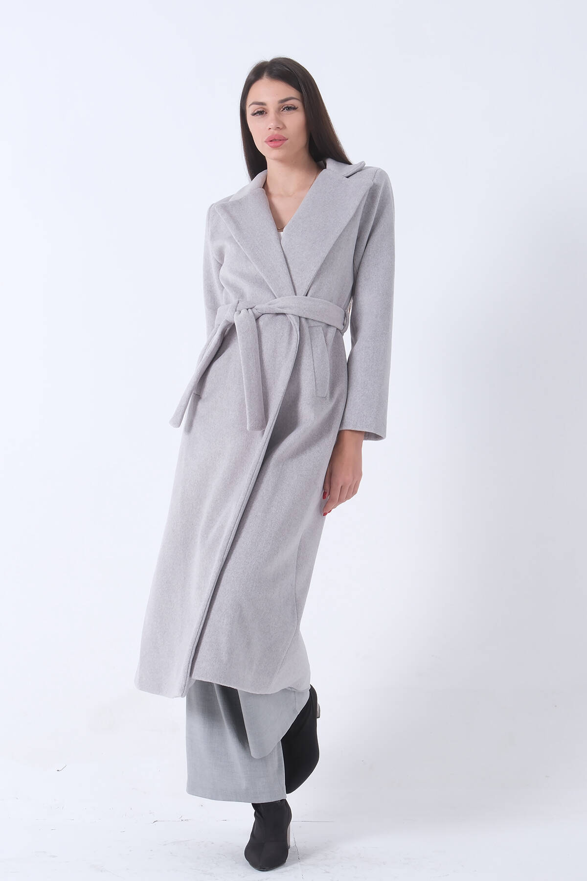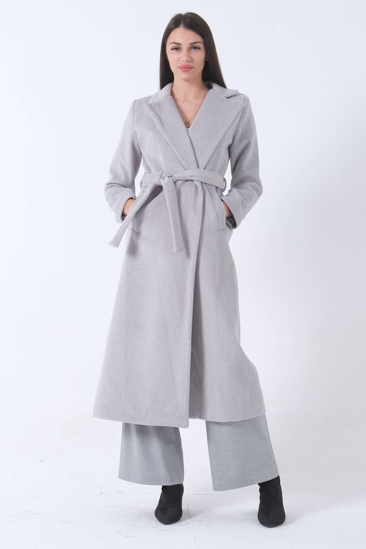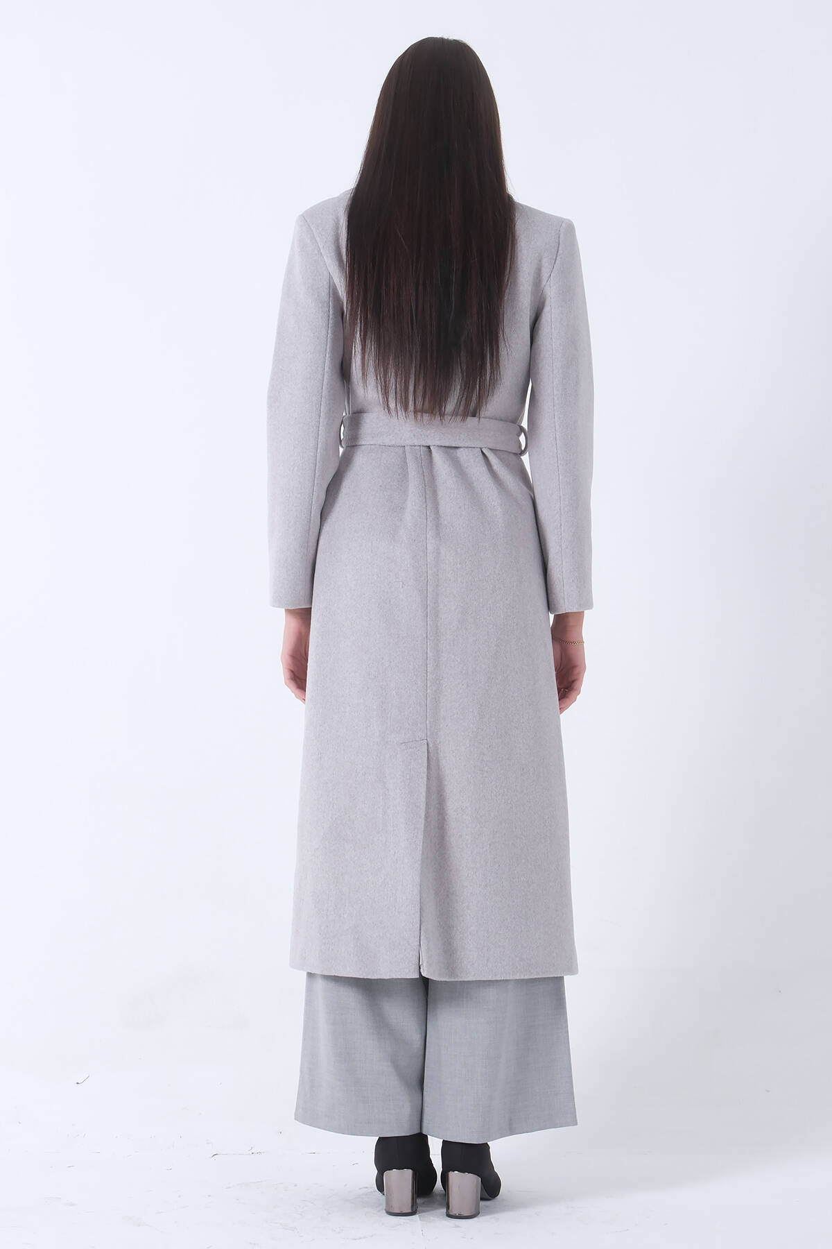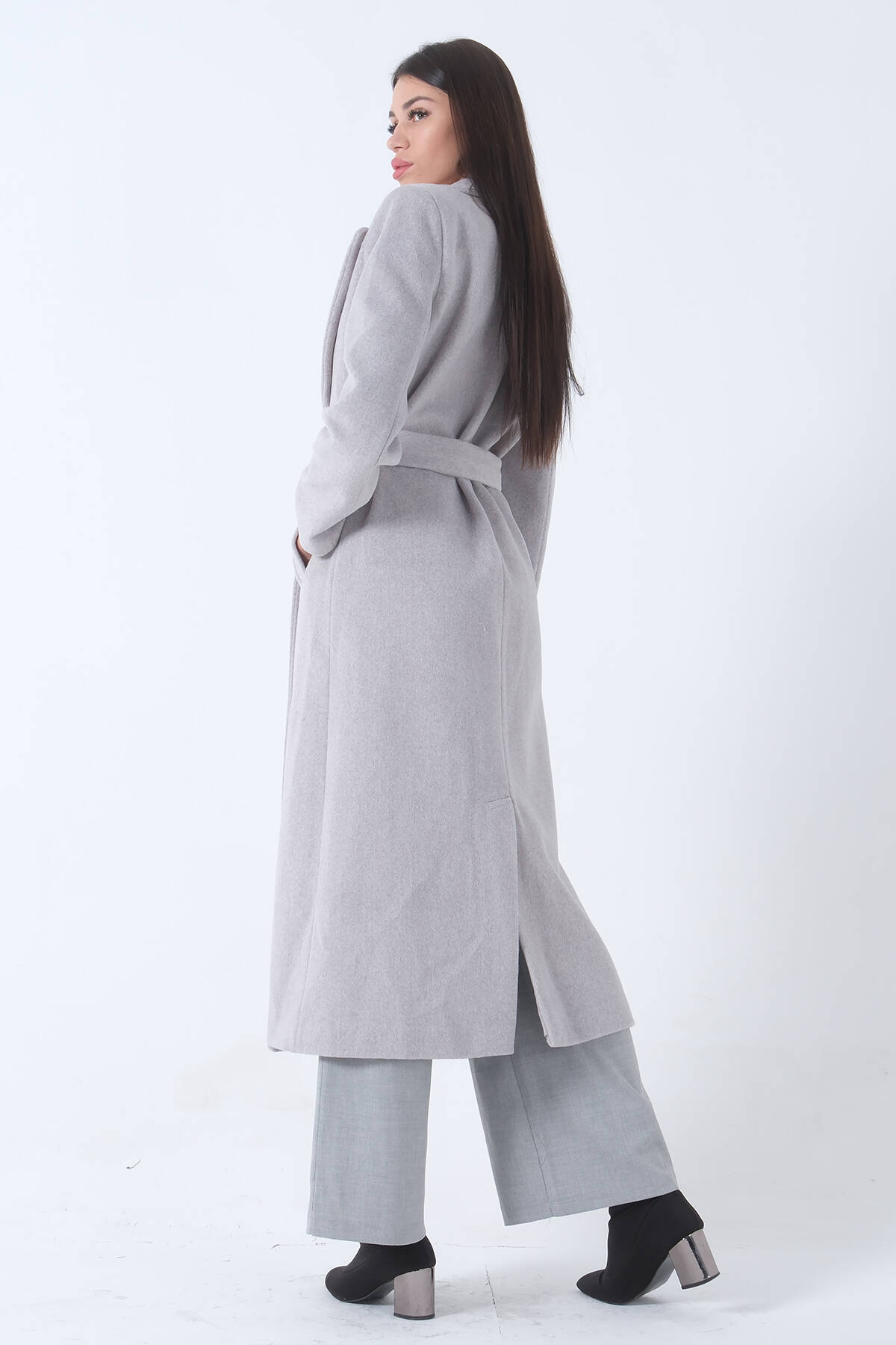 Gri Fleto Cepli Yırtmaçlı Astarlı Kaşe Kaban 31050661.06
