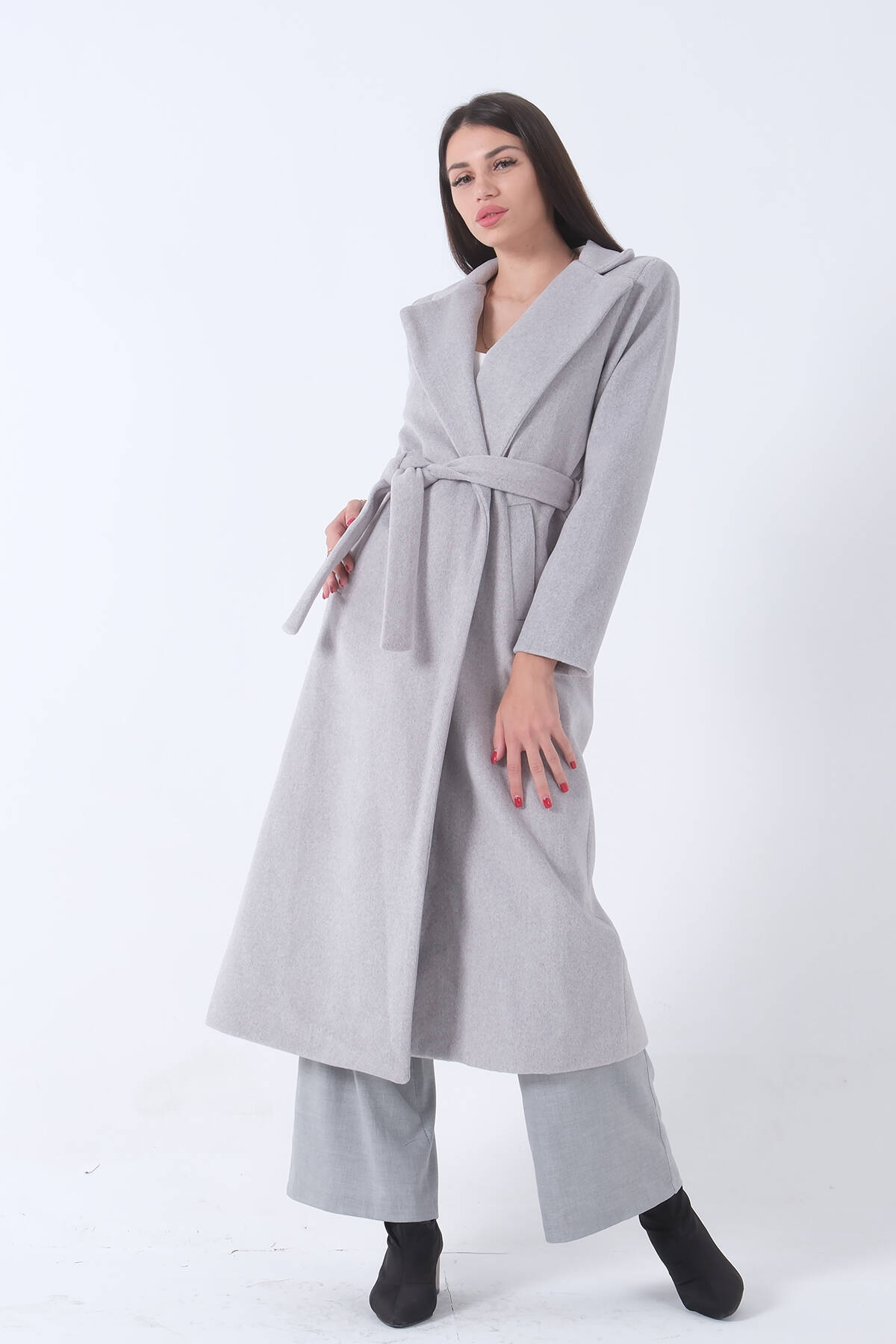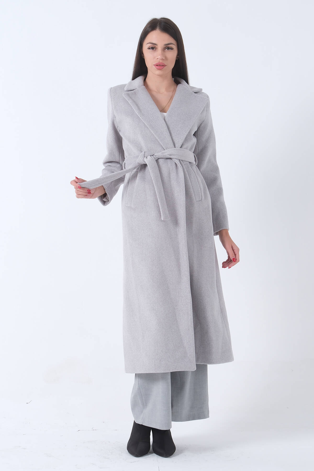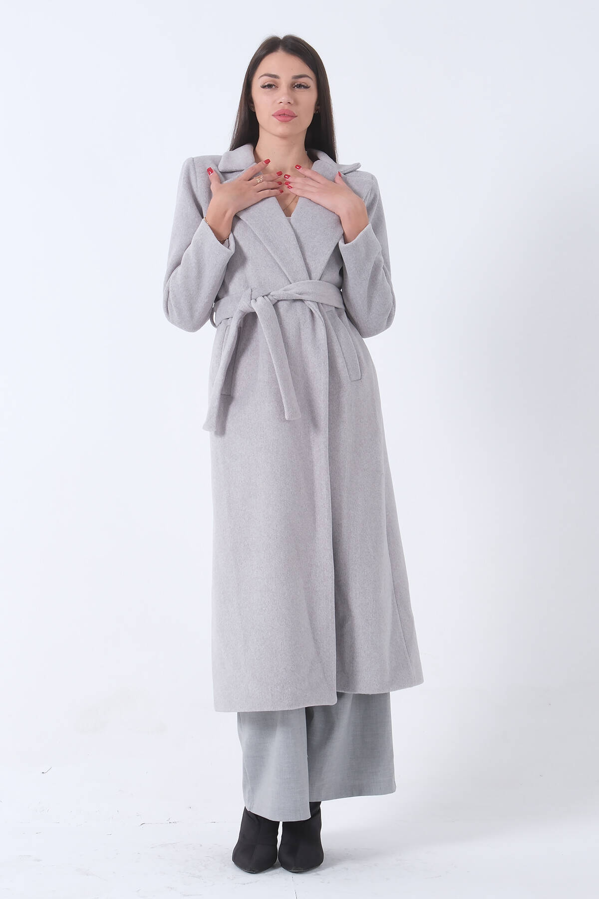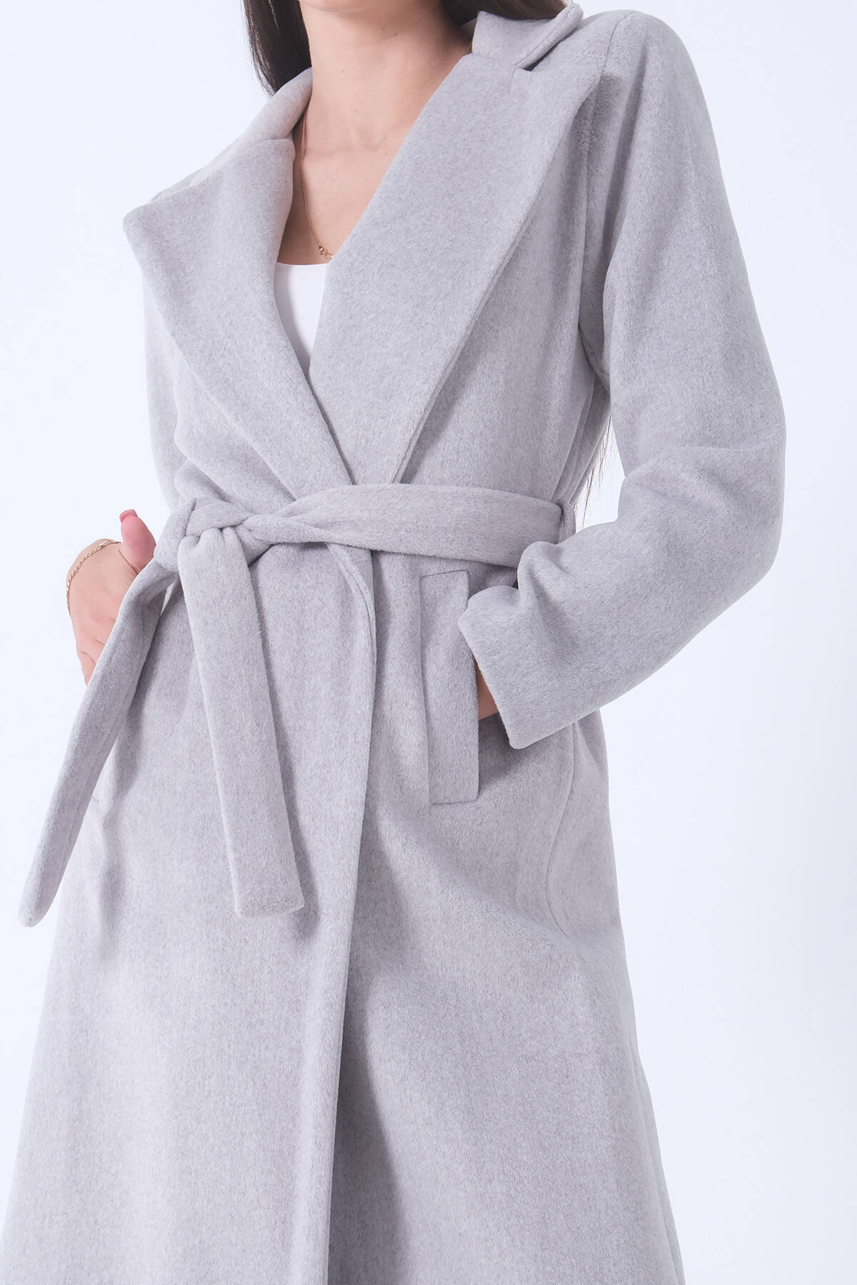 Gri Fleto Cepli Yırtmaçlı Astarlı Kaşe Kaban 31050661.06
