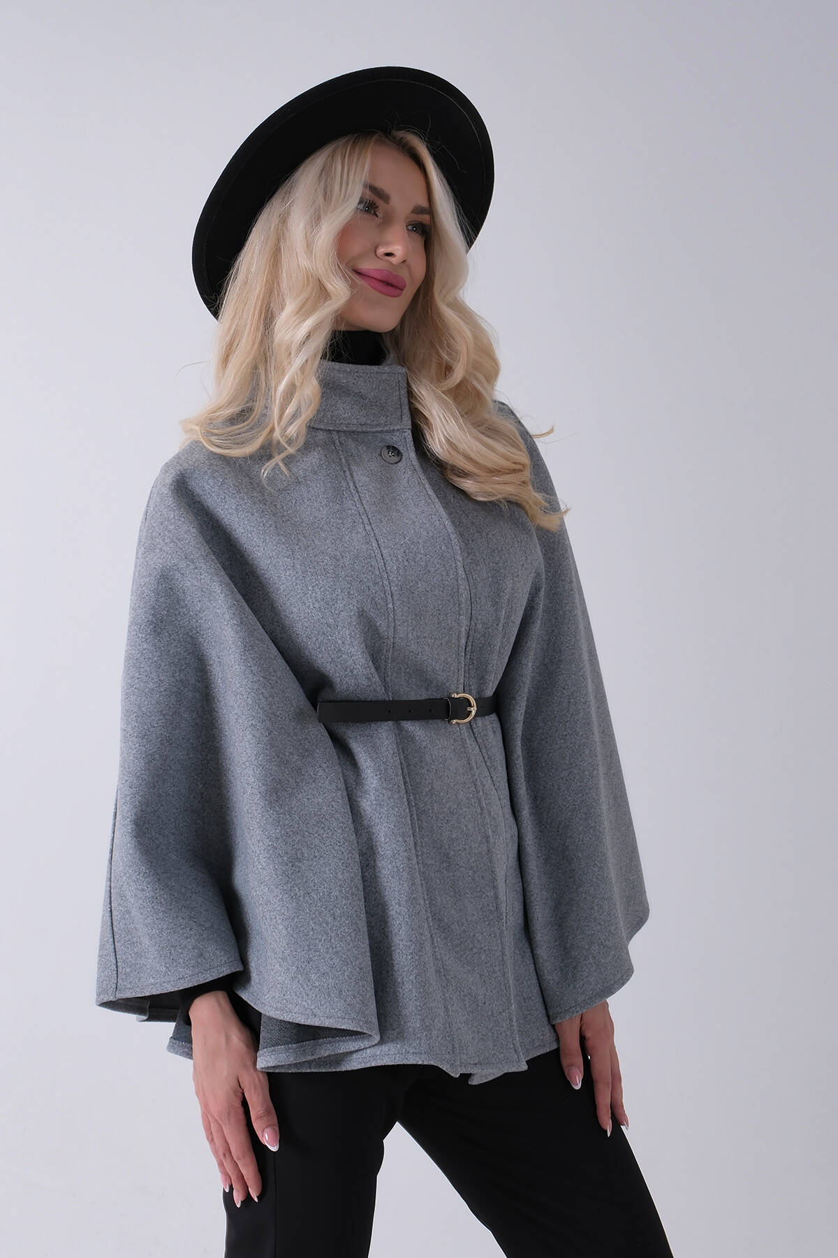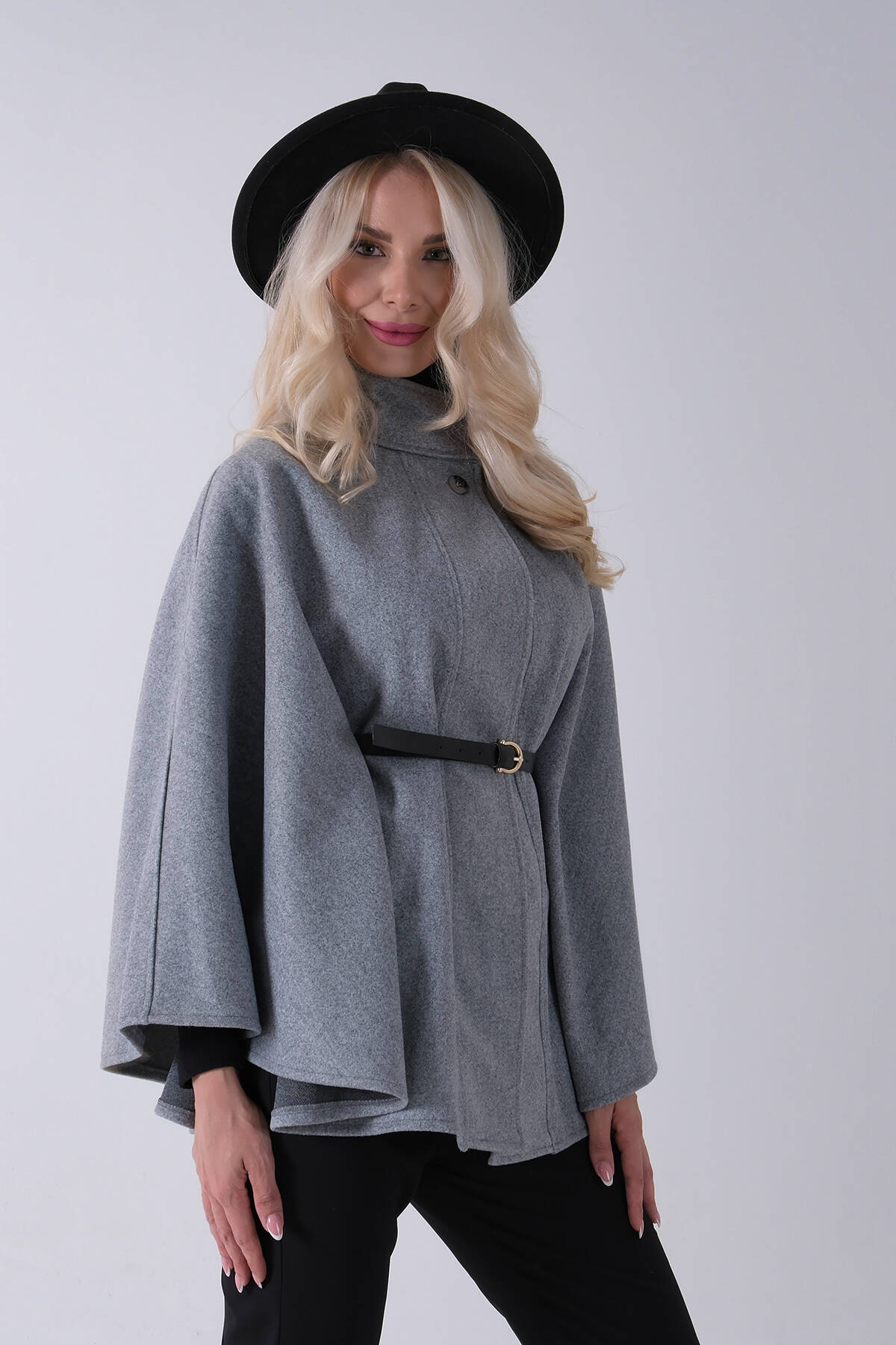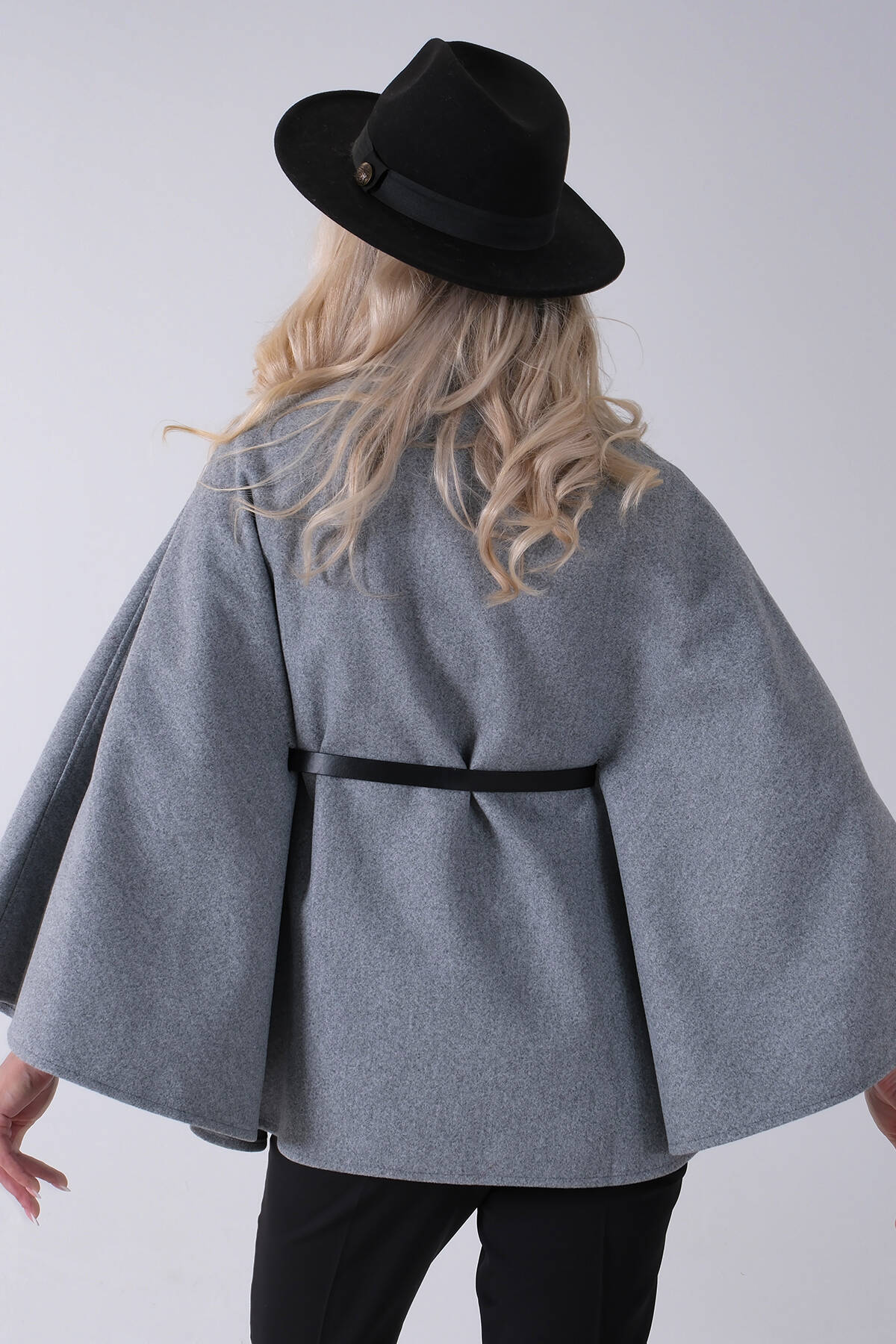 Gri Hakim Yaka Tek Düğmeli Kemerli Panço 31050725.06