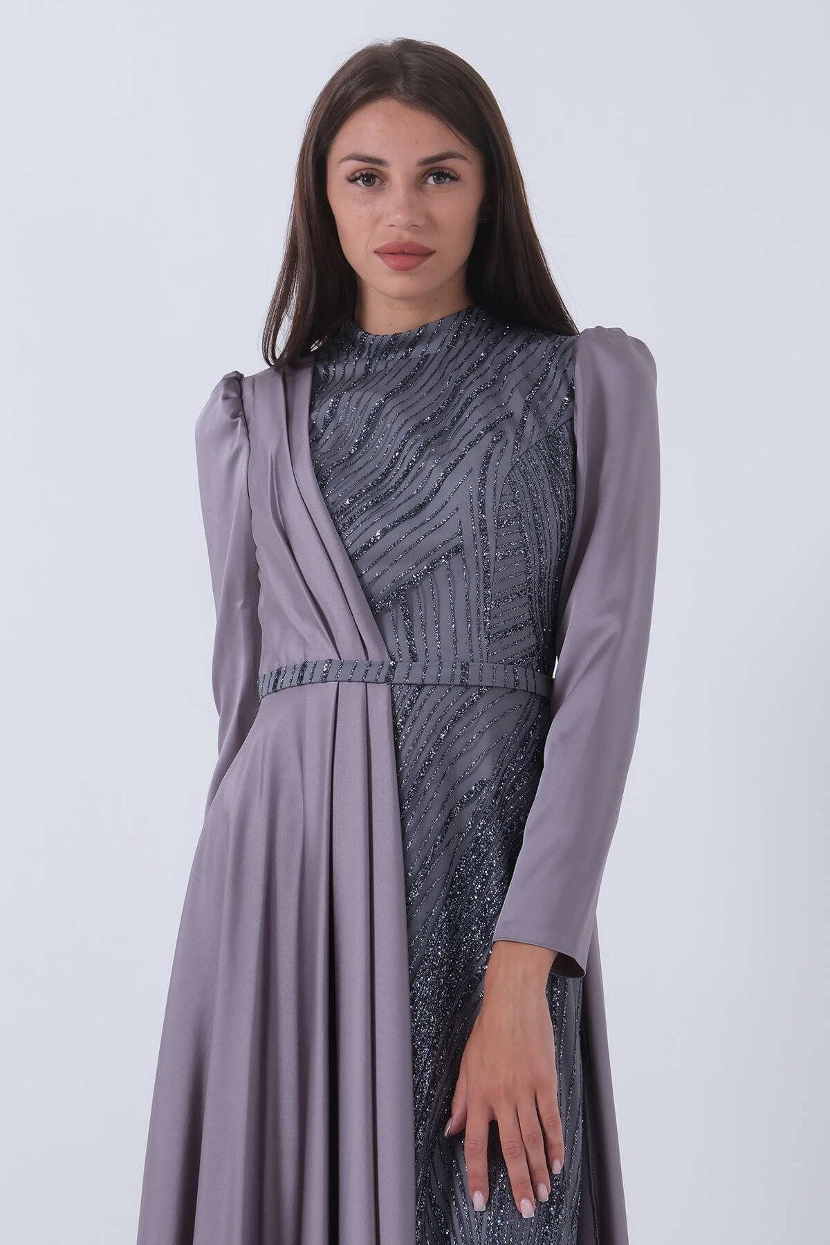 Modelin Ölçüleri : Boy: 1.80 cm / Göğüs: 88 cm / Bel: 69 cm /Basen : 94 cm Mankenin Üzerindeki Ürün 38/M Bedendir %100 Polyester Uzun Kollu Dik Yaka Balon Kol İç Kısmı Simli Sağ Göğüs Üsten Alt Kısmı Parça Kumaşlı Abiye Elbise Ürün Boyu : 158 cm Stüdyo Çekimlerinde Renkler Işık Farklılıgından Dolayı Değişiklik Gösterebilir (Dikkat! Ürünlerimiz güvenlik bandı ile gönderilmektedir . Güvenlik bandı olmayan ürünlerin iadesi kabul edilmeyecektir)