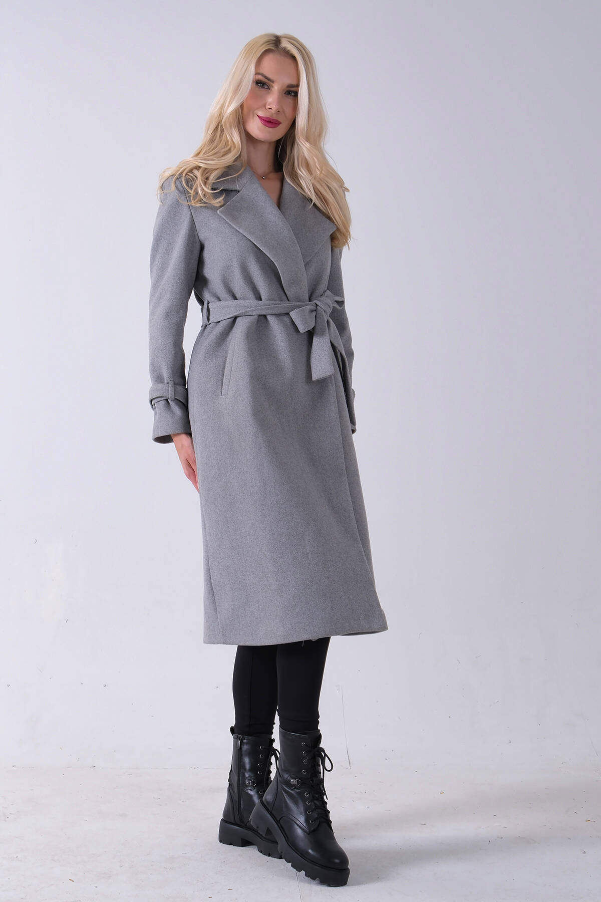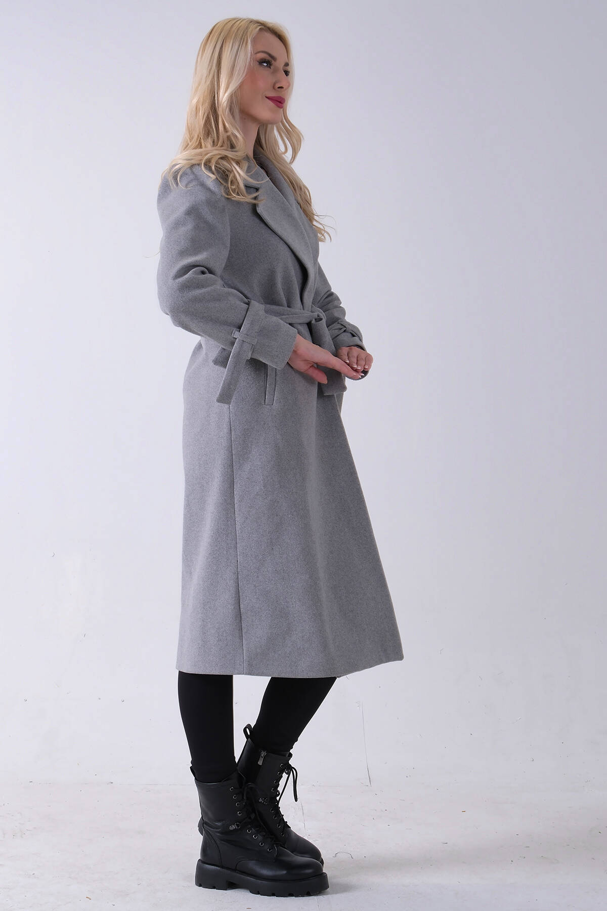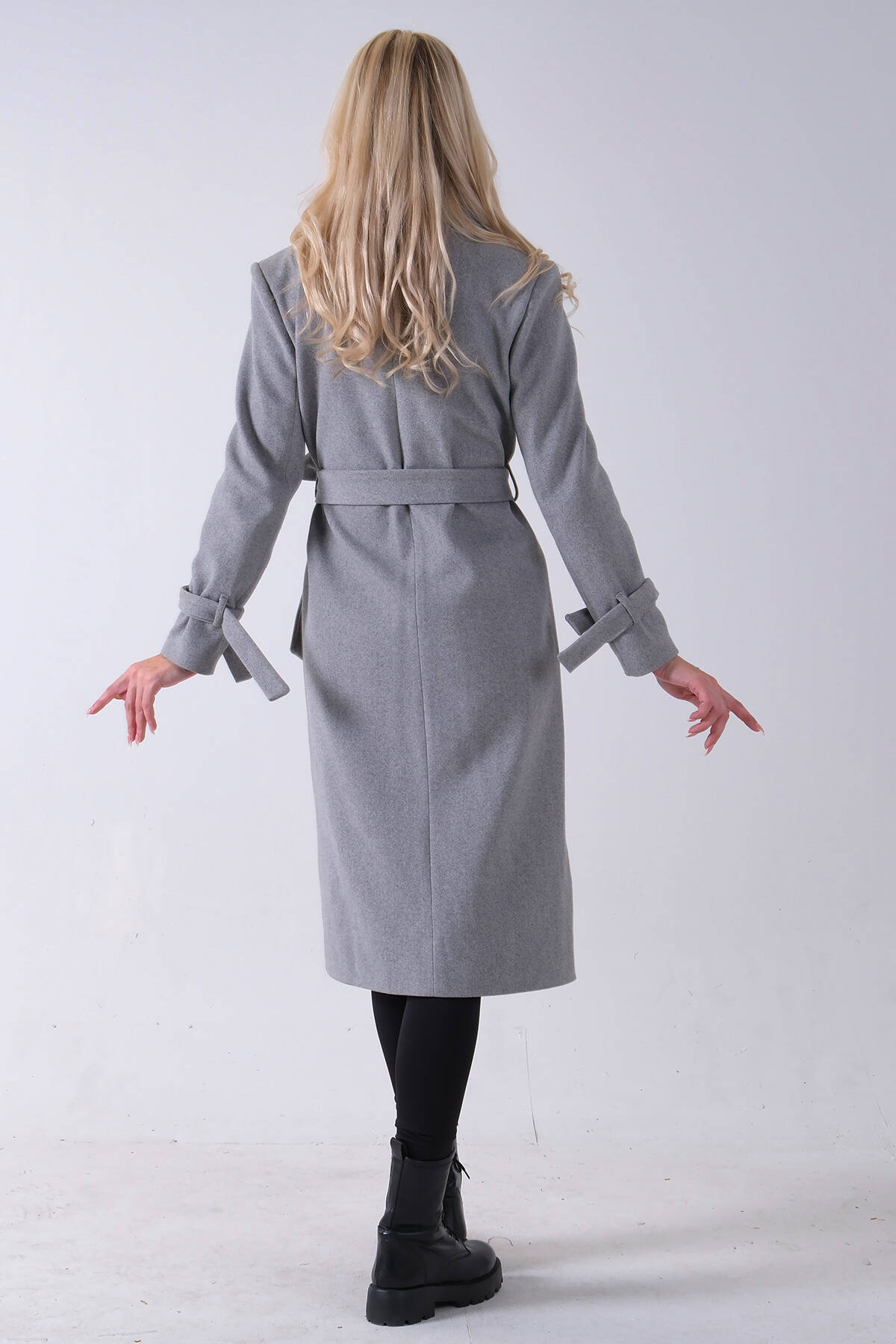 Gri Kol Bağlamalı Seyyar Kuşaklı Uzun Kaşe Kaban 41630051.06