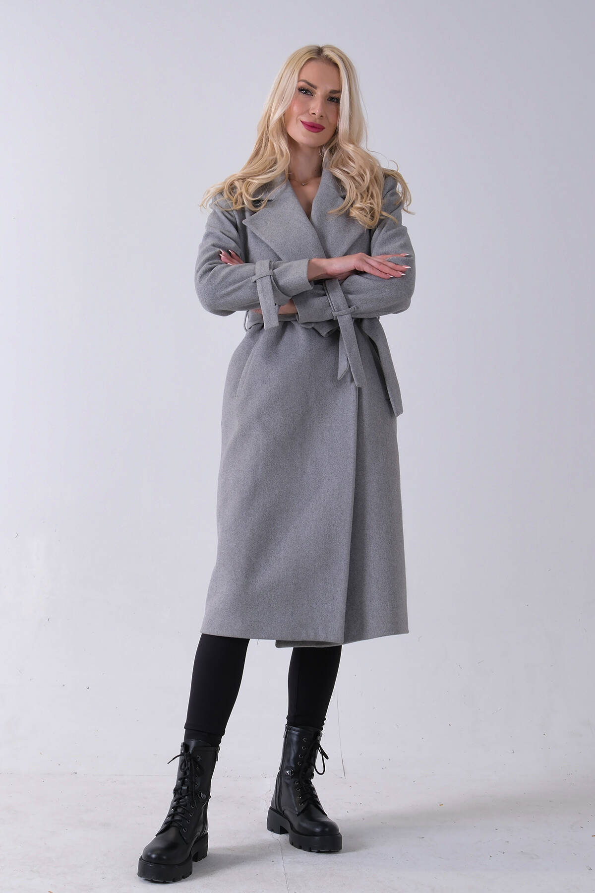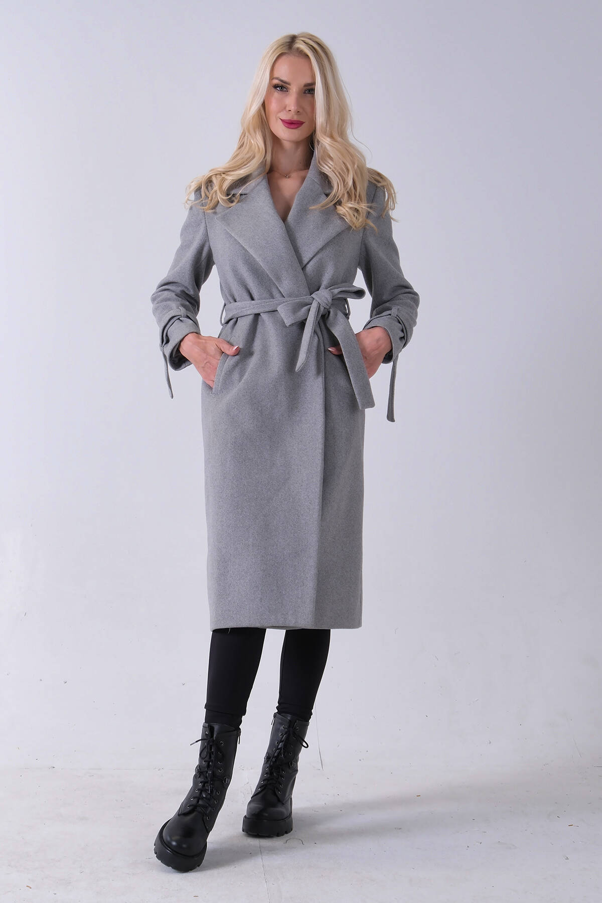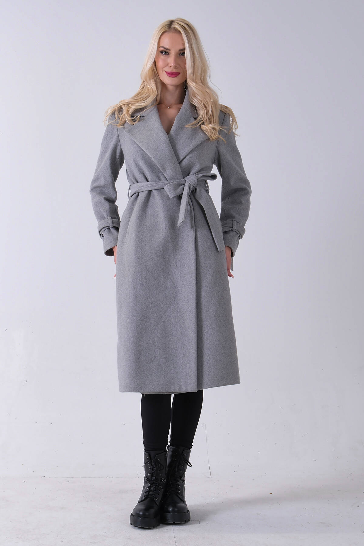 Gri Kol Bağlamalı Seyyar Kuşaklı Uzun Kaşe Kaban 41630051.06