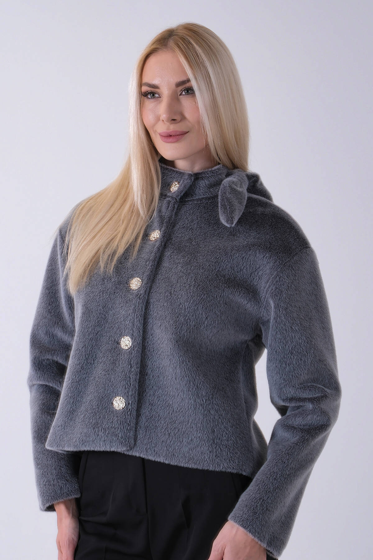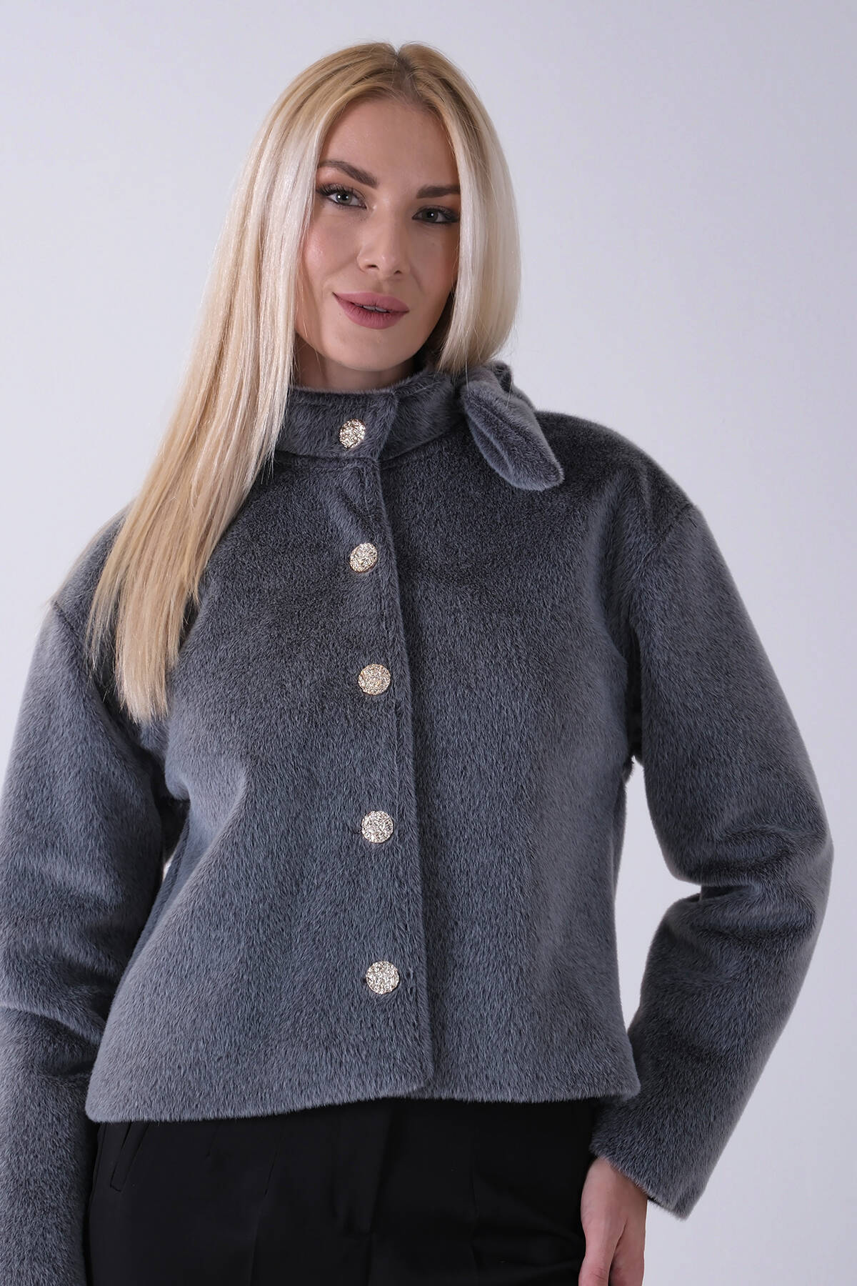 Gri Omuz Fiyonk Detaylı Düğme Kapamalı Kaşe Ceket 41630060.06