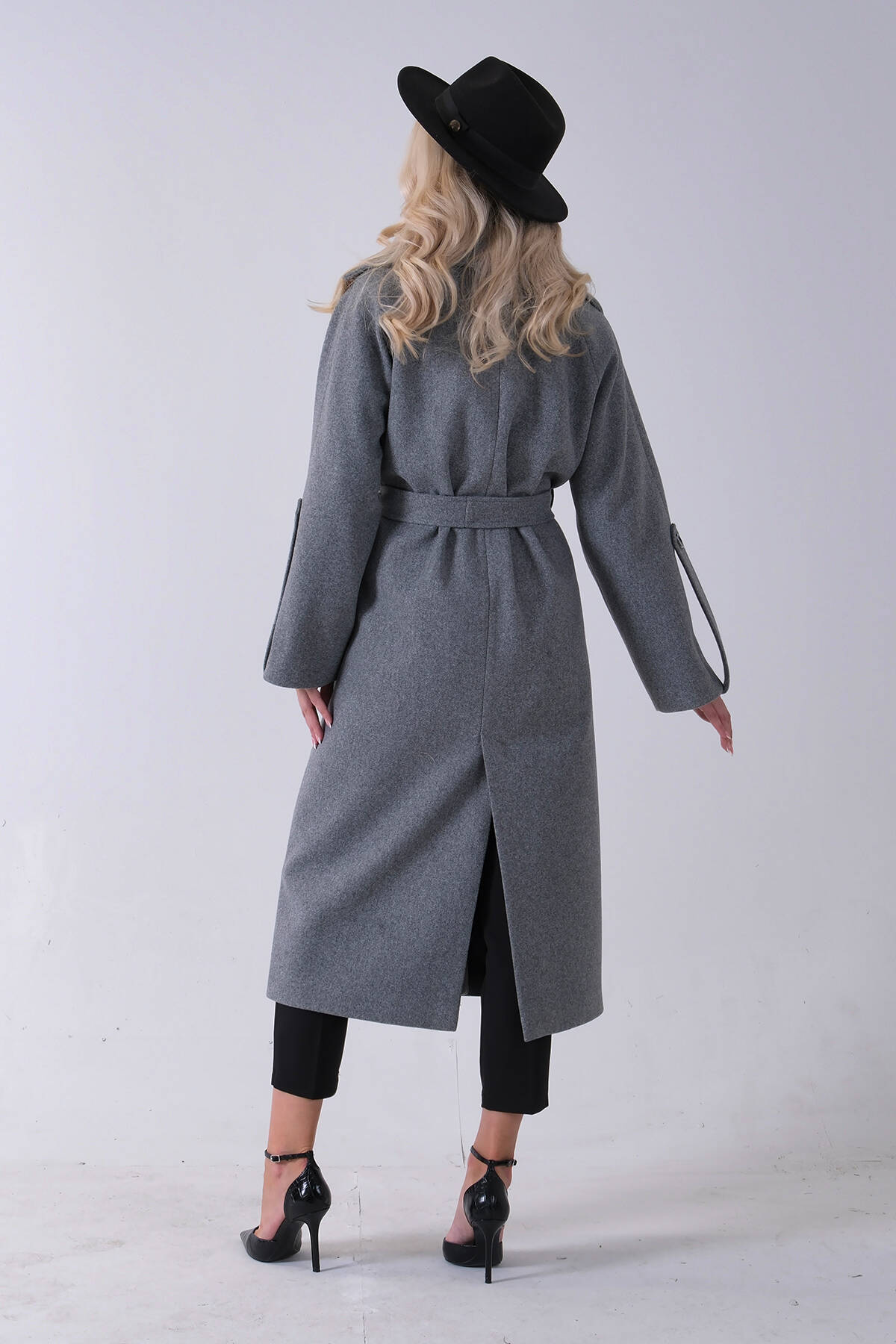 Gri Önden Düğmeli Oversize Örme Kaşe Kaban 0108081.06