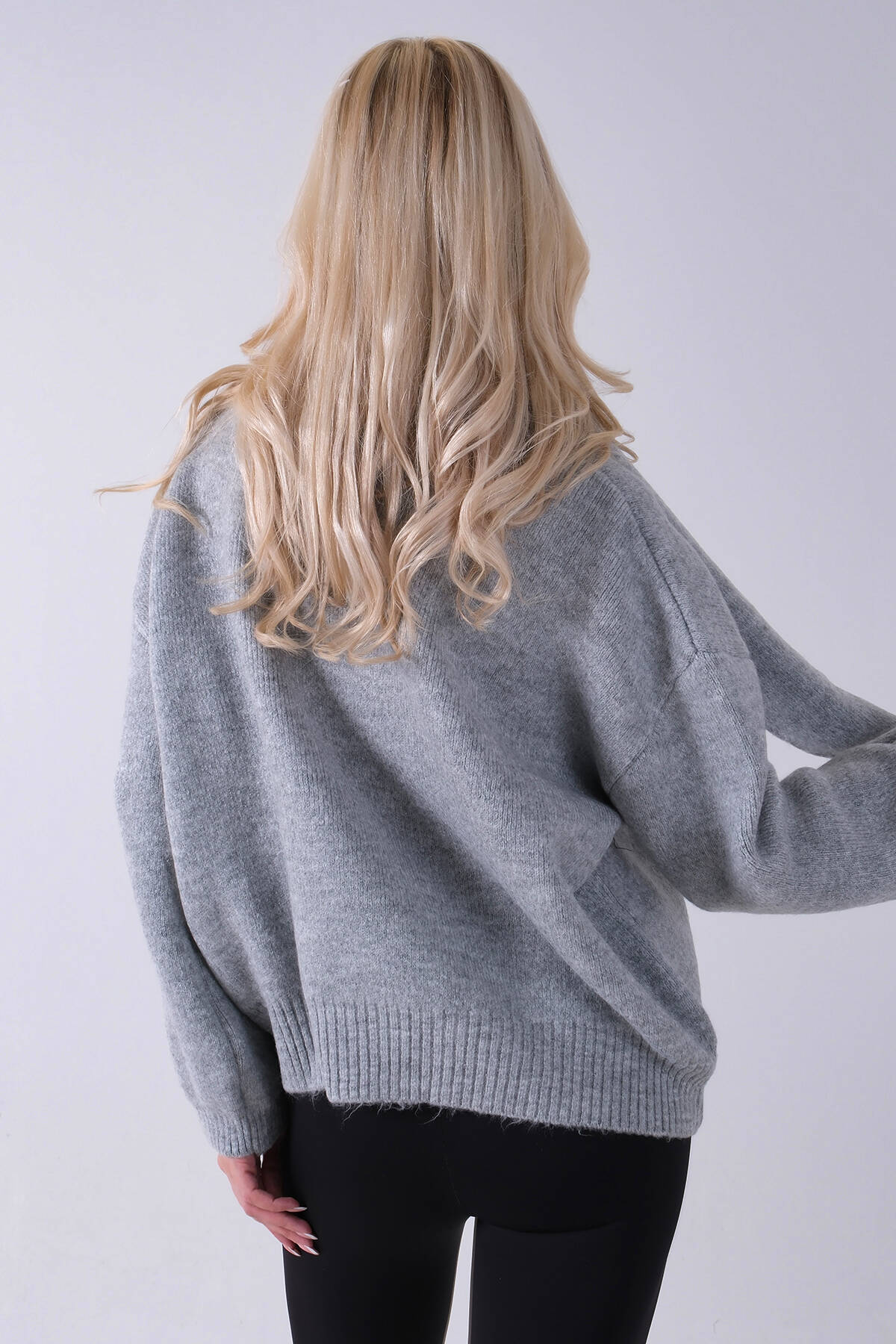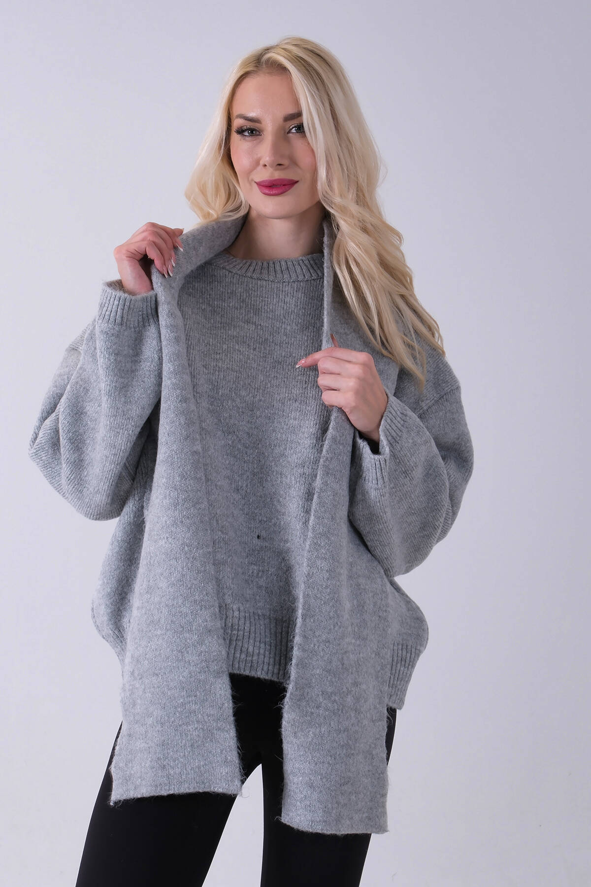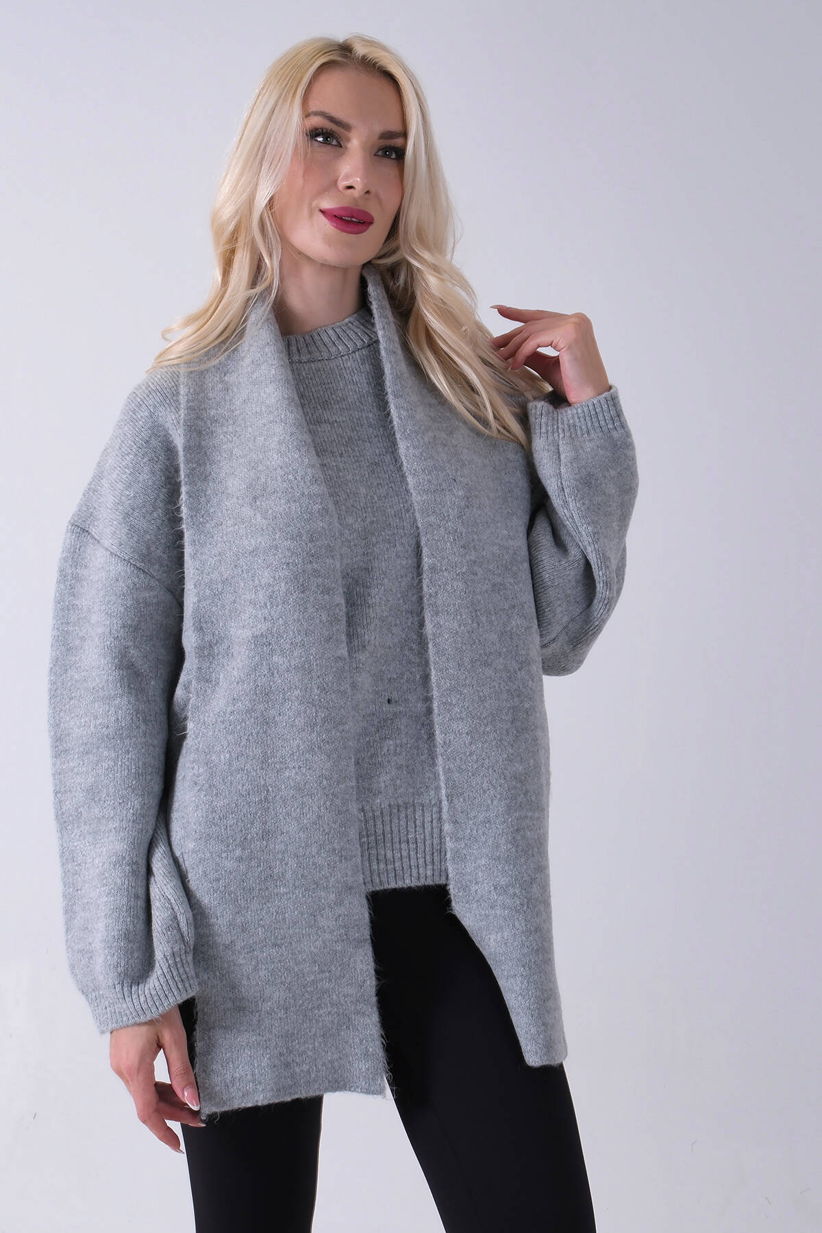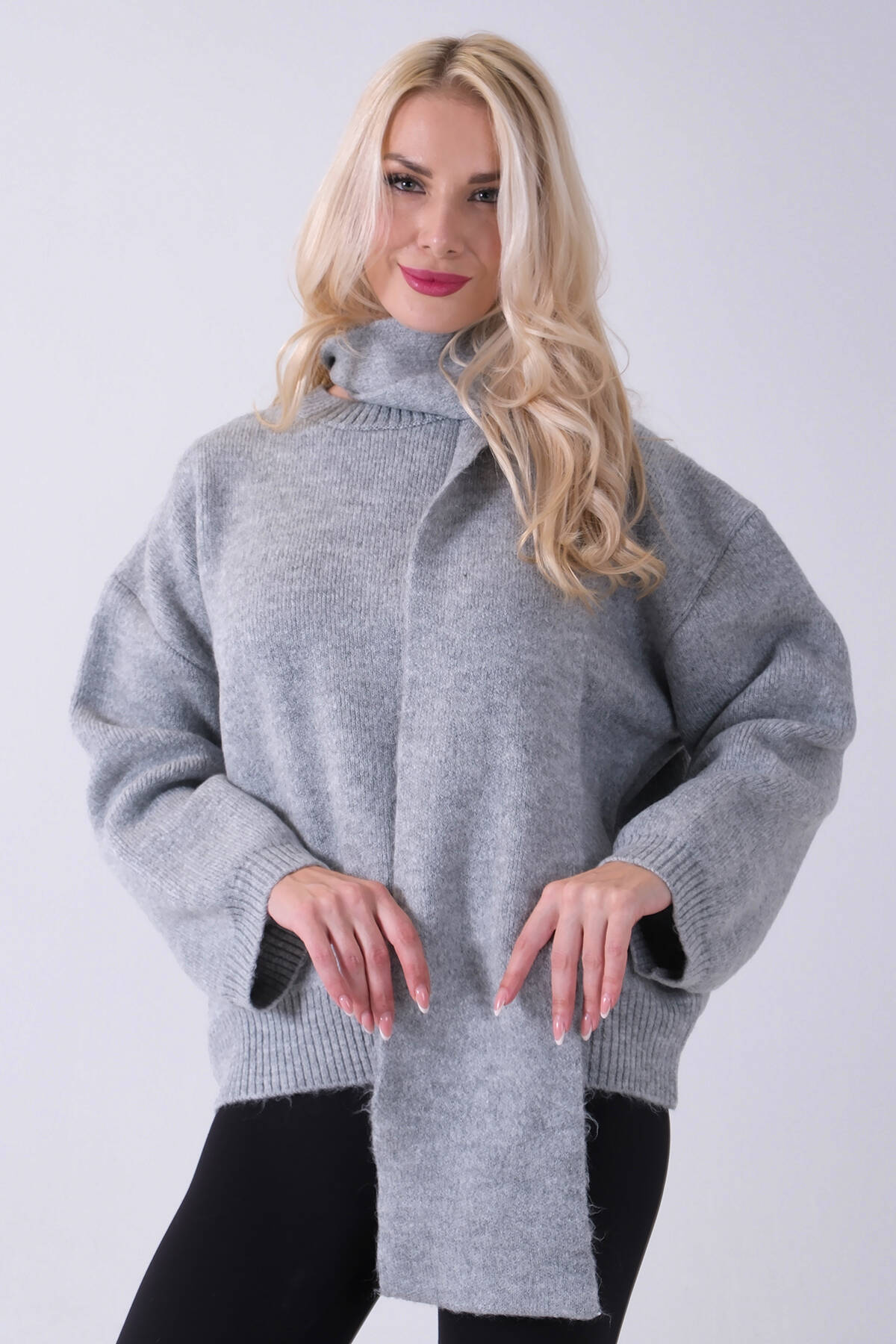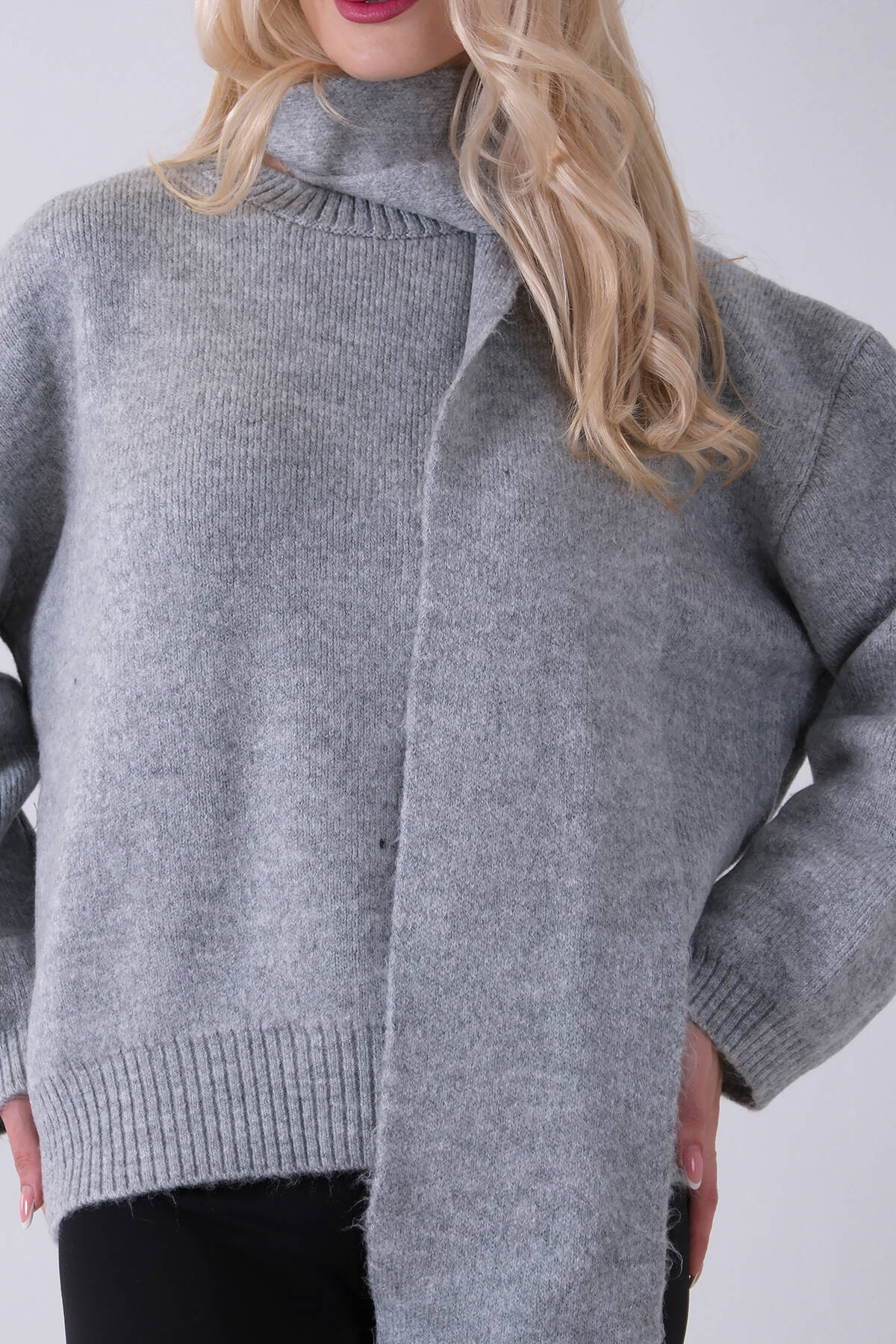 Gri Şal Aksesuarlı Bisiklet Yaka Triko Kazak 46892633.06