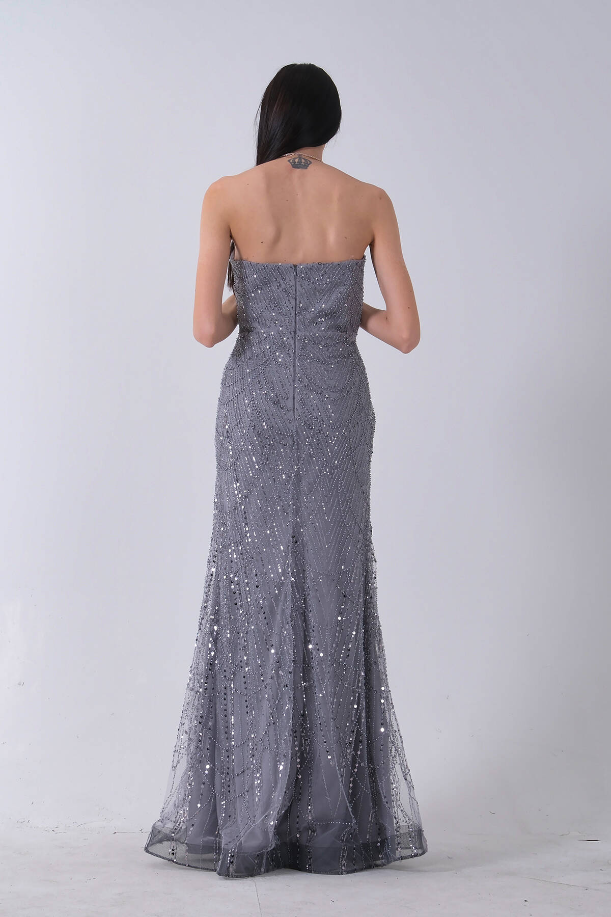 Gri Taş İşlemeli Uzun Balık Abiye 0801056.06