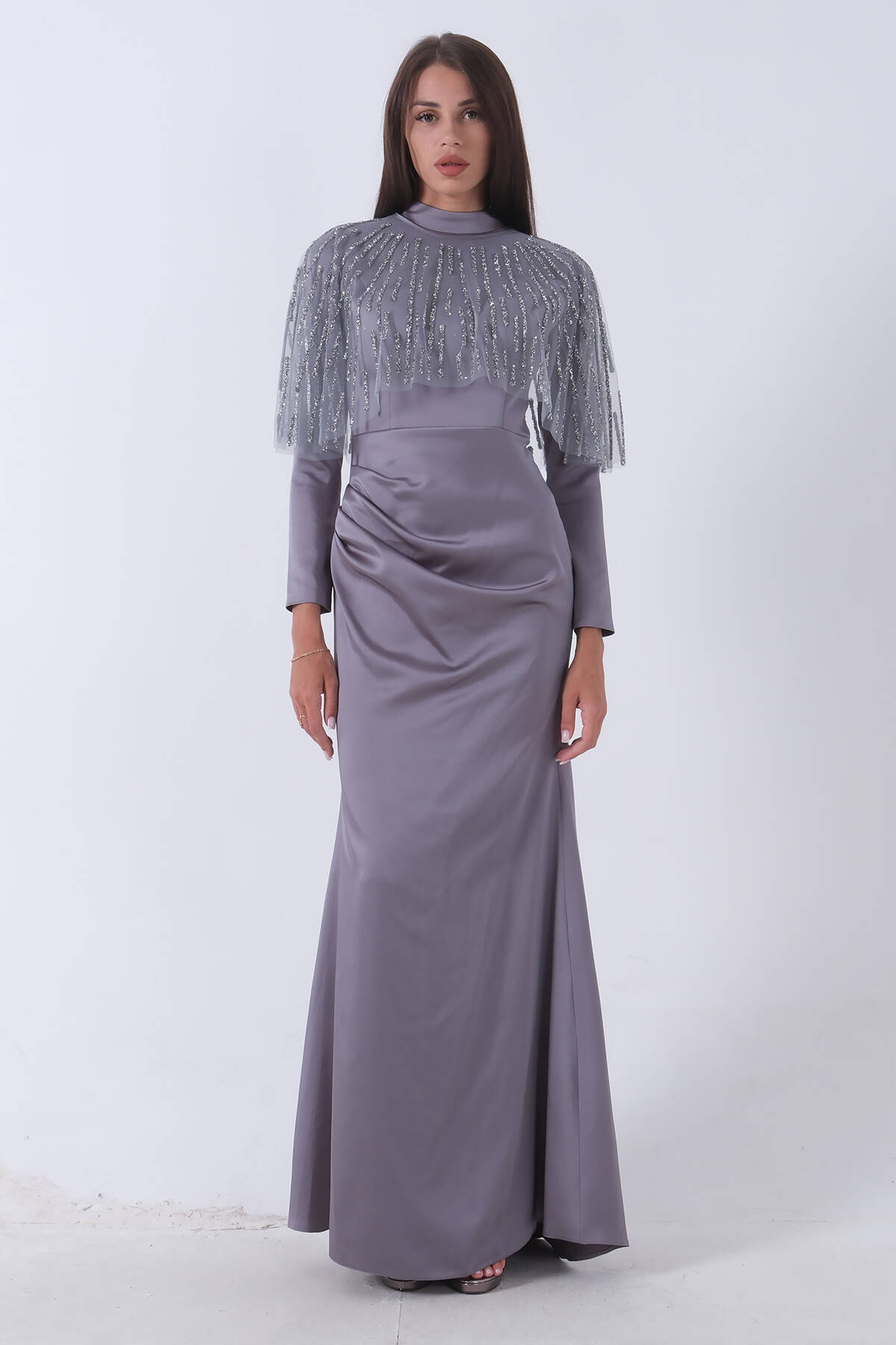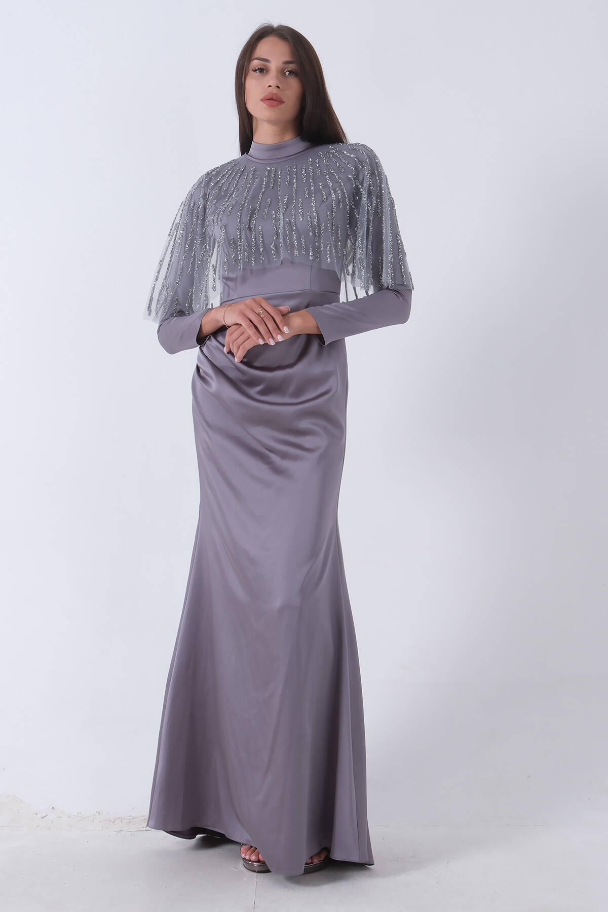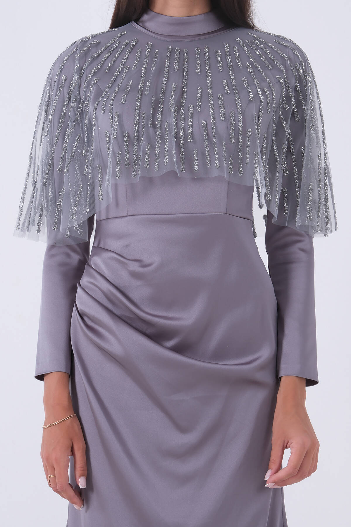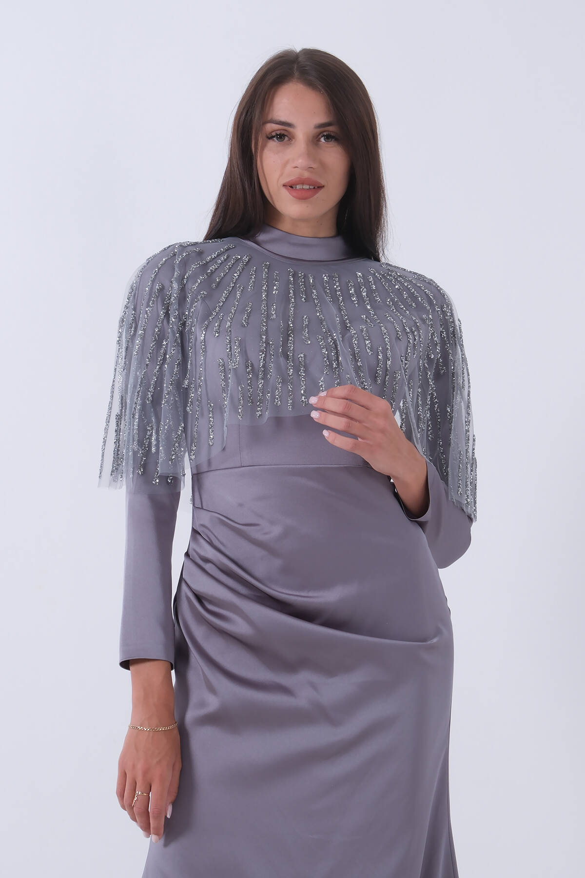 Gri Yaka Seyyar Şal Ayrobin Eklemeli Tesettür Abiye 6502477.06