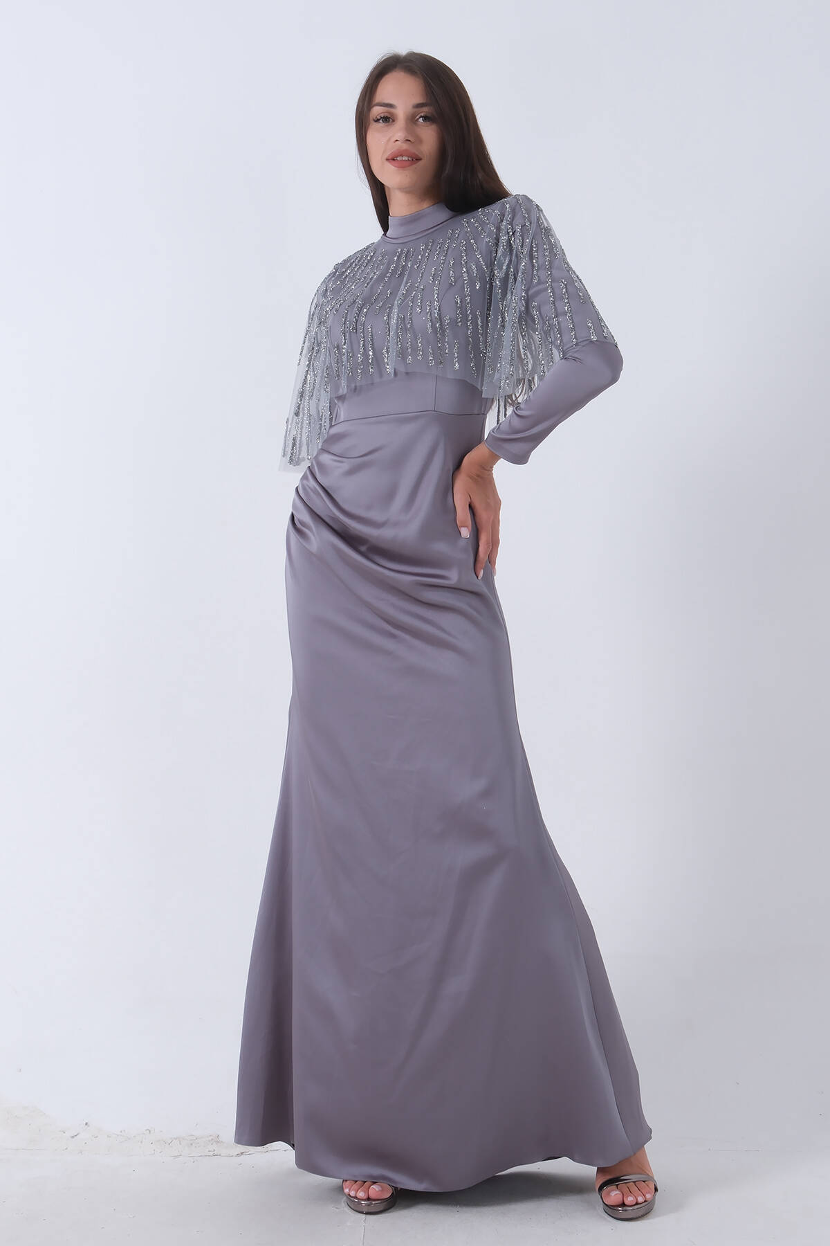 Gold Drapeli Payet Üst Detaylı Eteği Saten Tesettür Abiye 6502504.122