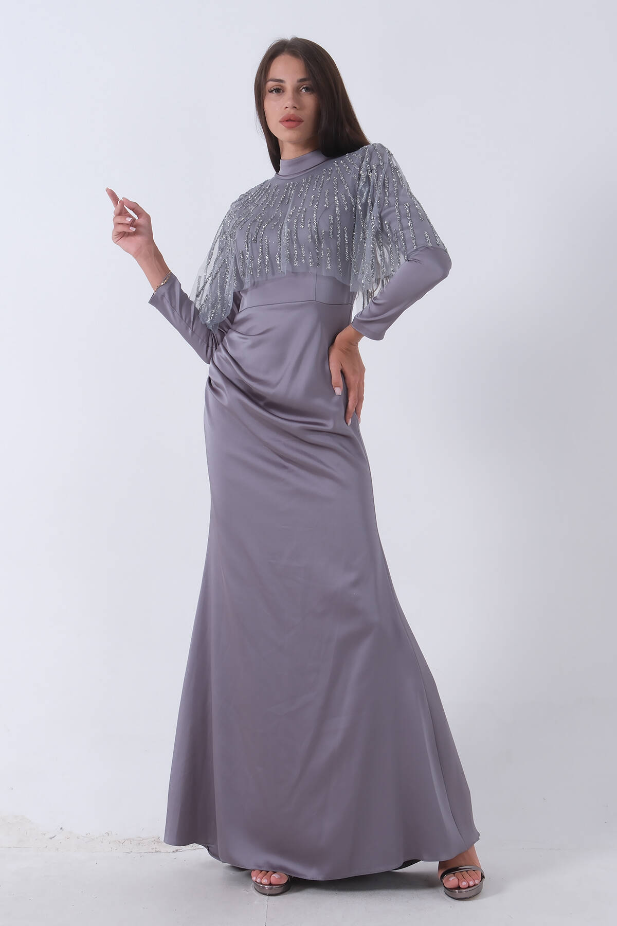 Lavanta Üzeri Pul Boncuk İşlemeli Tesettür Abiye 6502450.333