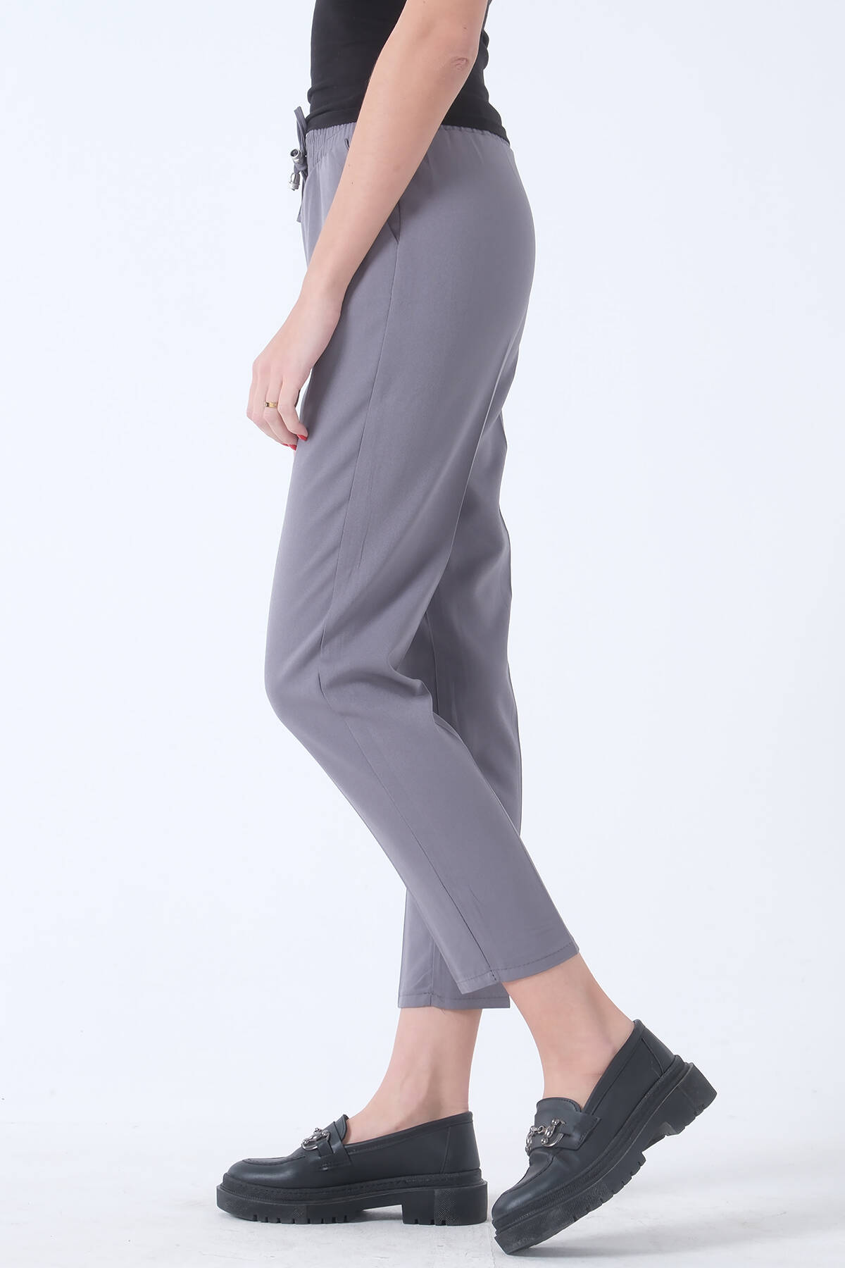 Modelin Ölçüleri : Boy: 1.80 cm / Göğüs: 88 cm / Bel: 69 cm /Basen : 94 cm Mankenin Üzerindeki Ürün 38/M Bedendir %100 Polyester Yüksek Bel Çift Cepli Beli Lastikli Pantolon Ürün Boyu : 92 cm Stüdyo Çekimlerinde Renkler Işık Farklılıgından Dolayı Değişiklik Gösterebilir