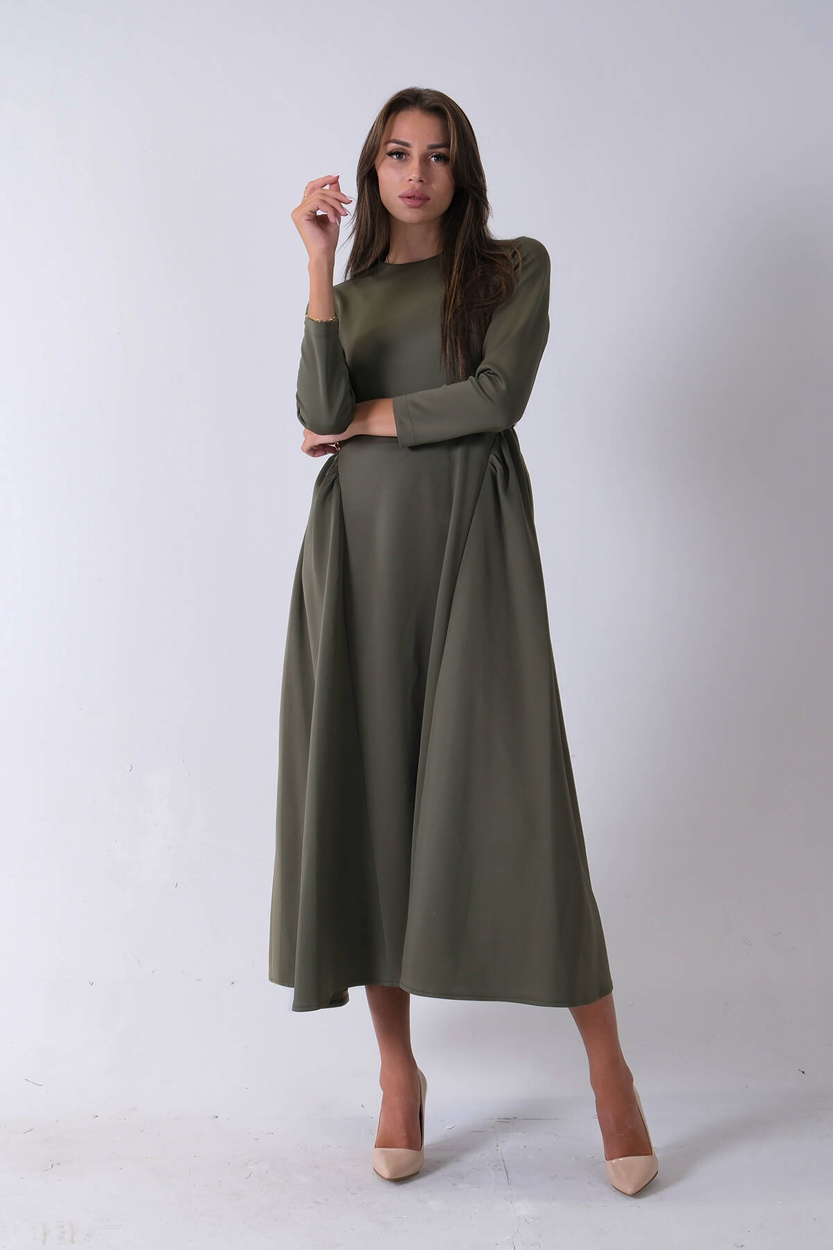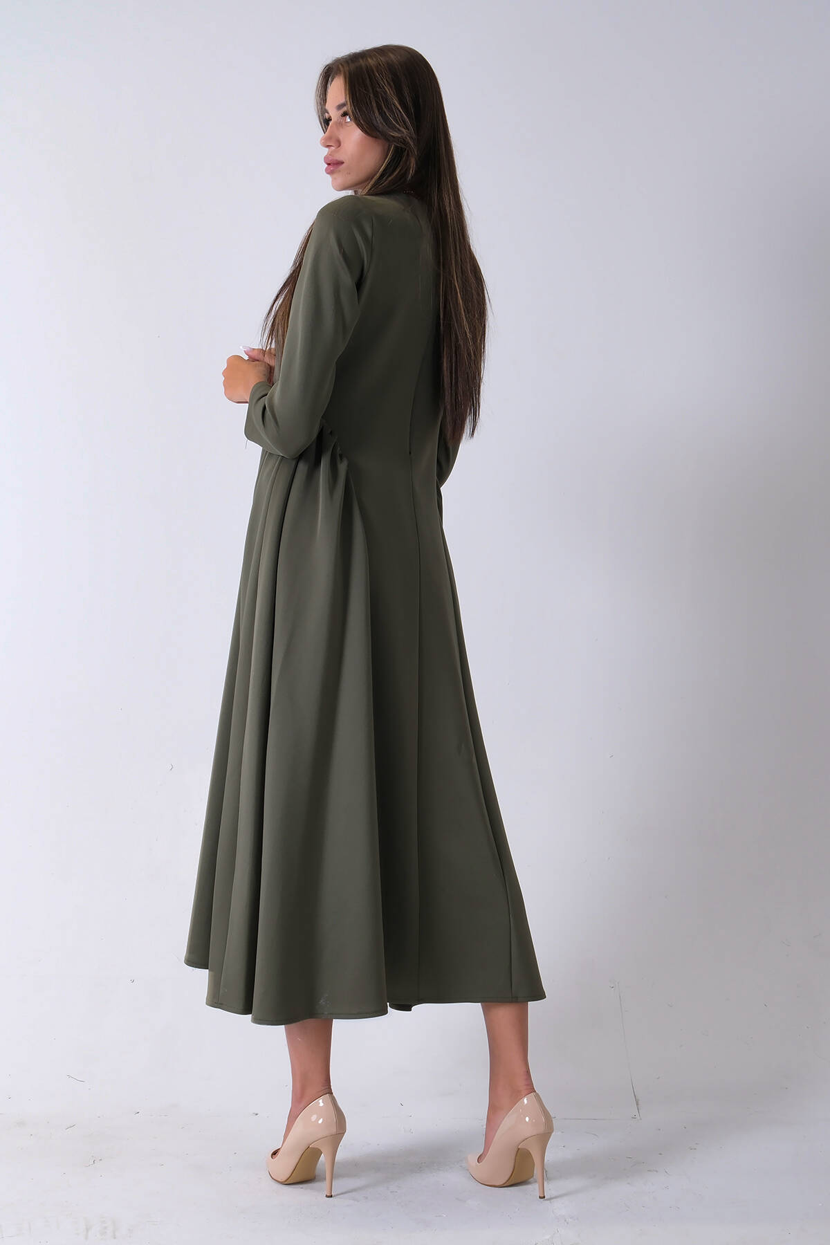 Haki Bisiklet Yaka Scuba Tesettür Elbise 4593445.23