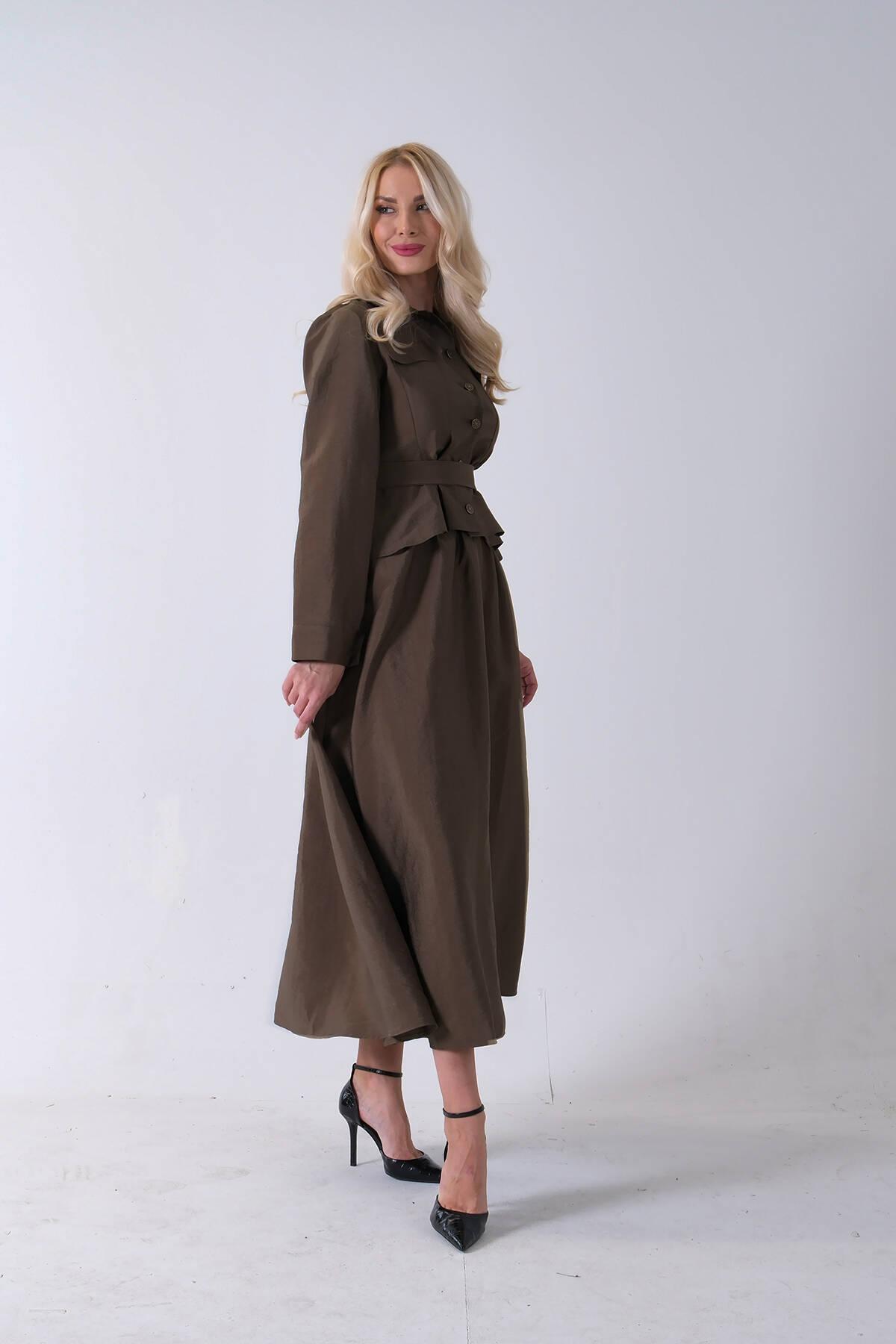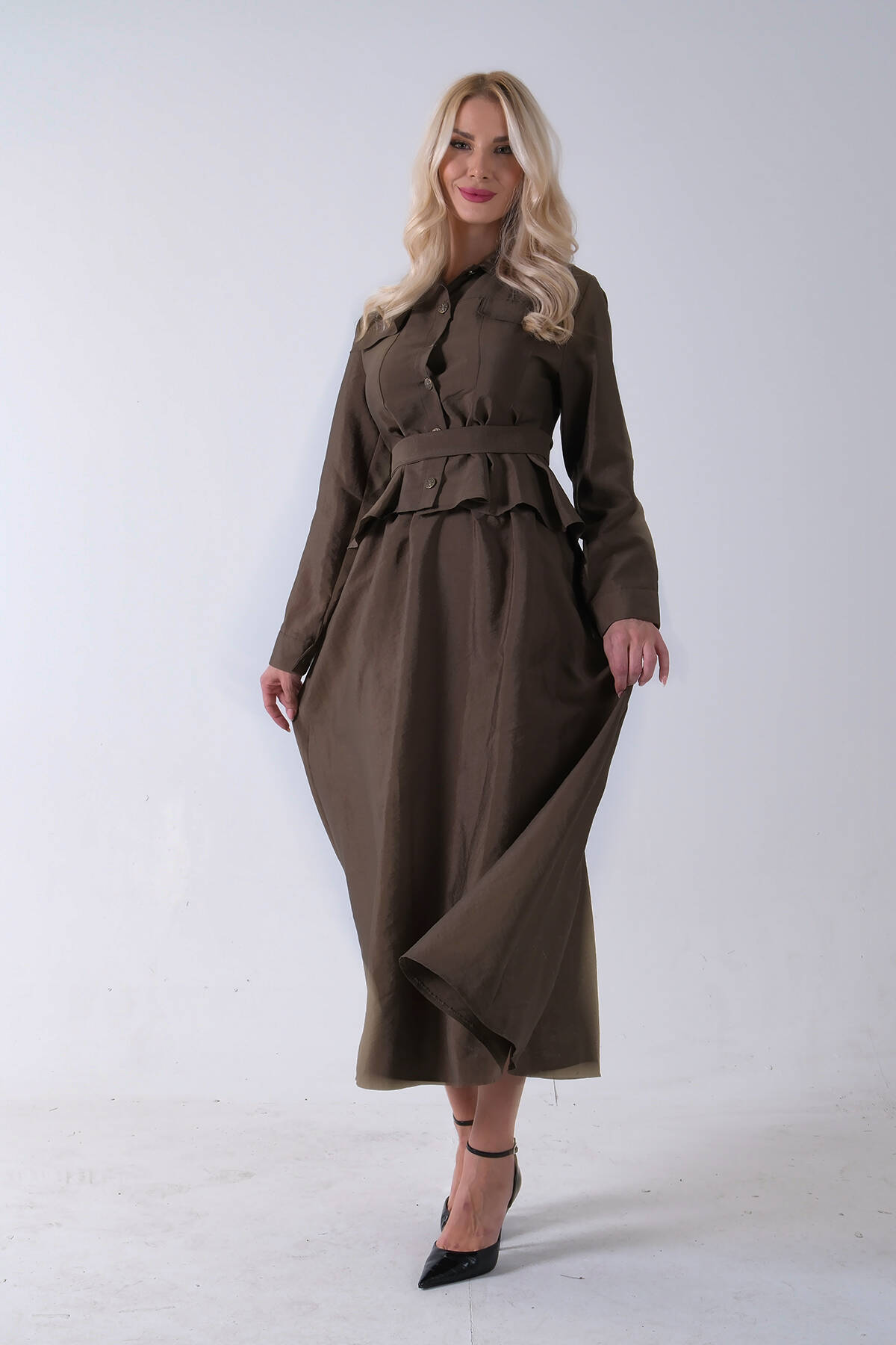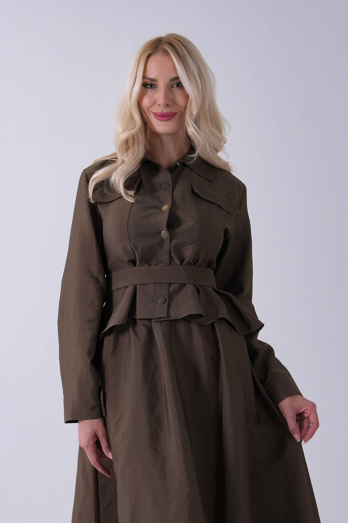 Haki Ceket Cep Görünüm Detaylı Düğme Kapamalı Etekli Takım 5303168.23