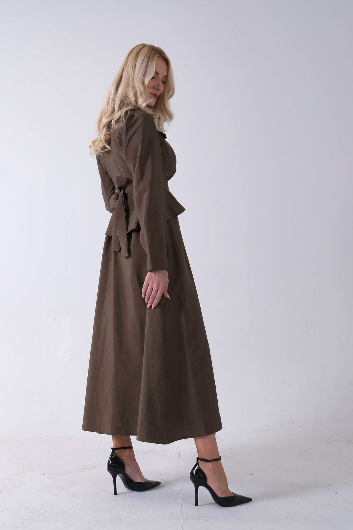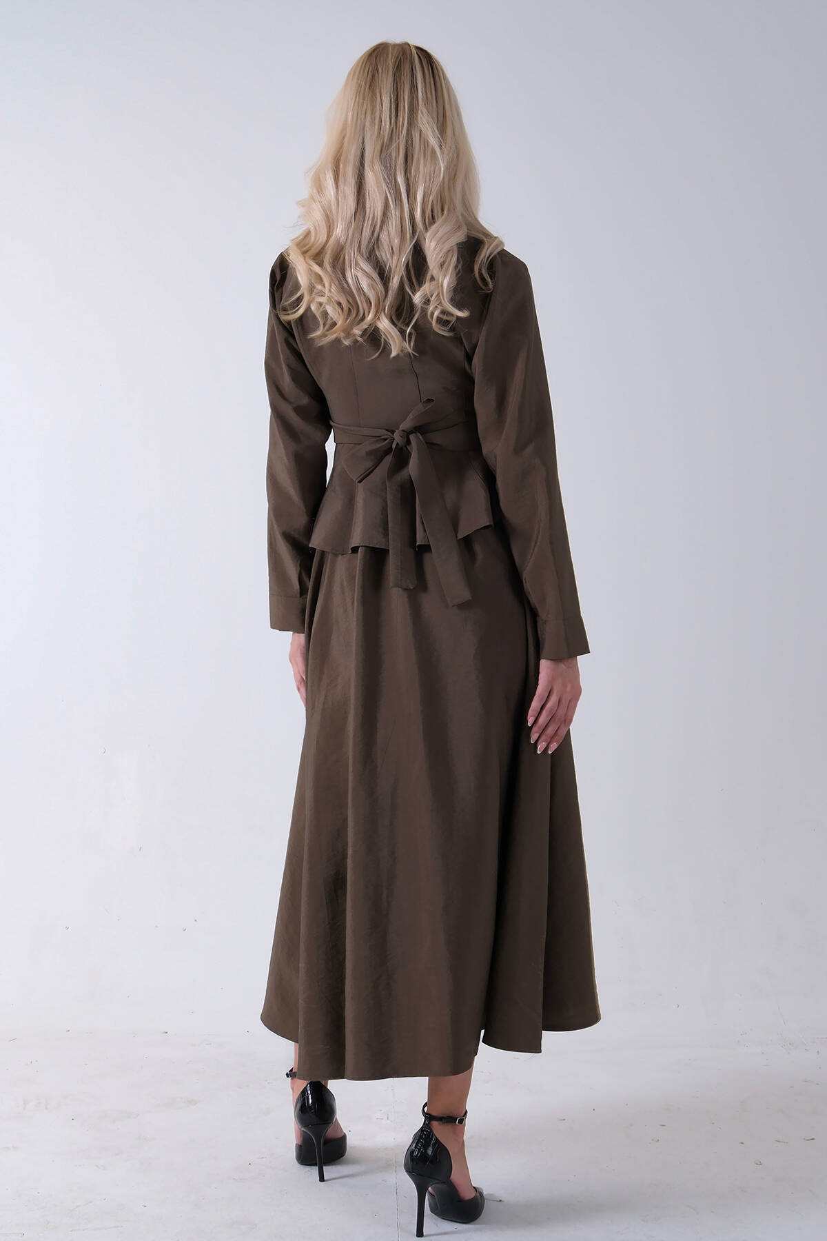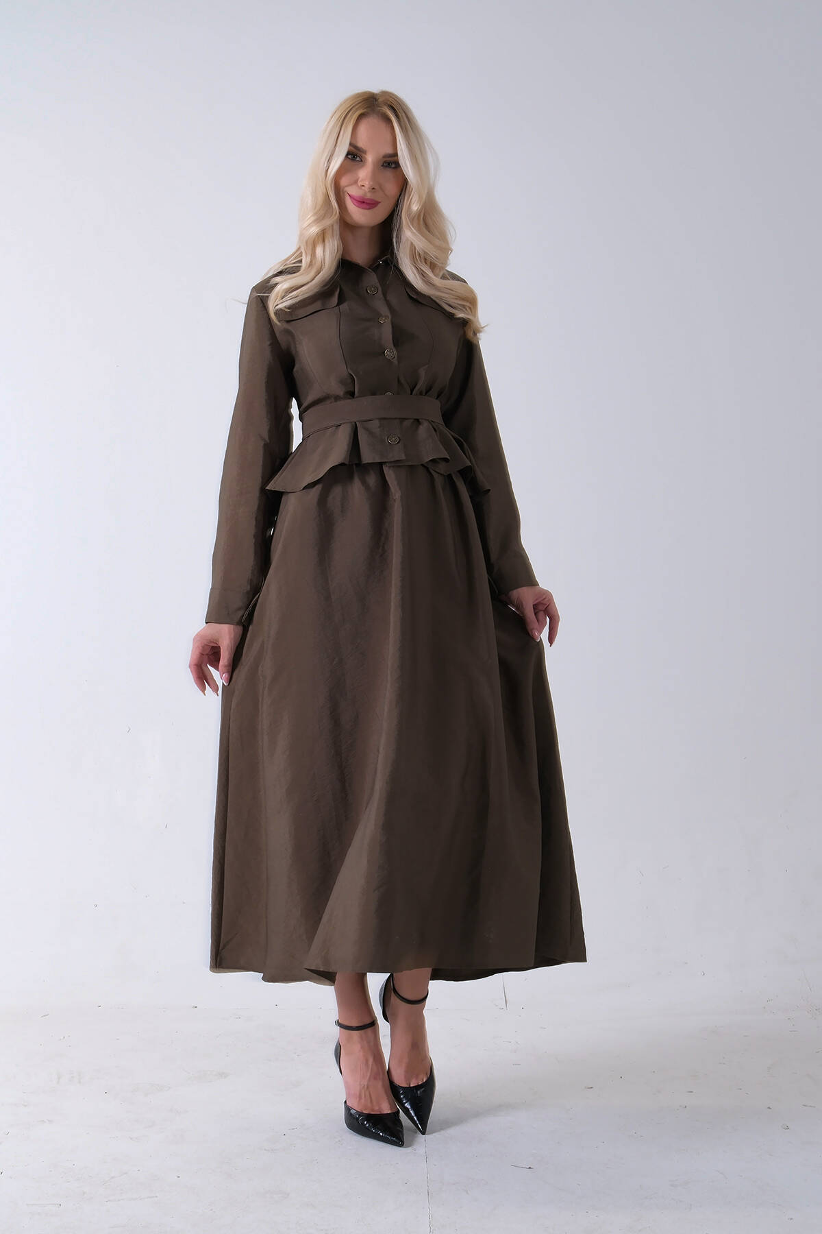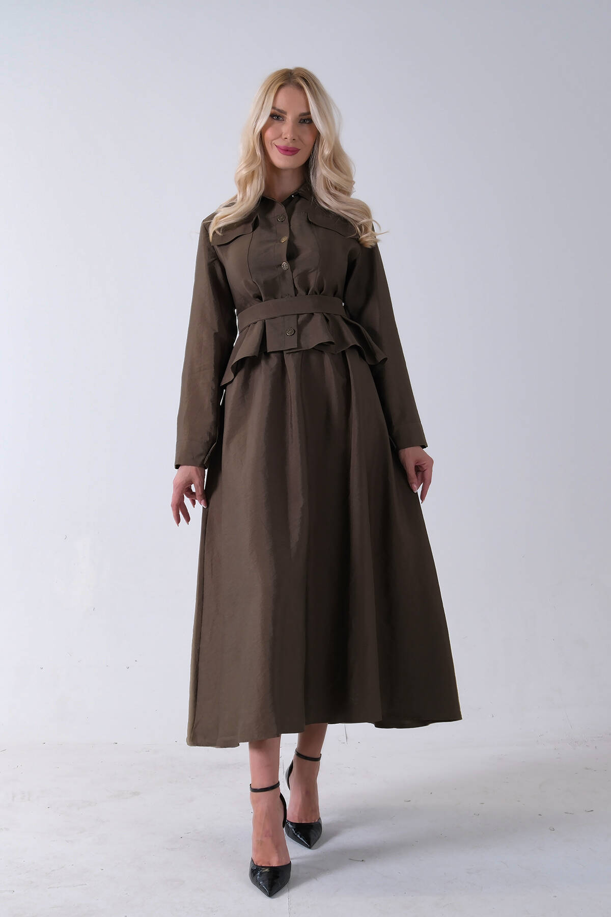 Haki Ceket Cep Görünüm Detaylı Düğme Kapamalı Etekli Takım 5303168.23