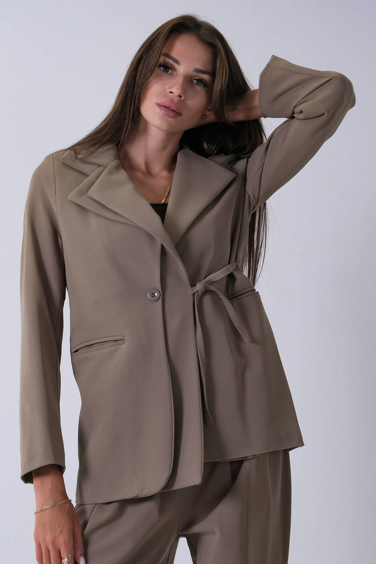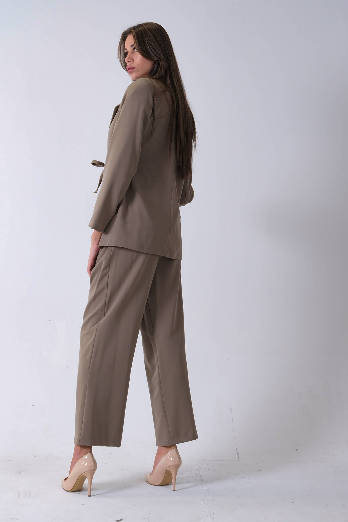 Haki Çift Cep Yandan Bağlamalı Ceket Pantolonlu Takım 4592259.23