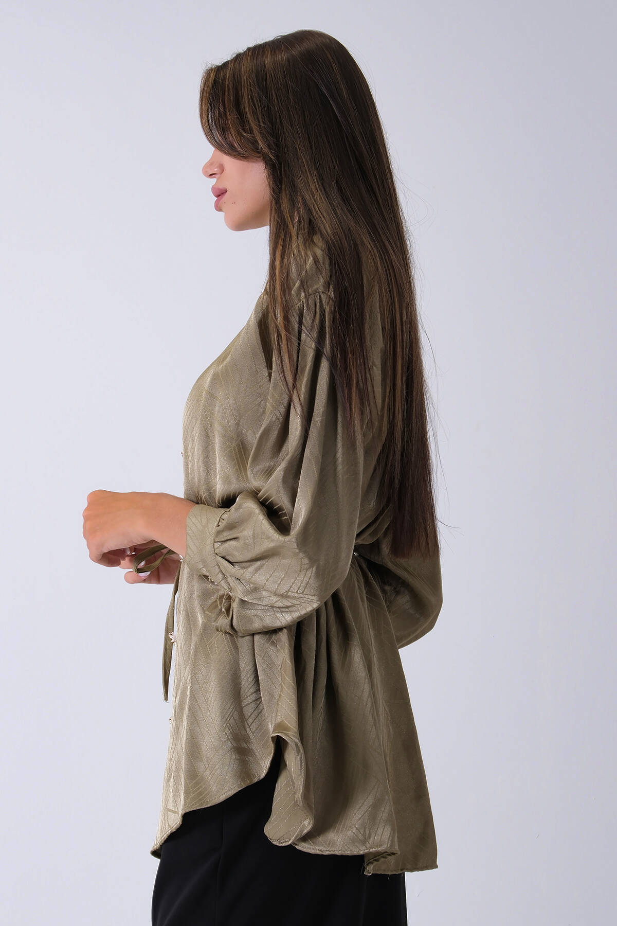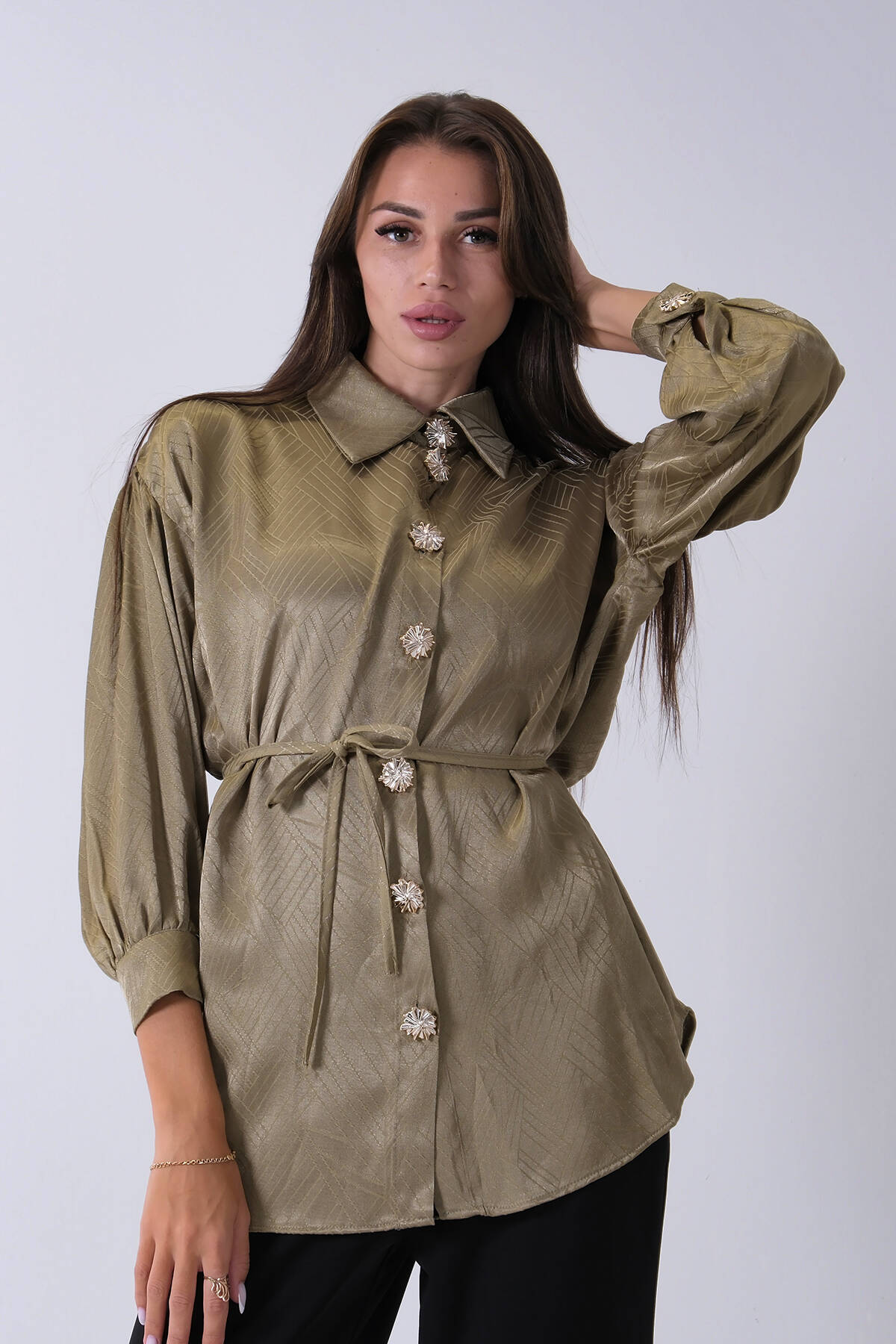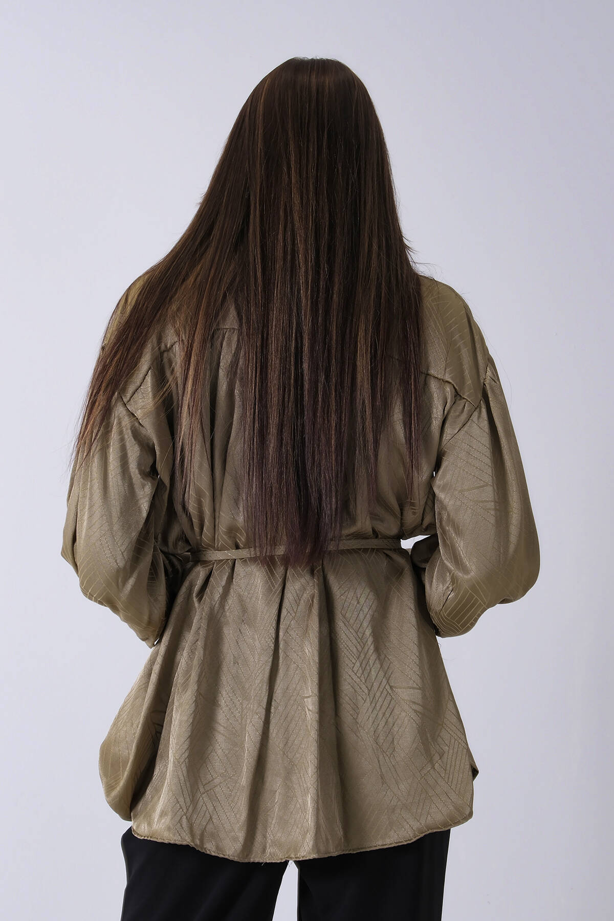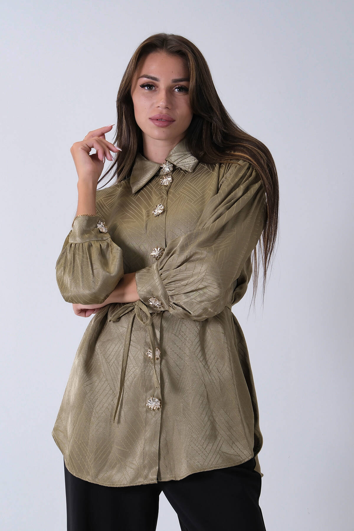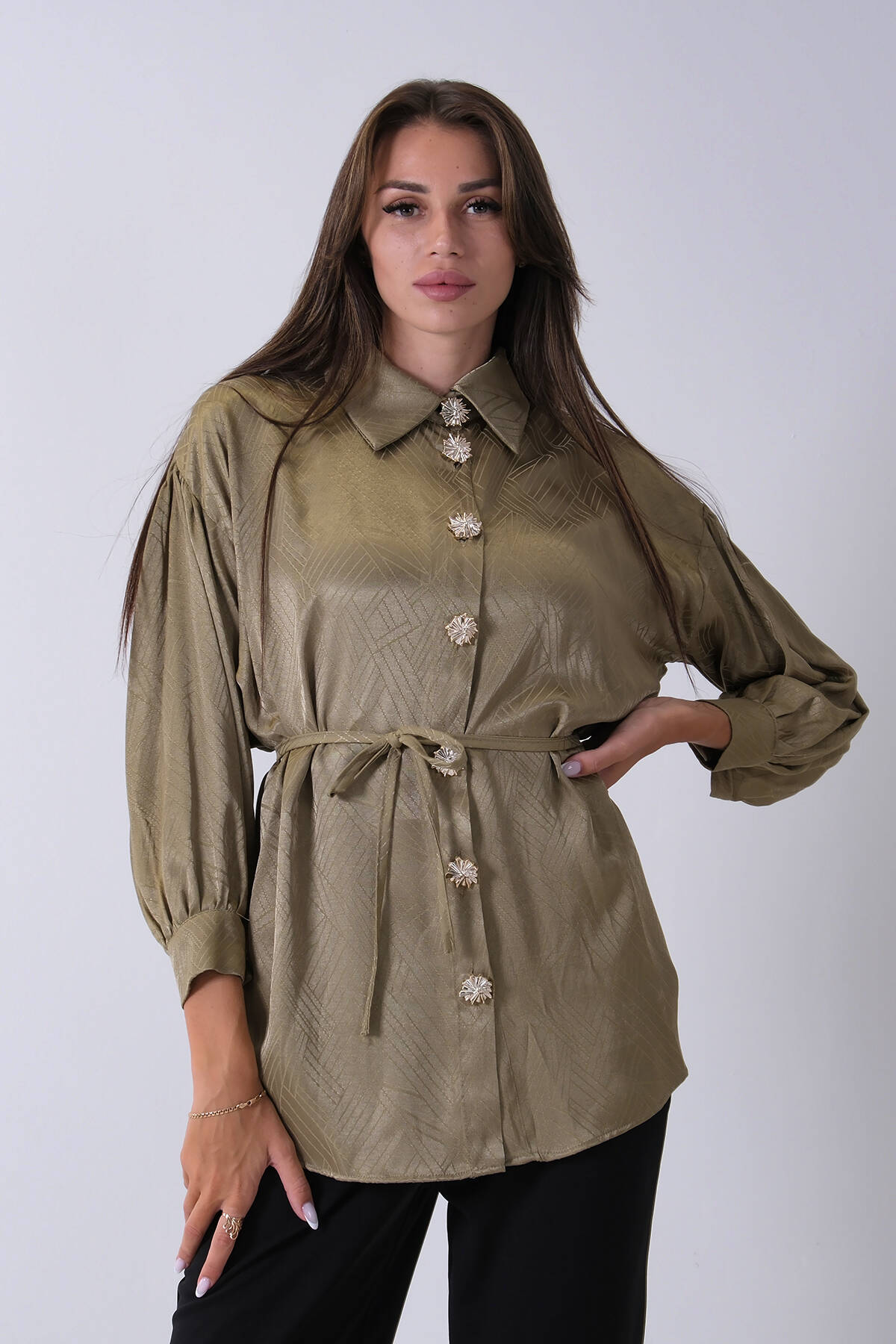 Haki Gömlek Yaka Düğme Kapamalı Bel Bağlamalı Tunik 4595331.23