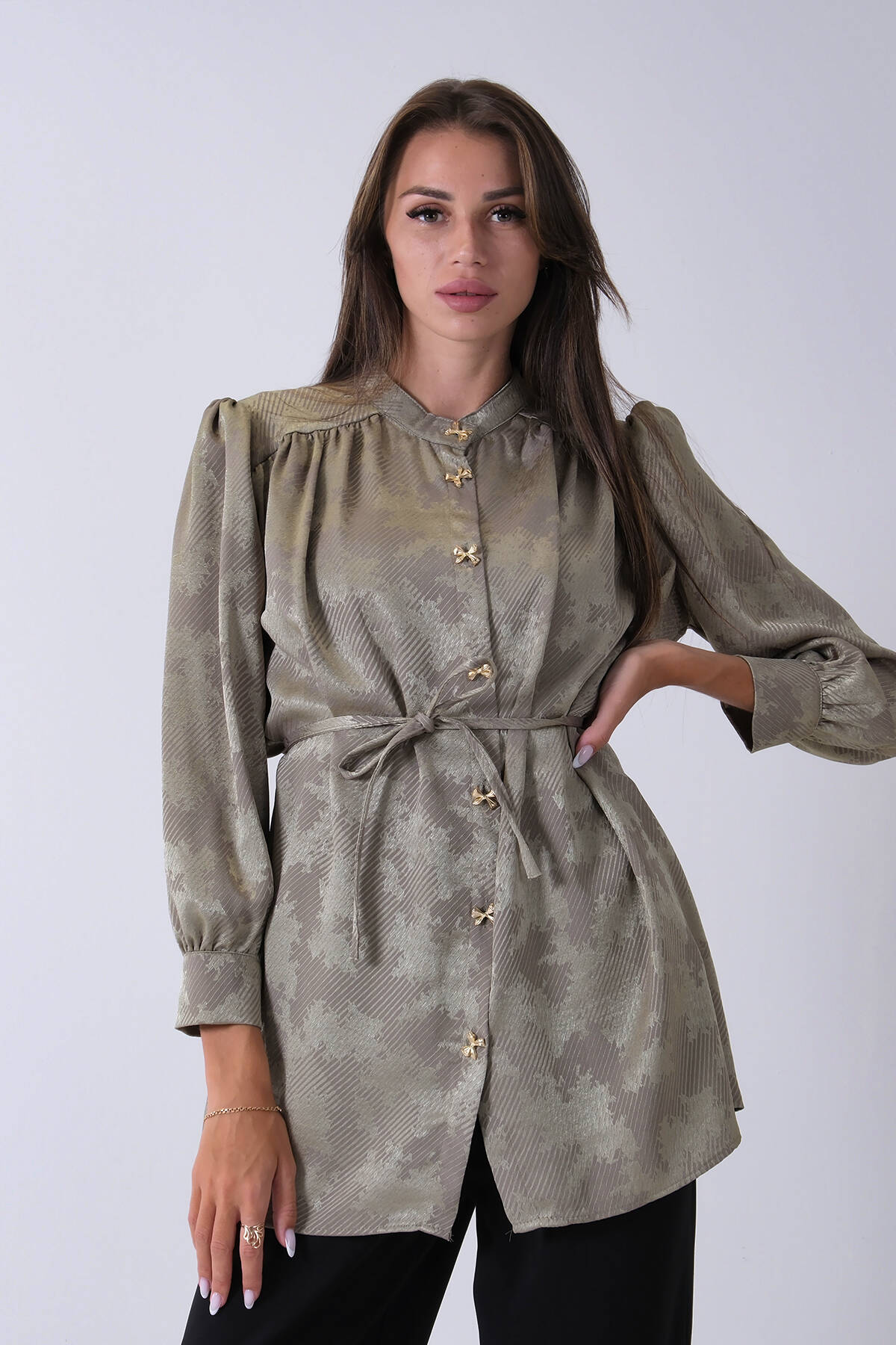 Haki Hakim Yaka Bel Bağlamalı Desenli Tunik 4595333.23