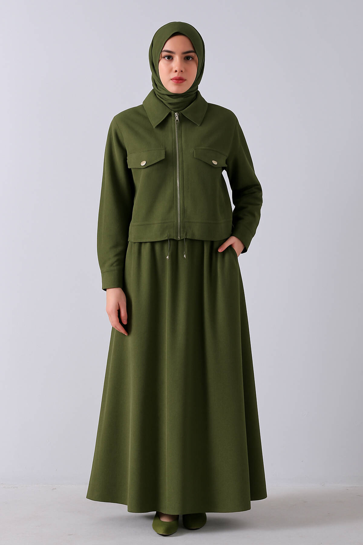 Haki Kol Fermuar Detaylı Cep Görünüm Ceket Etekli Takım 44510857.23