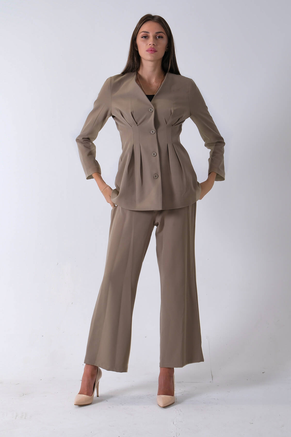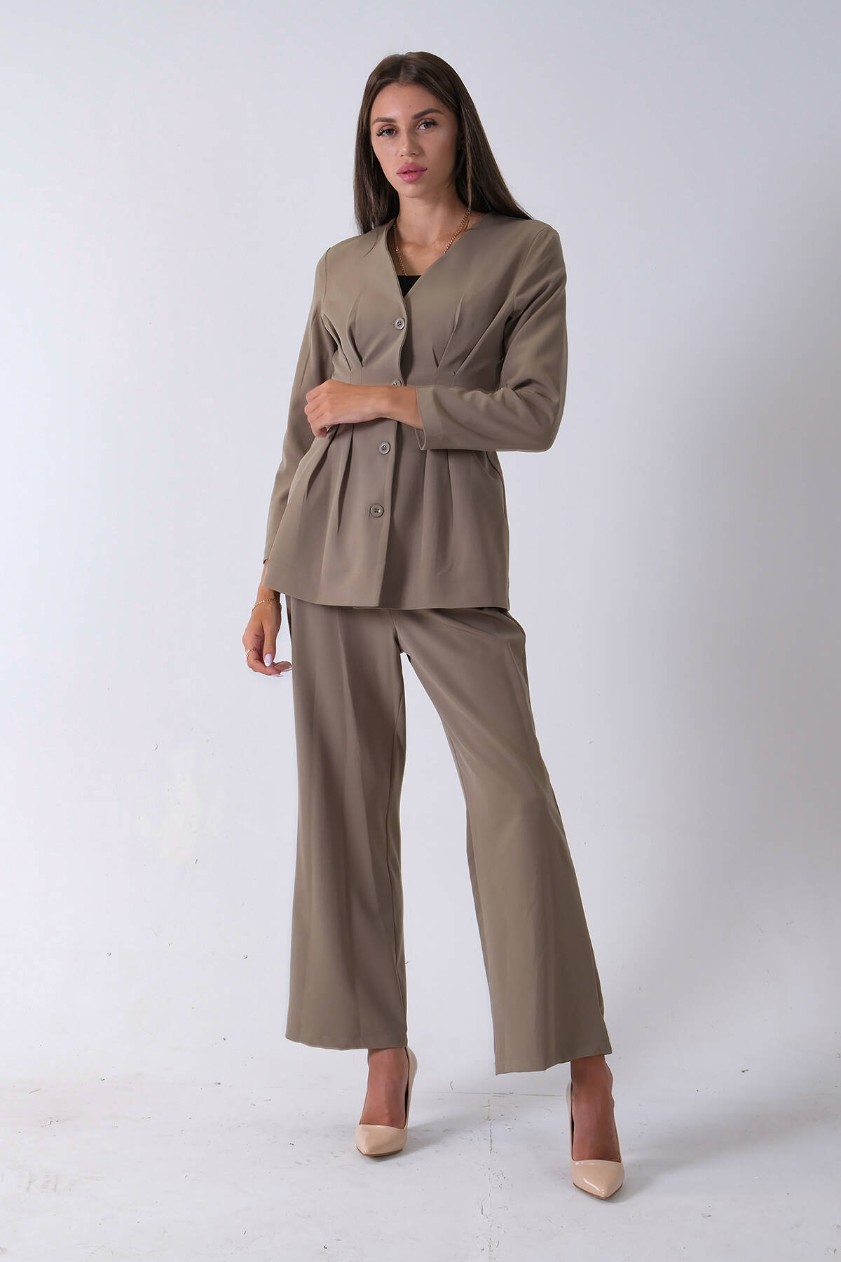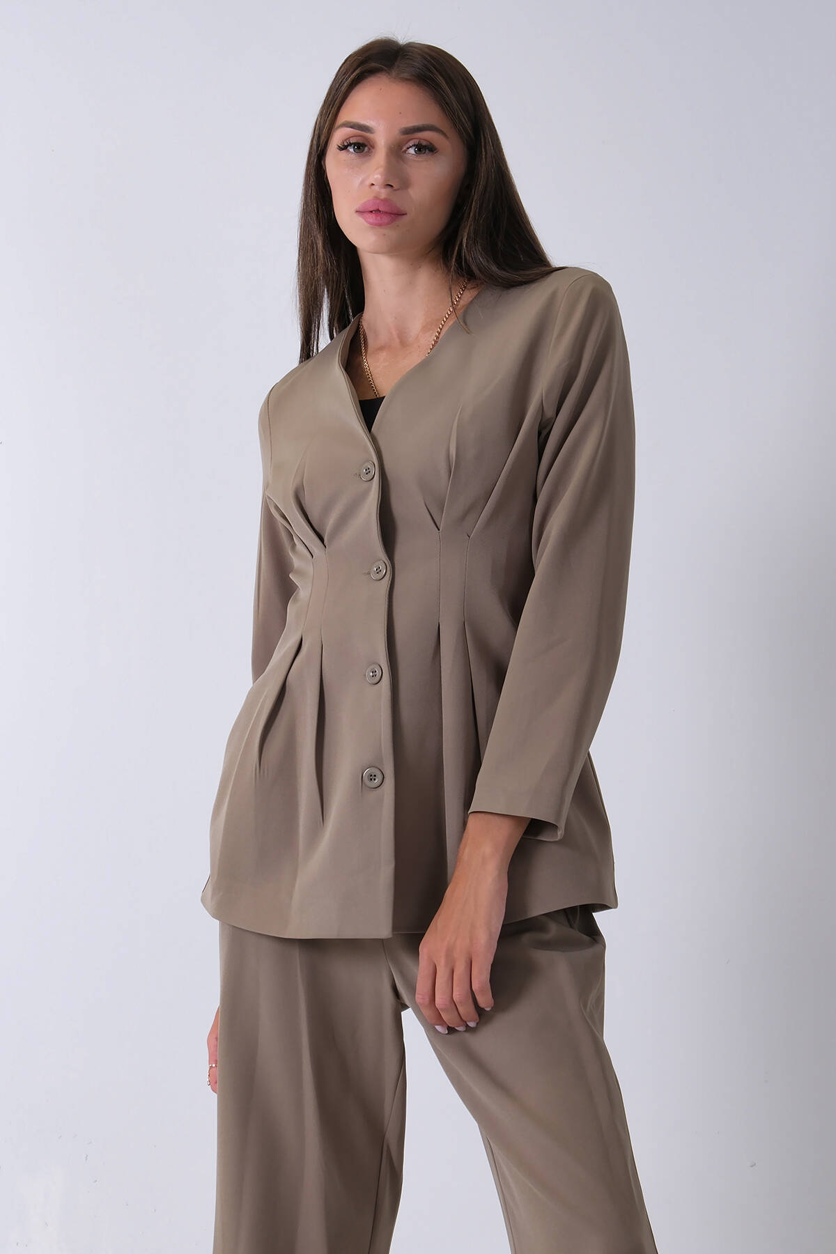 Haki Önü 4 Düğme Kapamalı Pantolonlu Takım 4592261.23