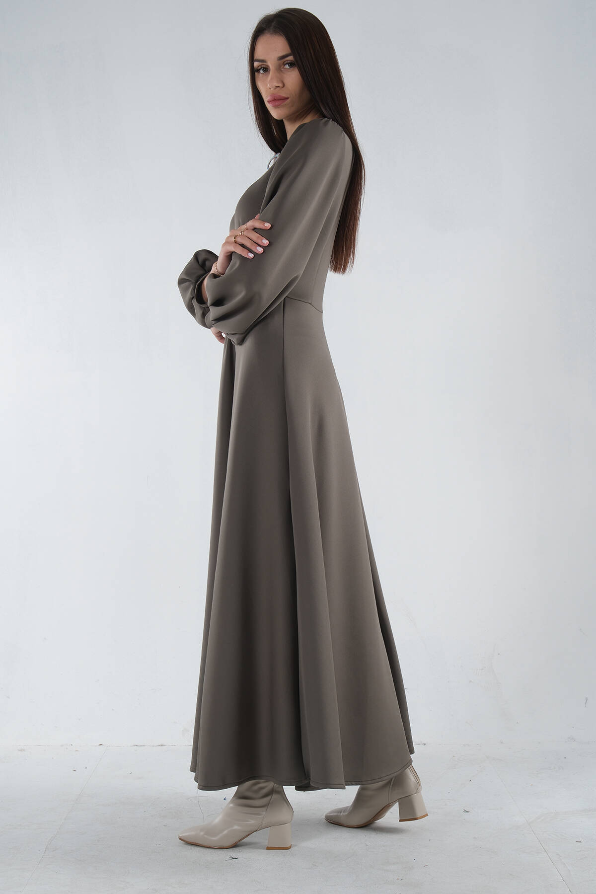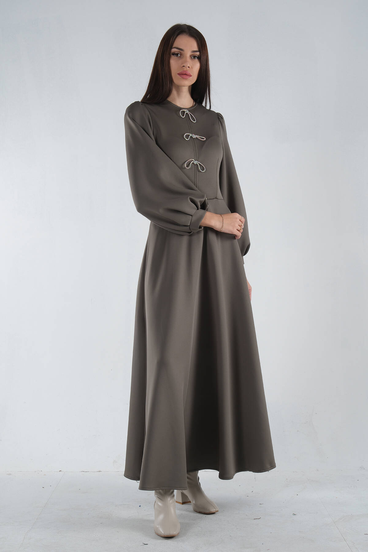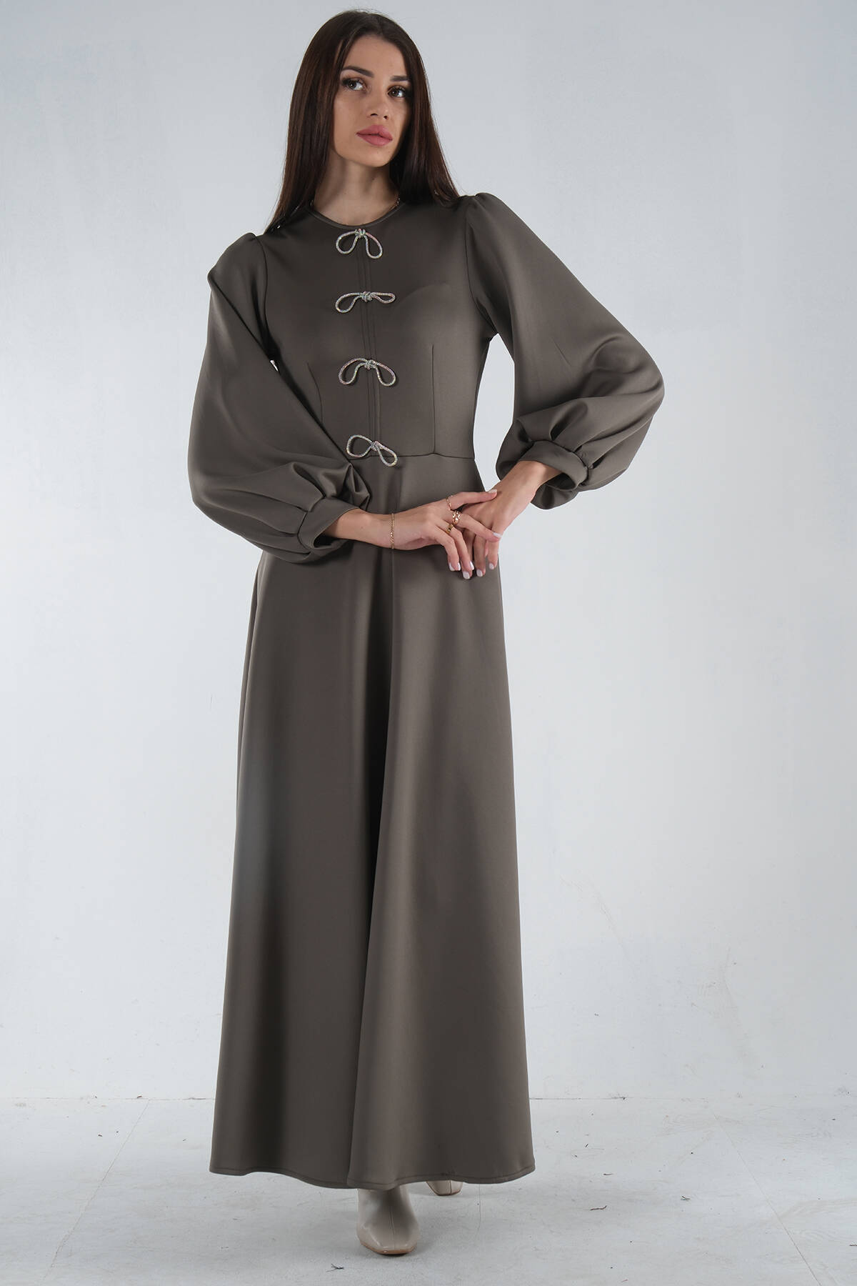 Haki Önü Simli Balon Kol Elbise 5305031.23
