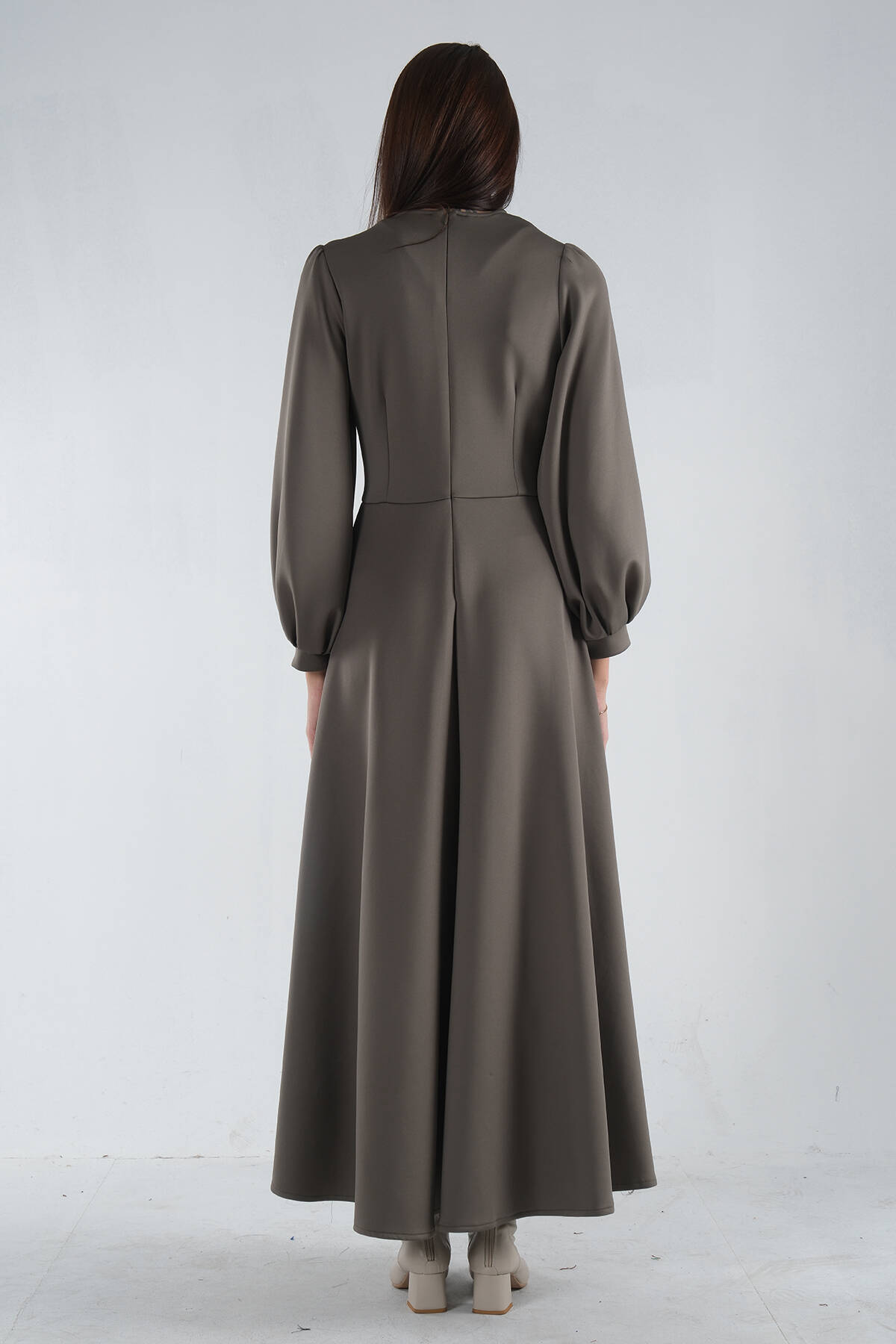 Haki Omuz Fiyonk Detaylı Kemerli Bisiklet Yaka Scuba Tesettür Elbise 4593456.23