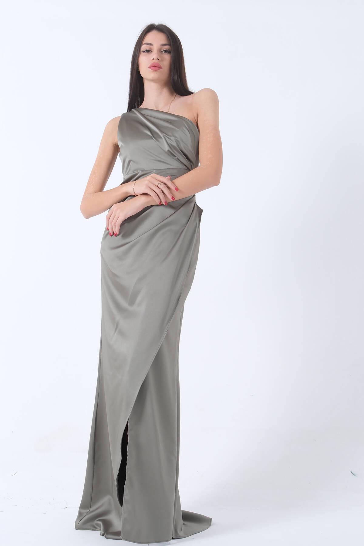 Haki Önü Yırtmaçlı Tek Omuz Şık Abiye 0801563.23