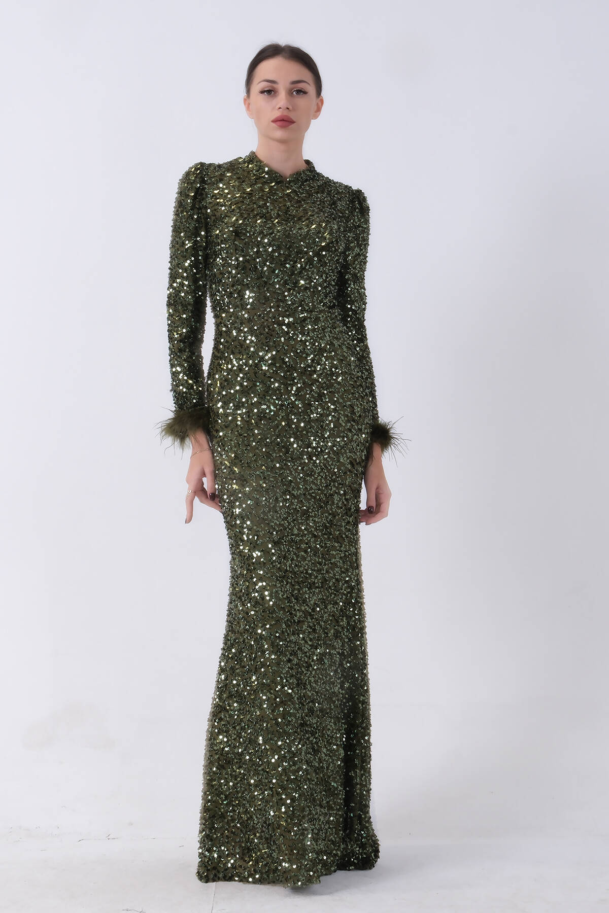 Zümrüt Bilek Ucu Tüylü Pul Payetli Tesettür Abiye 6502496.123