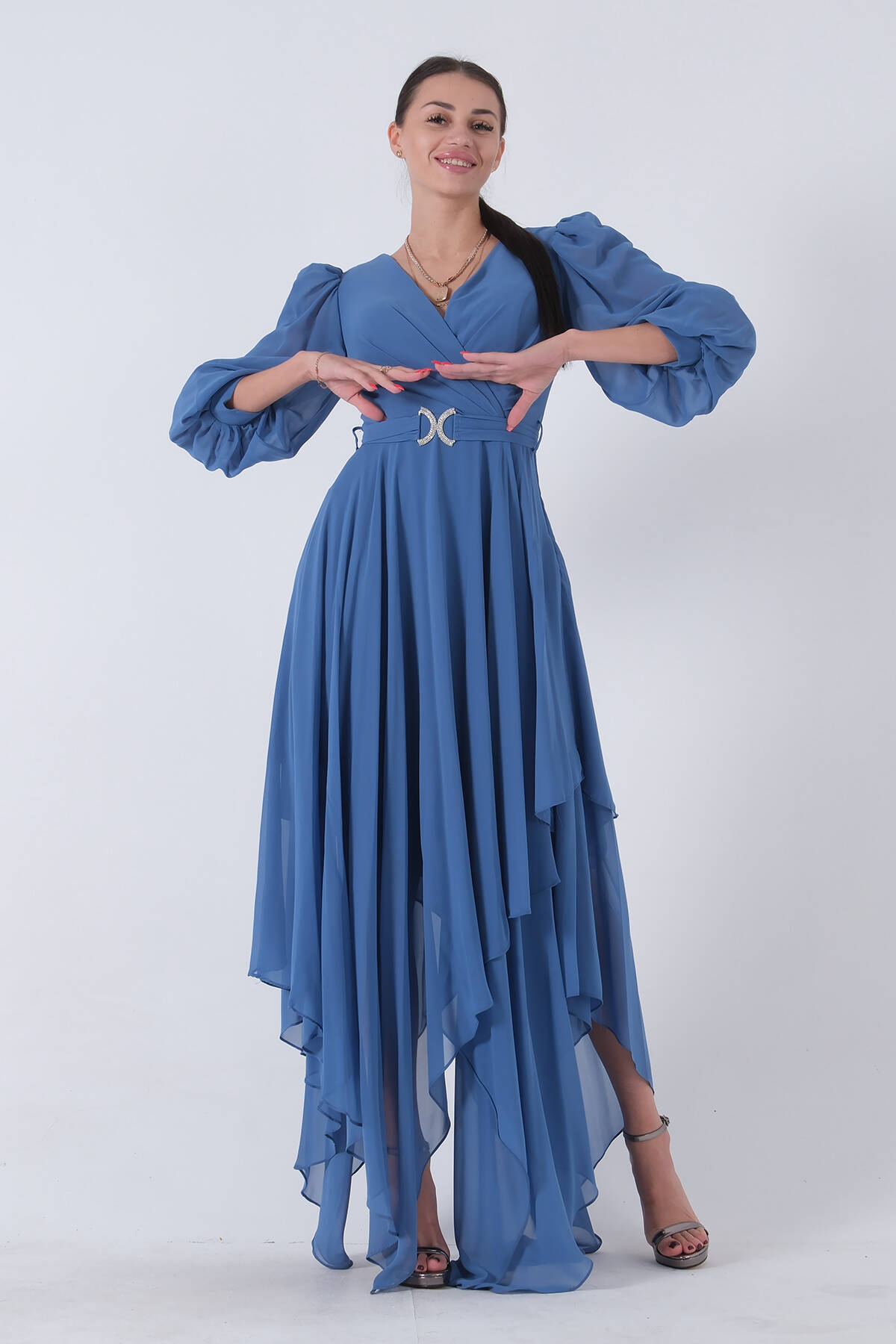 Modelin Ölçüleri : Boy: 1.80 cm / Göğüs: 88 cm / Bel: 69 cm /Basen : 94 cm Mankenin Üzerindeki Ürün 38/M Bedendir %100 Polyester Uzun Balon Kol Kruvaze Yaka Seyyar Kemerli Eteği Asimetrik Kesim Şifon Abiye Elbise Ürün Boyu : En uzun :178 En kısa : 105 cm Stüdyo Çekimlerinde Renkler Işık Farklılıgından Dolayı Değişiklik Gösterebilir (Dikkat! Ürünlerimiz güvenlik bandı ile gönderilmektedir . Güvenlik bandı olmayan ürünlerin iadesi kabul edilmeyecektir)