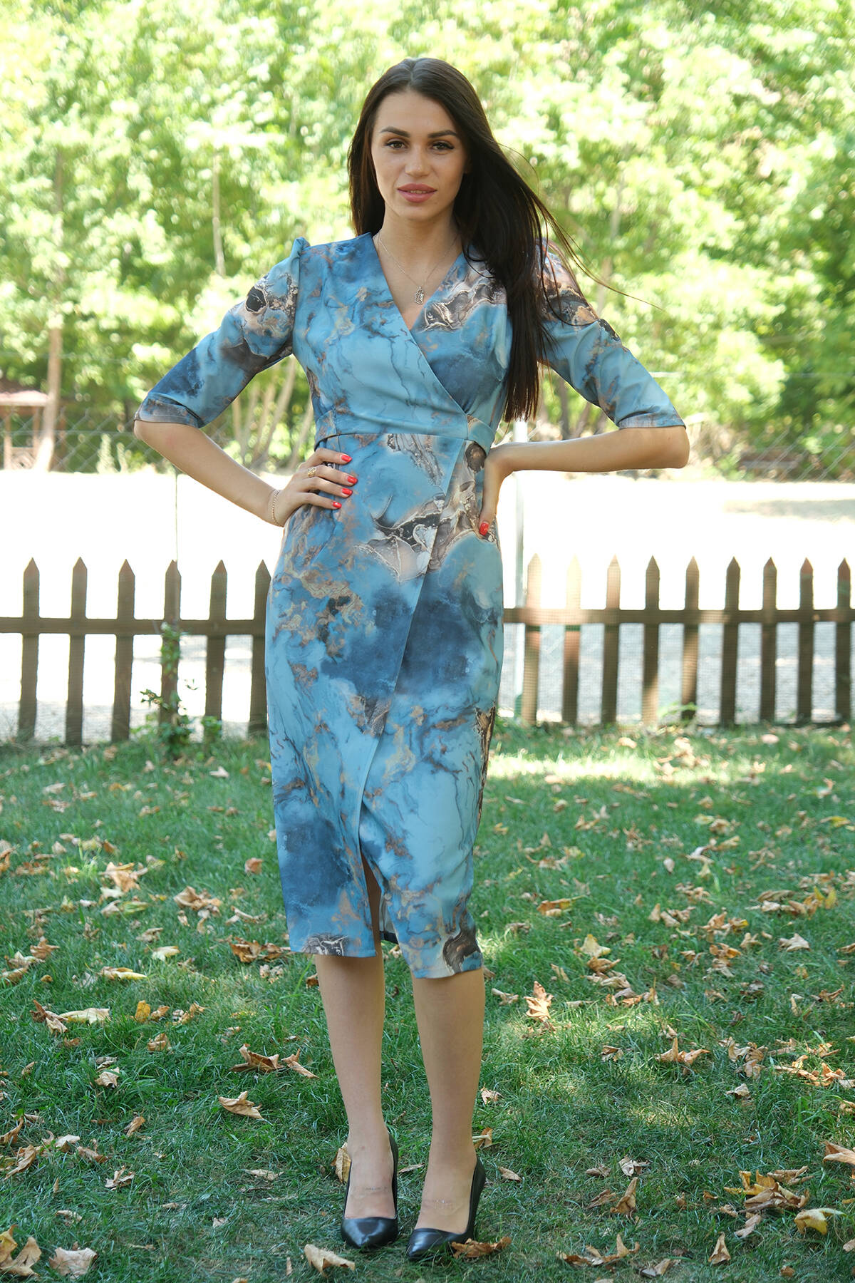 İndigo Kruvaze Yaka Midi Boy Krep Elbise 01040101.98