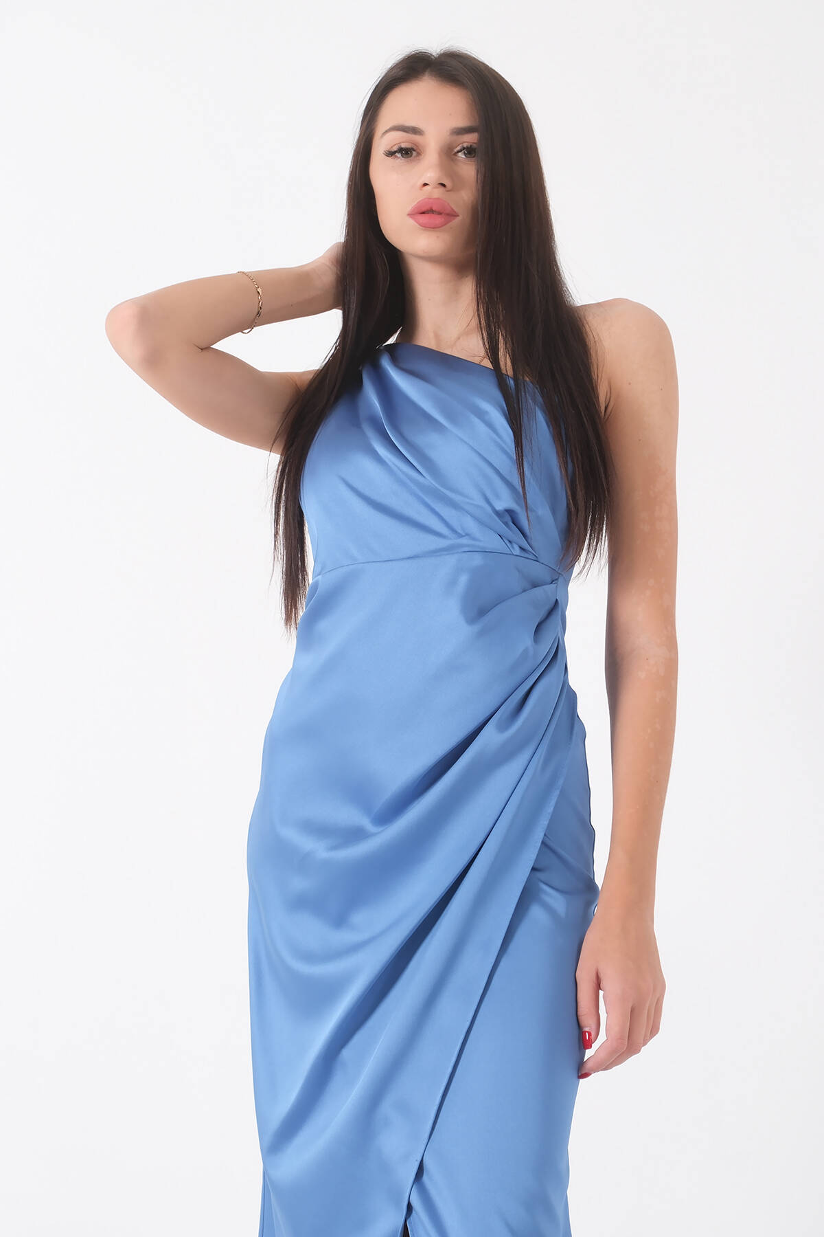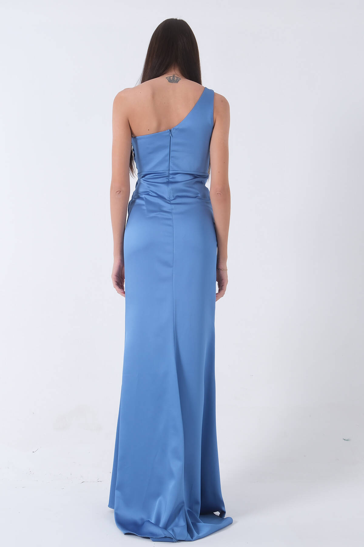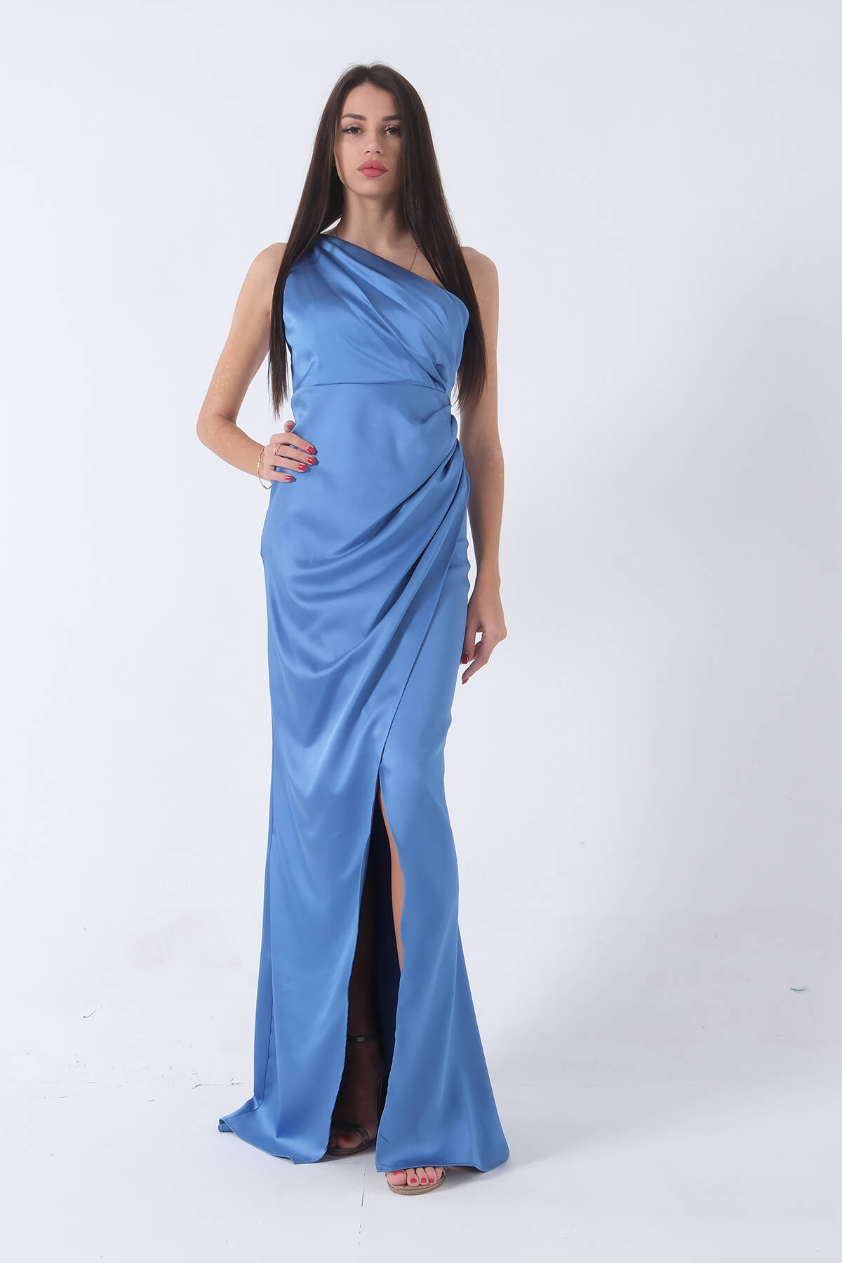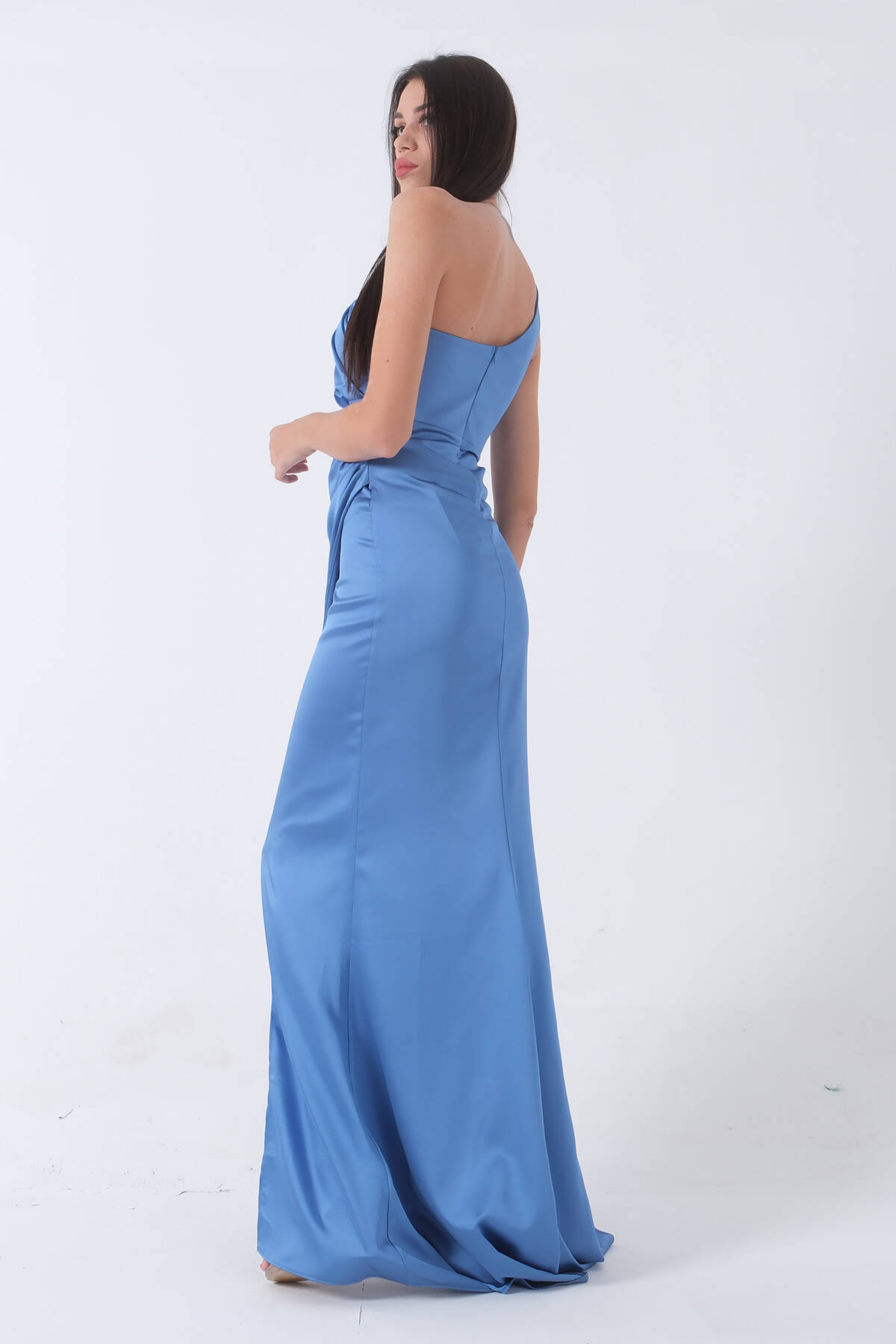 İndigo Önü Yırtmaçlı Tek Omuz Şık Abiye 0801563.98