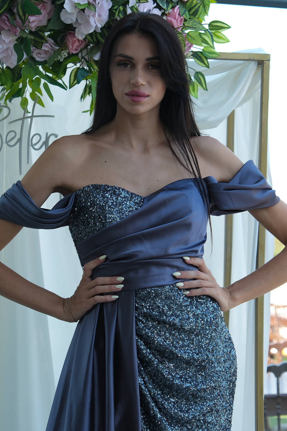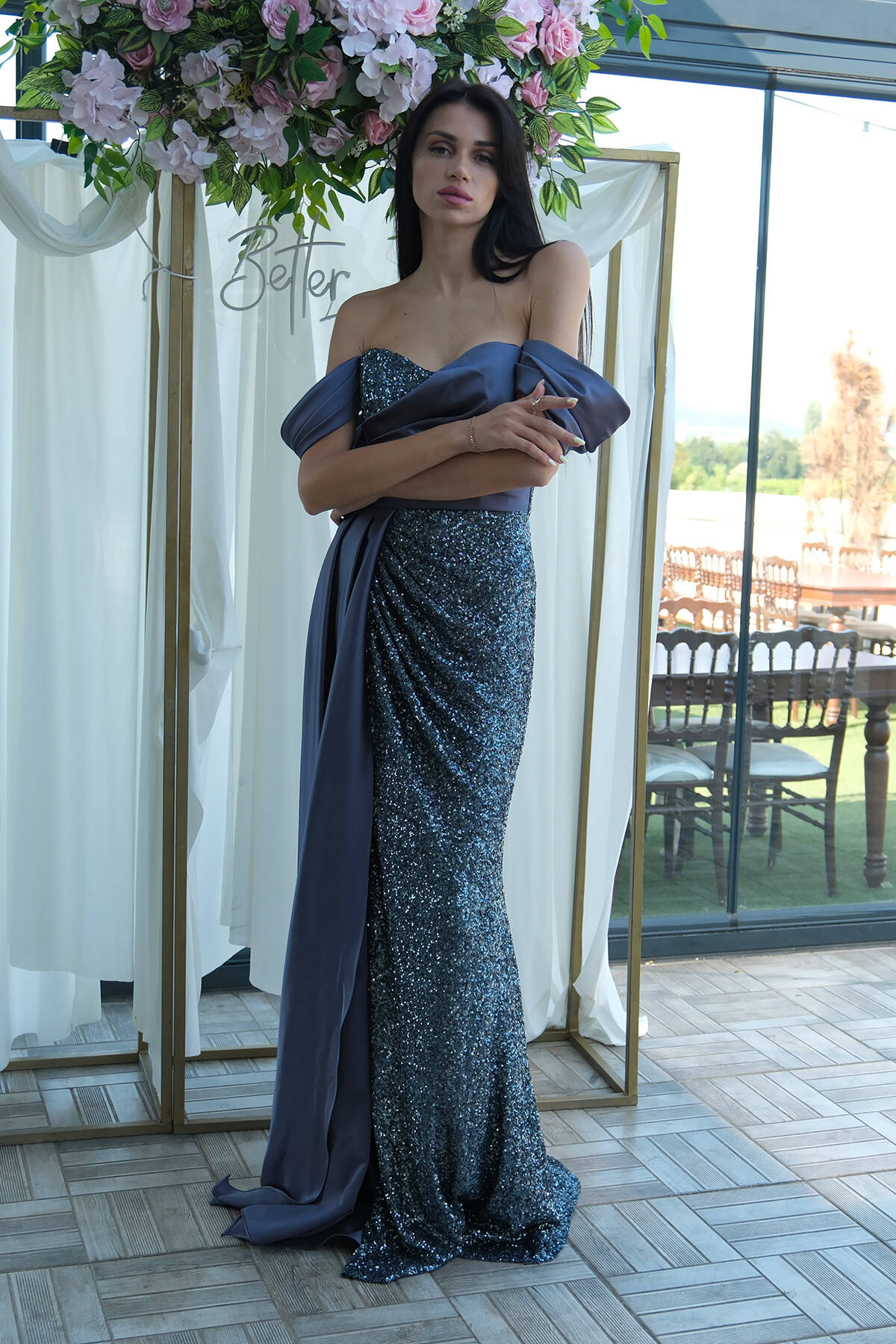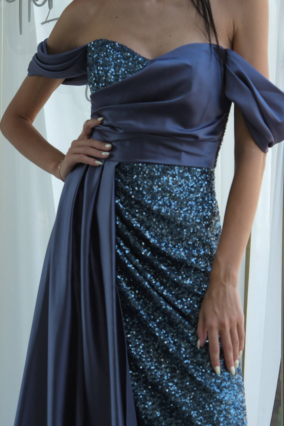 İndigo Pul Payet Detaylı Yırtmaçlı Abiye 9705321.98