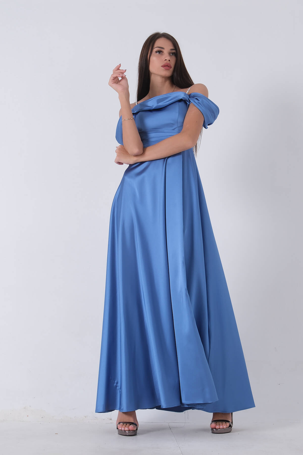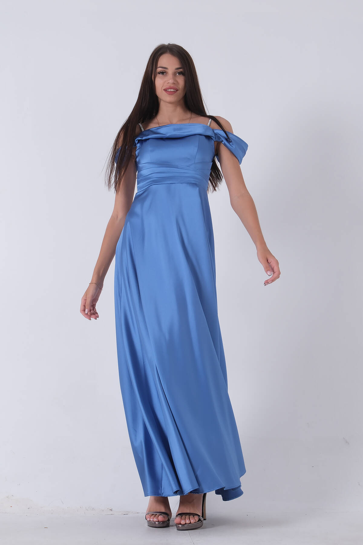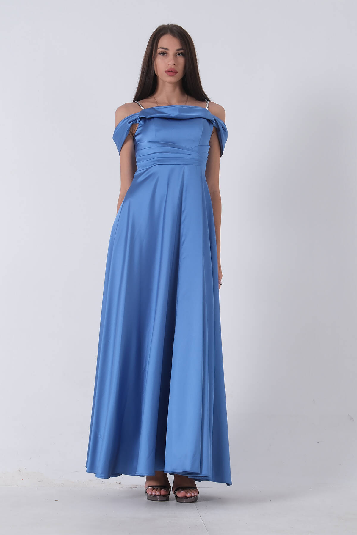 İndigo Taş Askılı Düşük Kol Saten Abiye 0806118.98