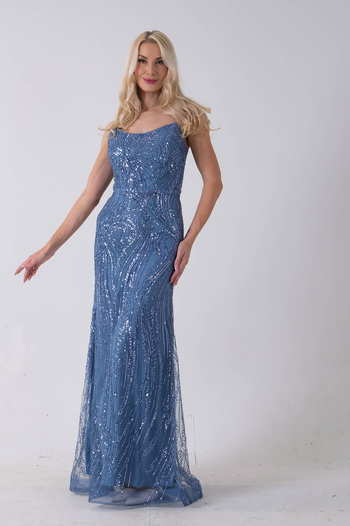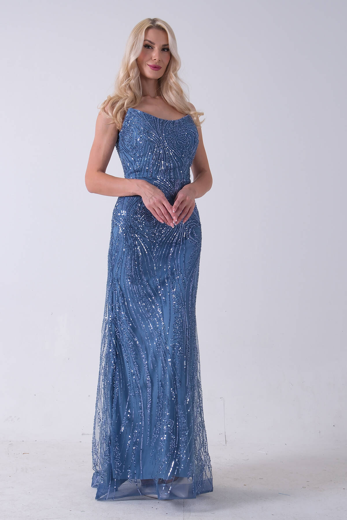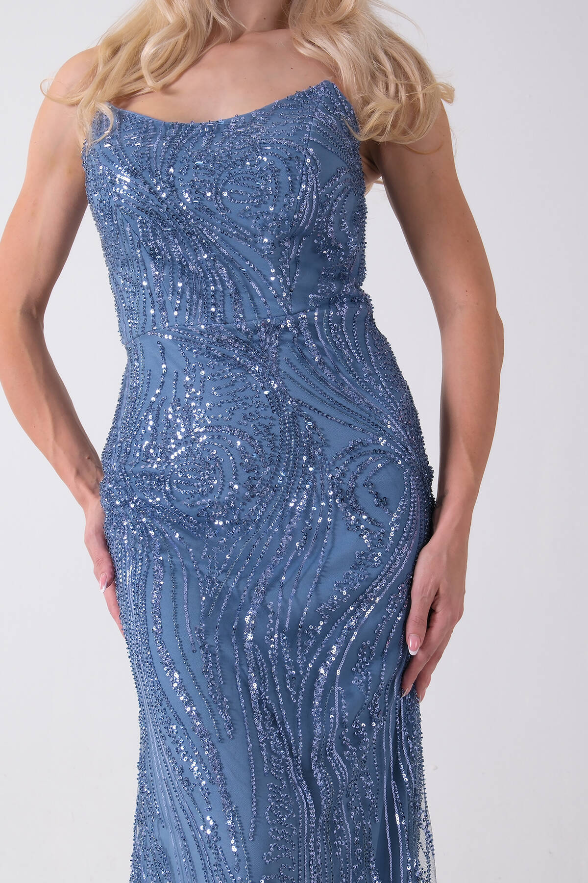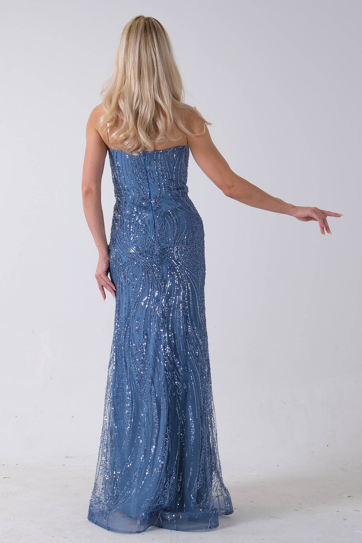 İndigo Taş İşlemeli Uzun Balık Abiye 0801056.98