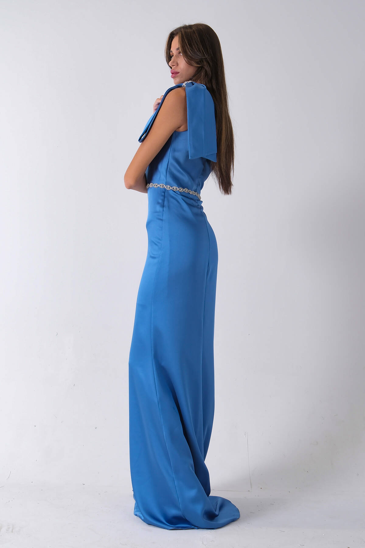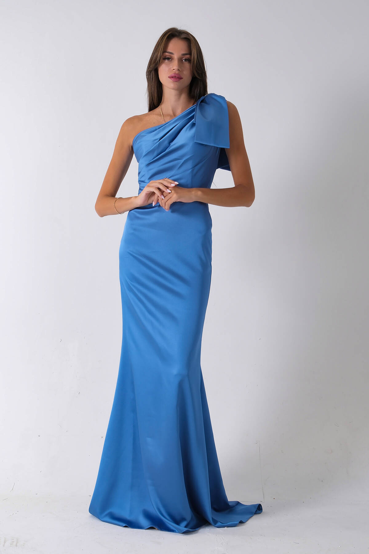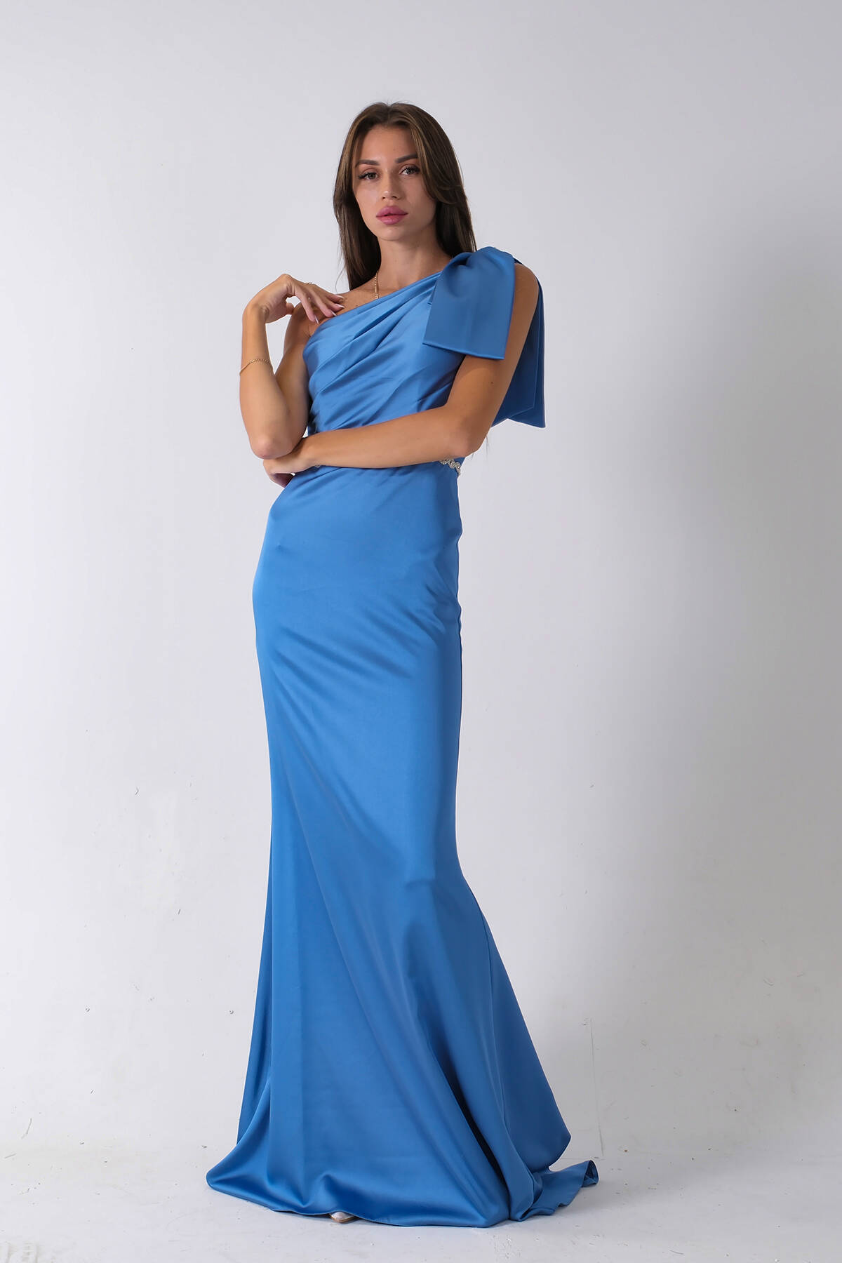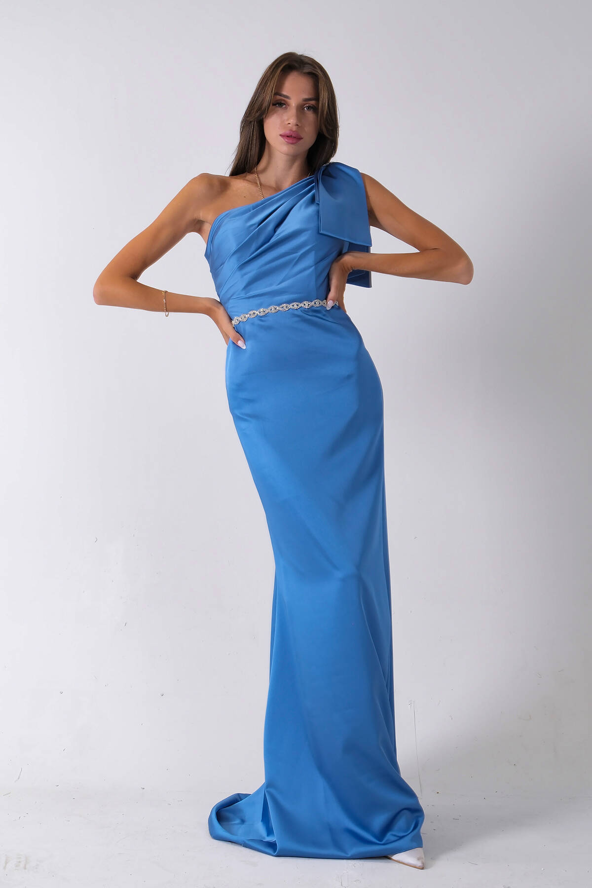İndigo Tek Omuz Drapeli Taş Detaylı Abiye 0801009.98