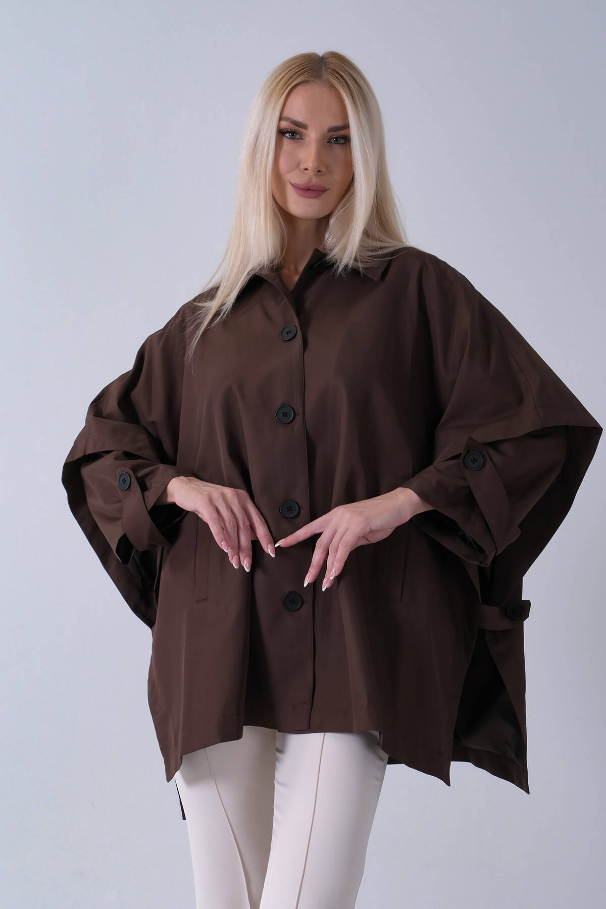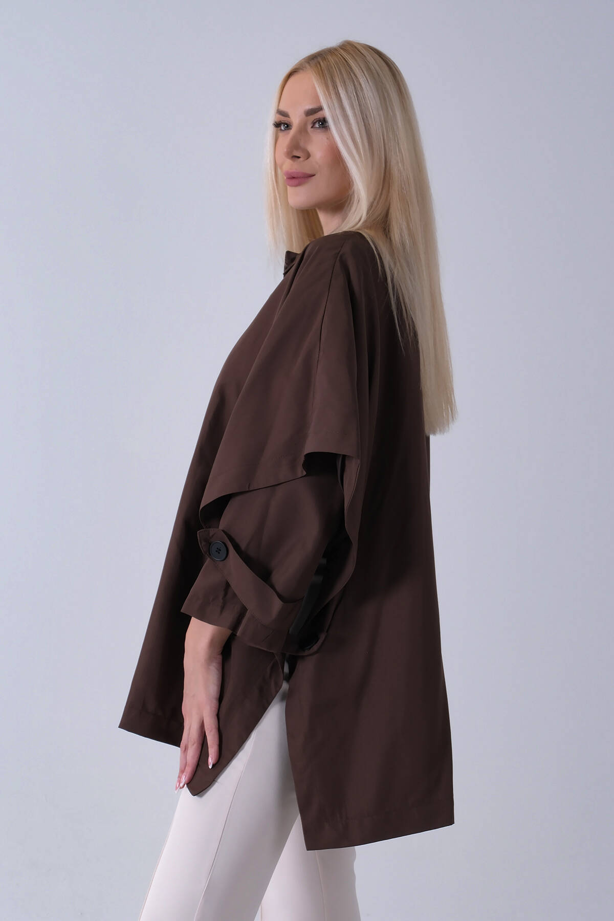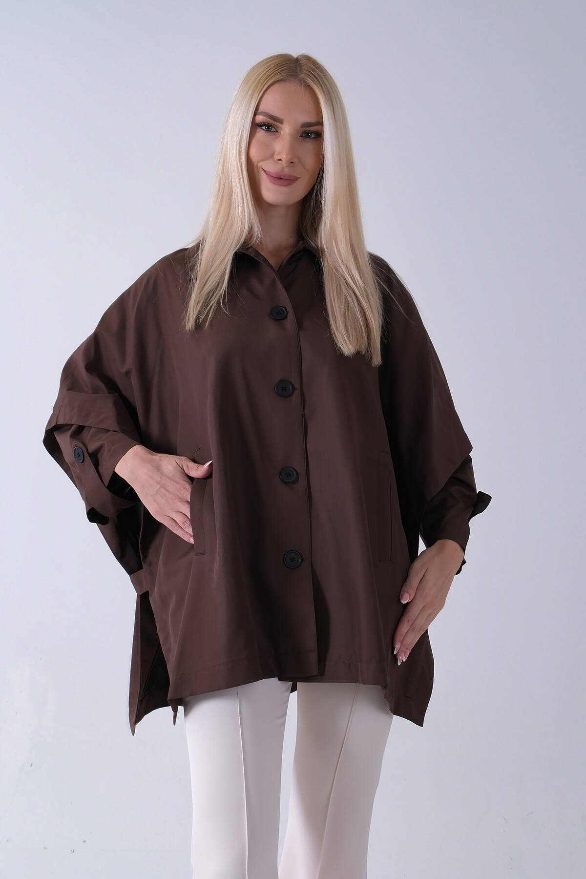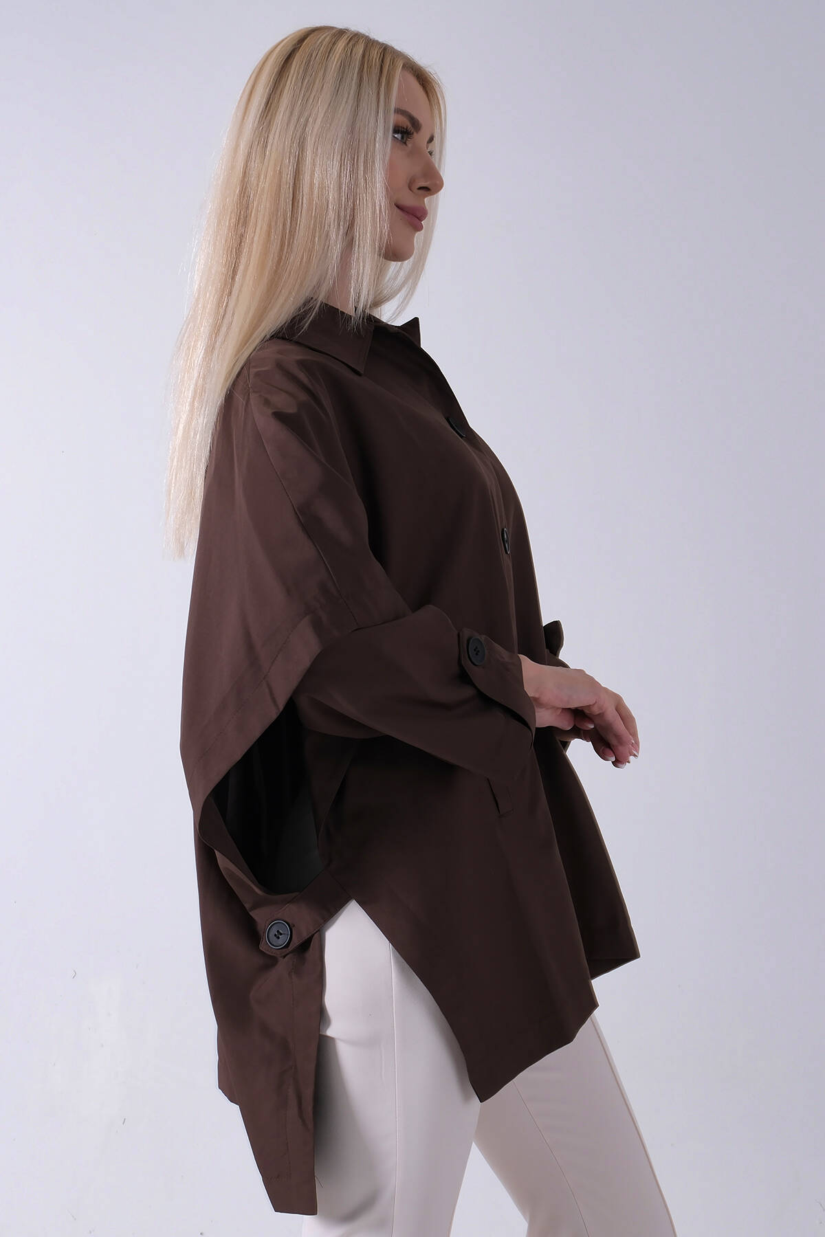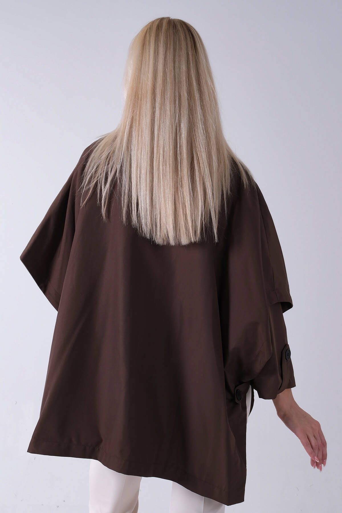 Kahve 5 Düğme Kapamalı Takma Kol Yandan Cepli Trenç 5309343.05