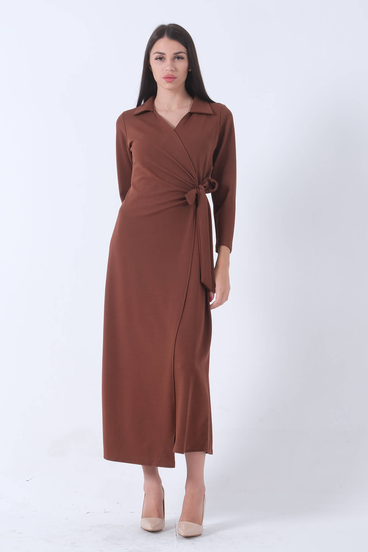 Kahve Anvelop Yandan Bağlamalı Örme Elbise 31061509.05