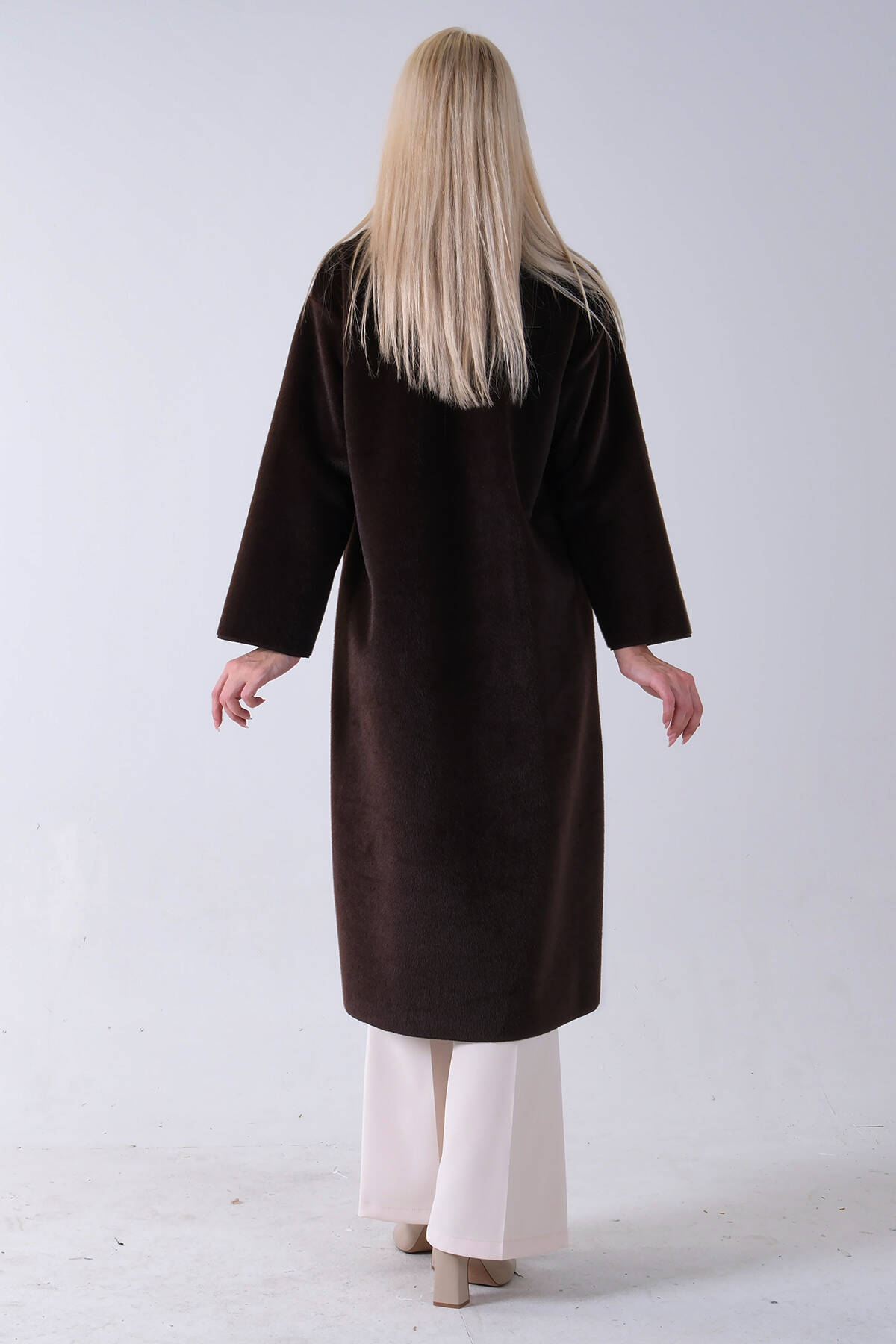 Sütlü Kahve Kol Bağlamalı Seyyar Kuşaklı Uzun Kaşe Kaban 41630051.374