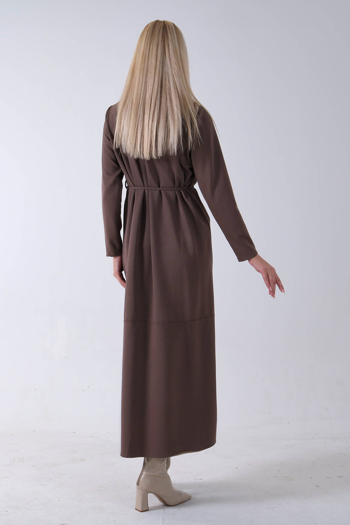 Kahve Boydan Düğme Kapamalı Bileği Lastikli Beli Kemerli Elbise 4593459.05