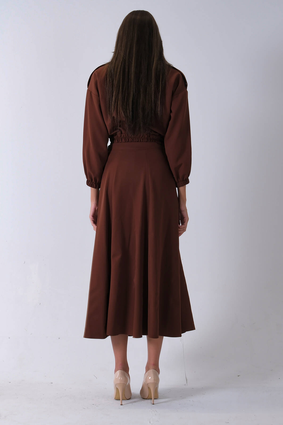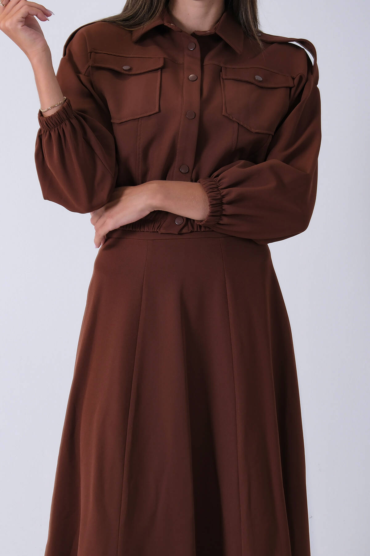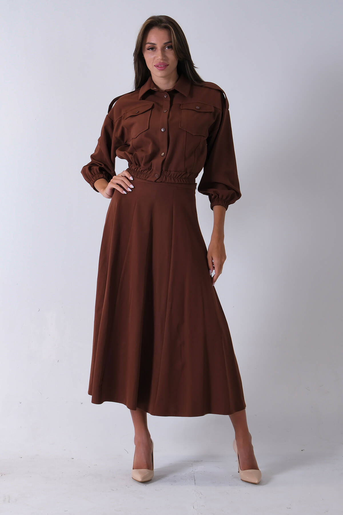 Kahve Beli Lastikli Cepli Ceket ve Etek İkili Takım 4595053.05