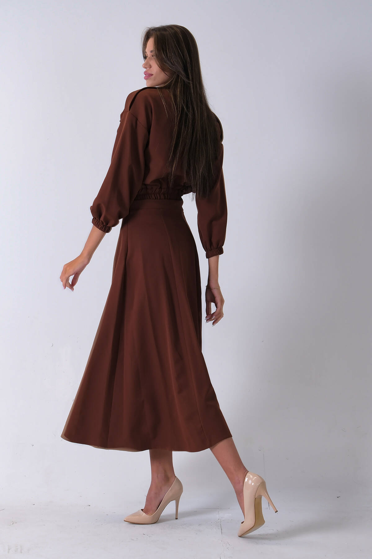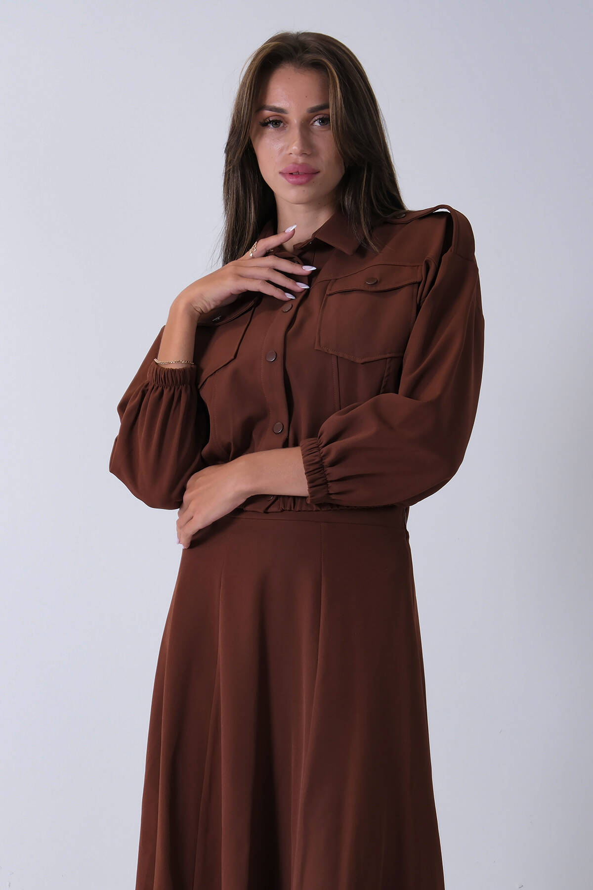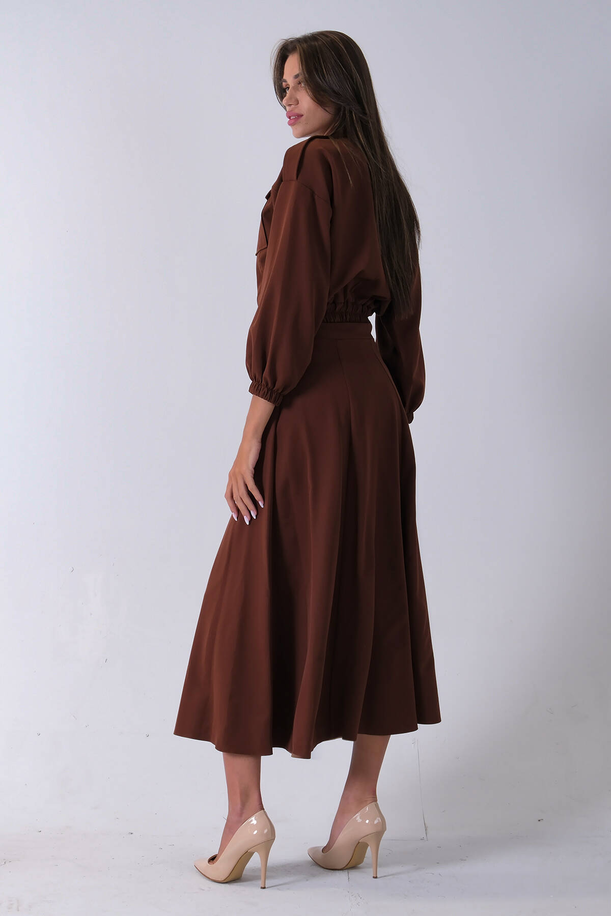 Kahve Beli Lastikli Cepli Ceket ve Etek İkili Takım 4595053.05