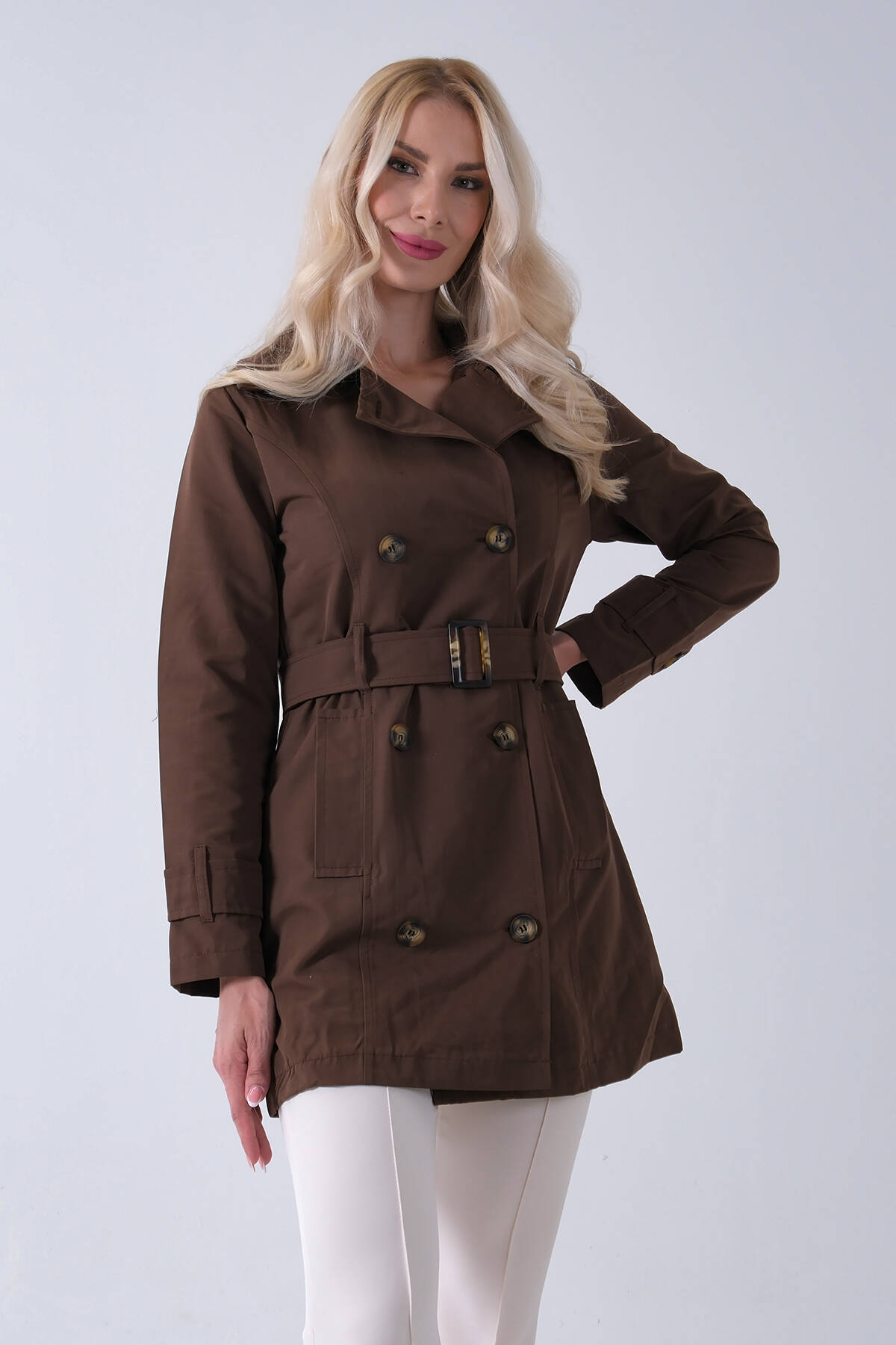 Kahve Düğme Kapamalı Kuşaklı Yandan Cepli Trenç 422235.05