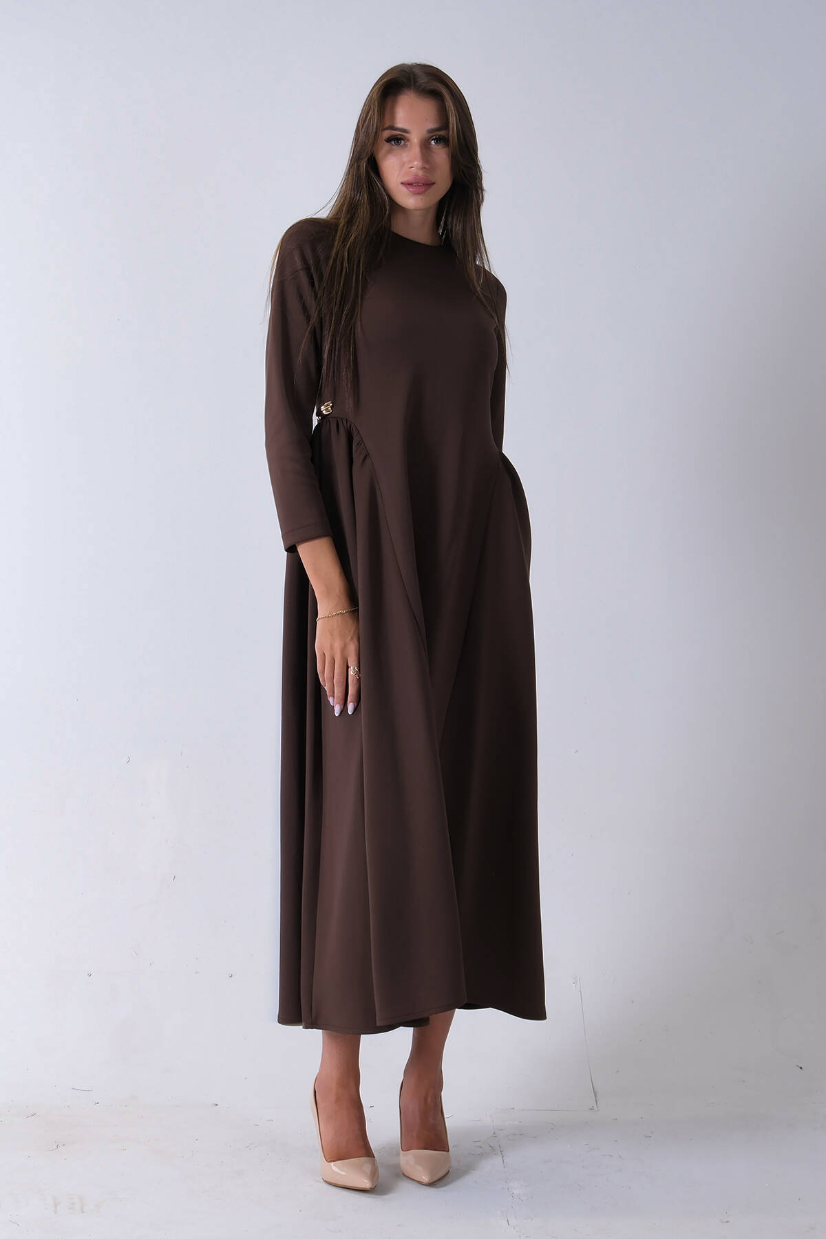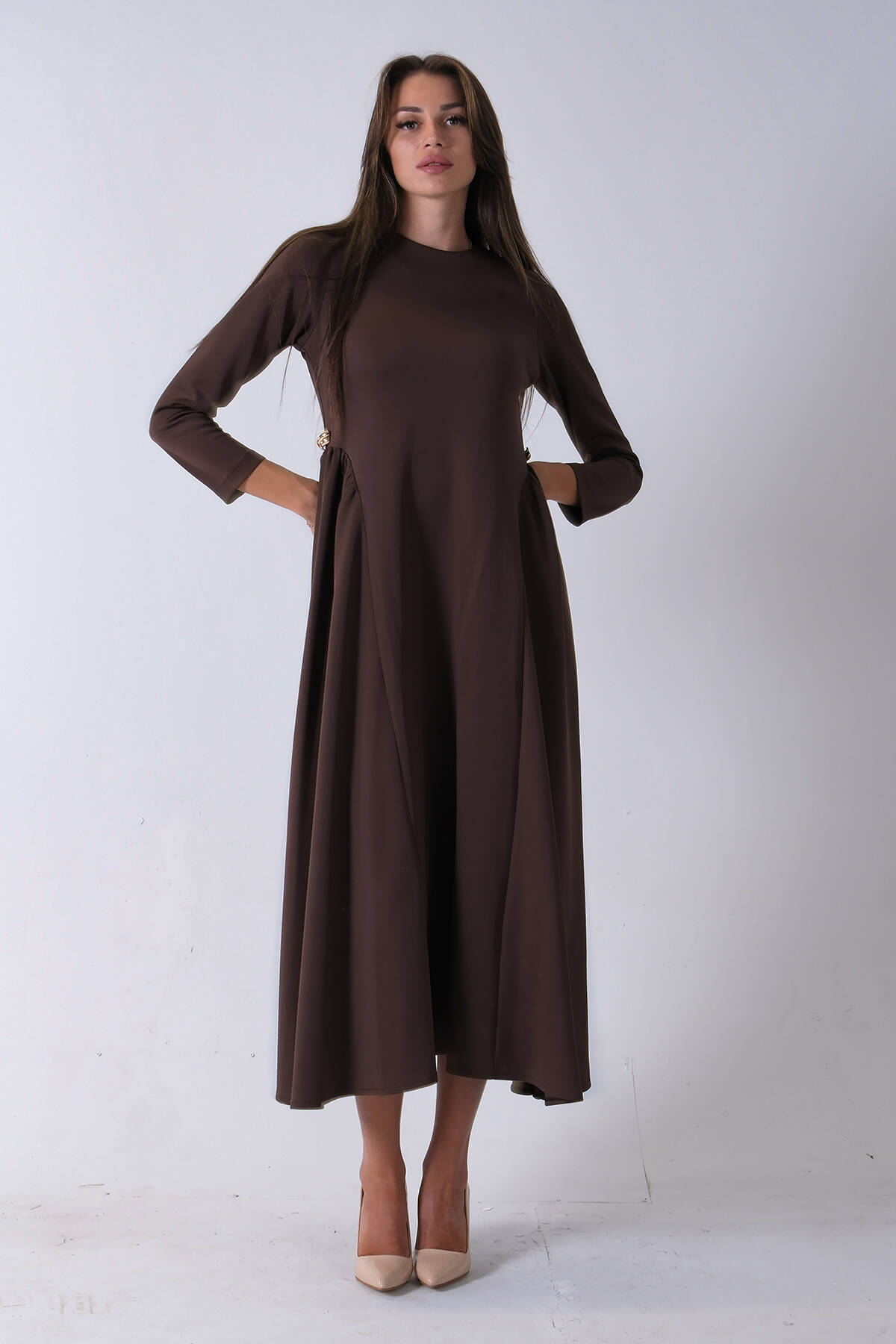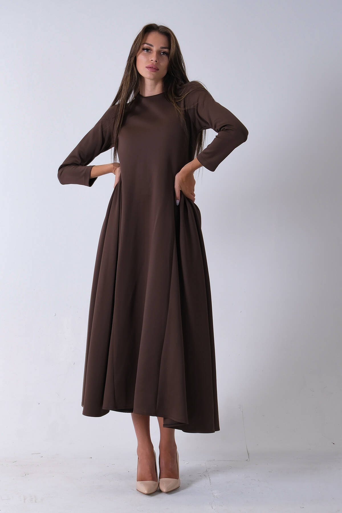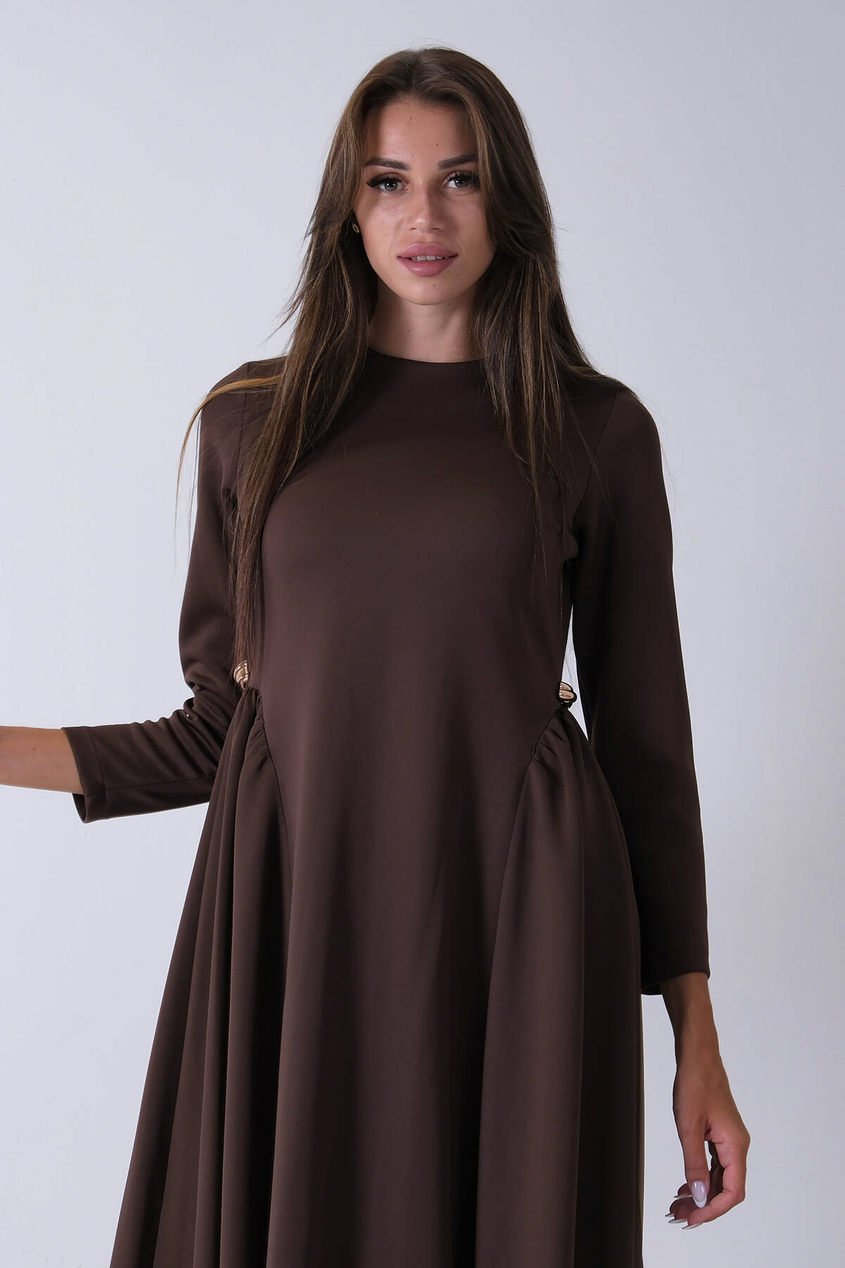 Kahve Bisiklet Yaka Scuba Tesettür Elbise 4593445.05