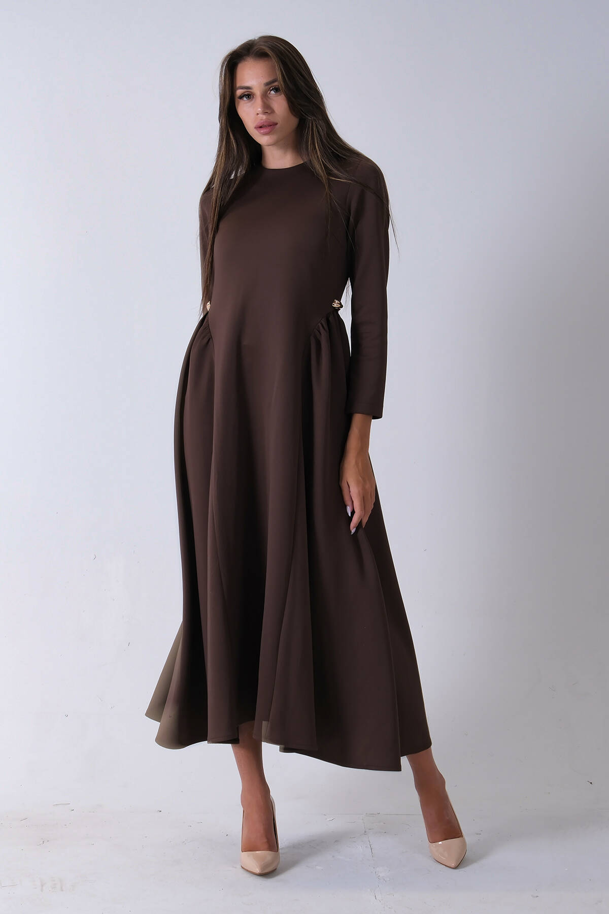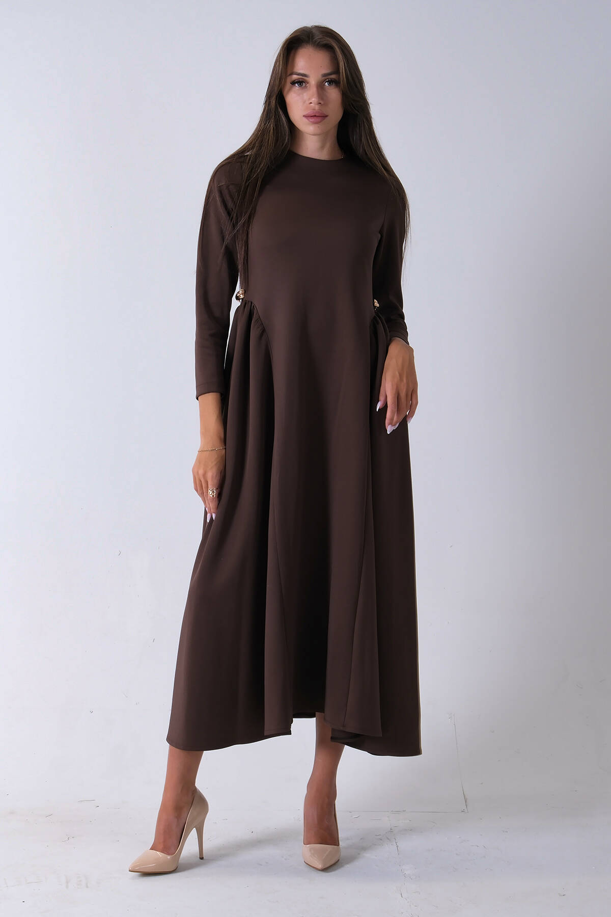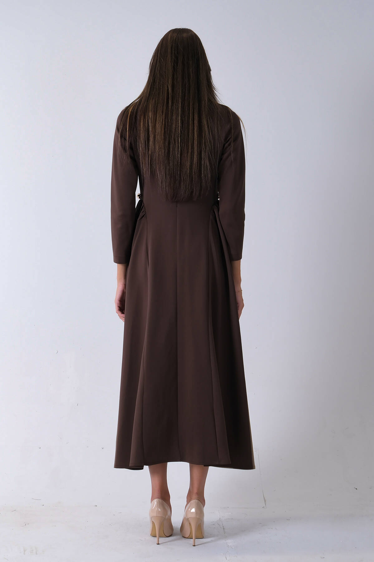 Kahve Boydan Düğme Kapamalı Bileği Lastikli Beli Kemerli Elbise 4593459.05