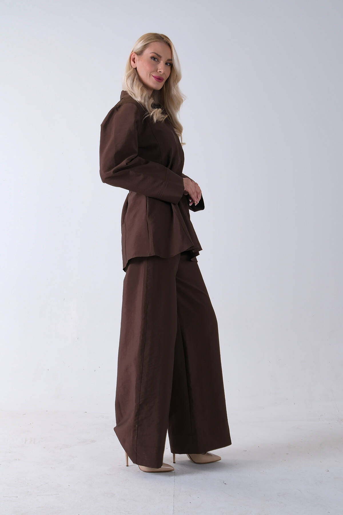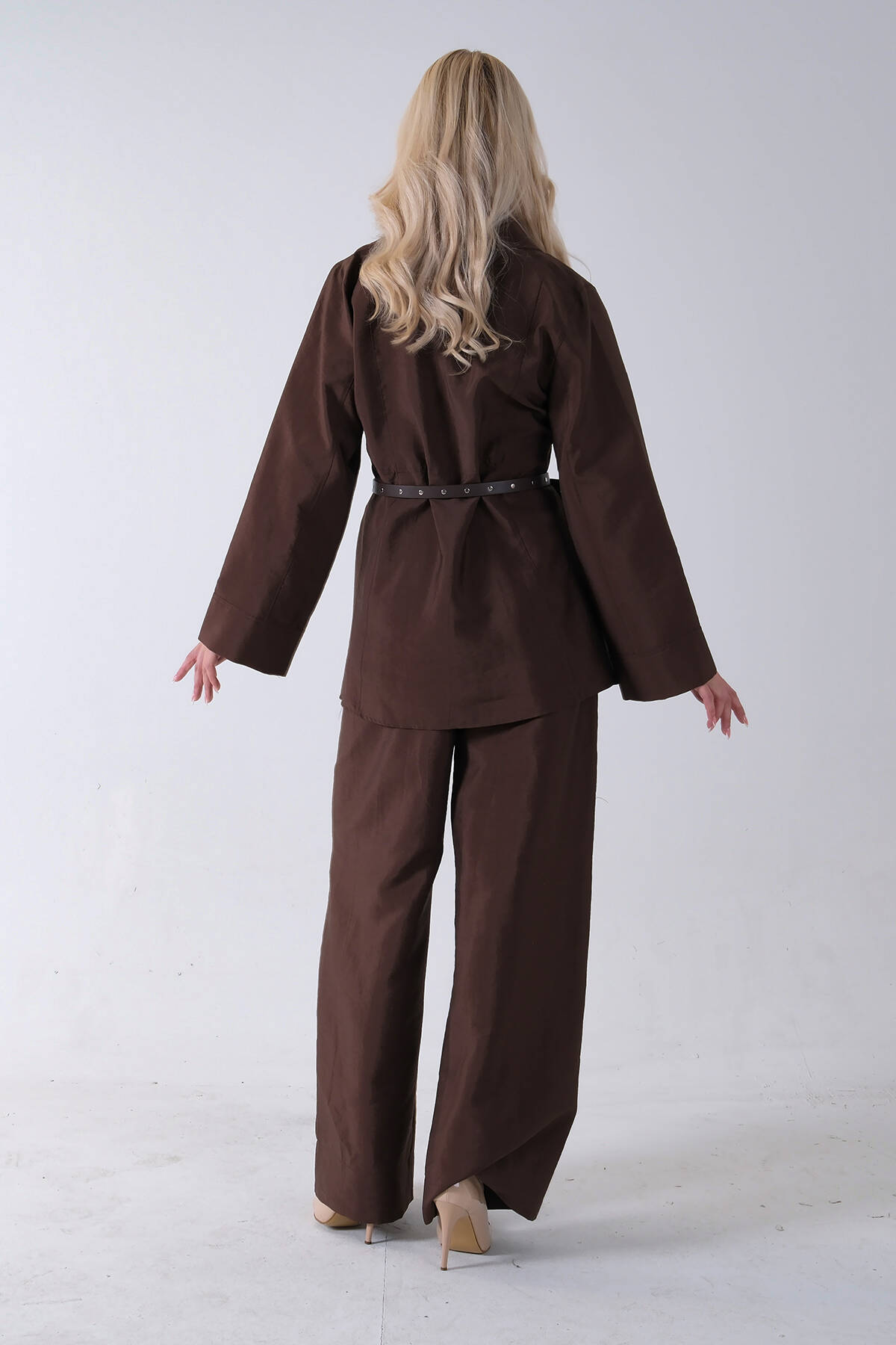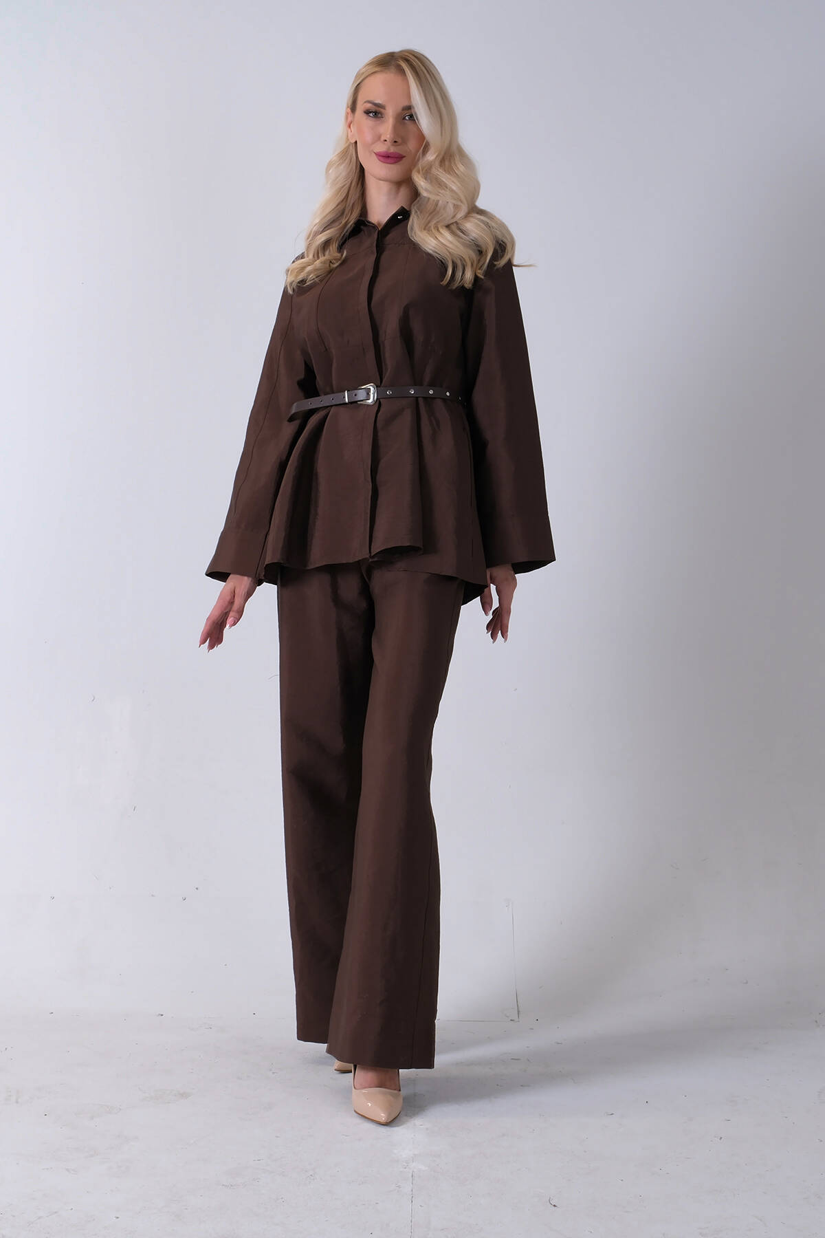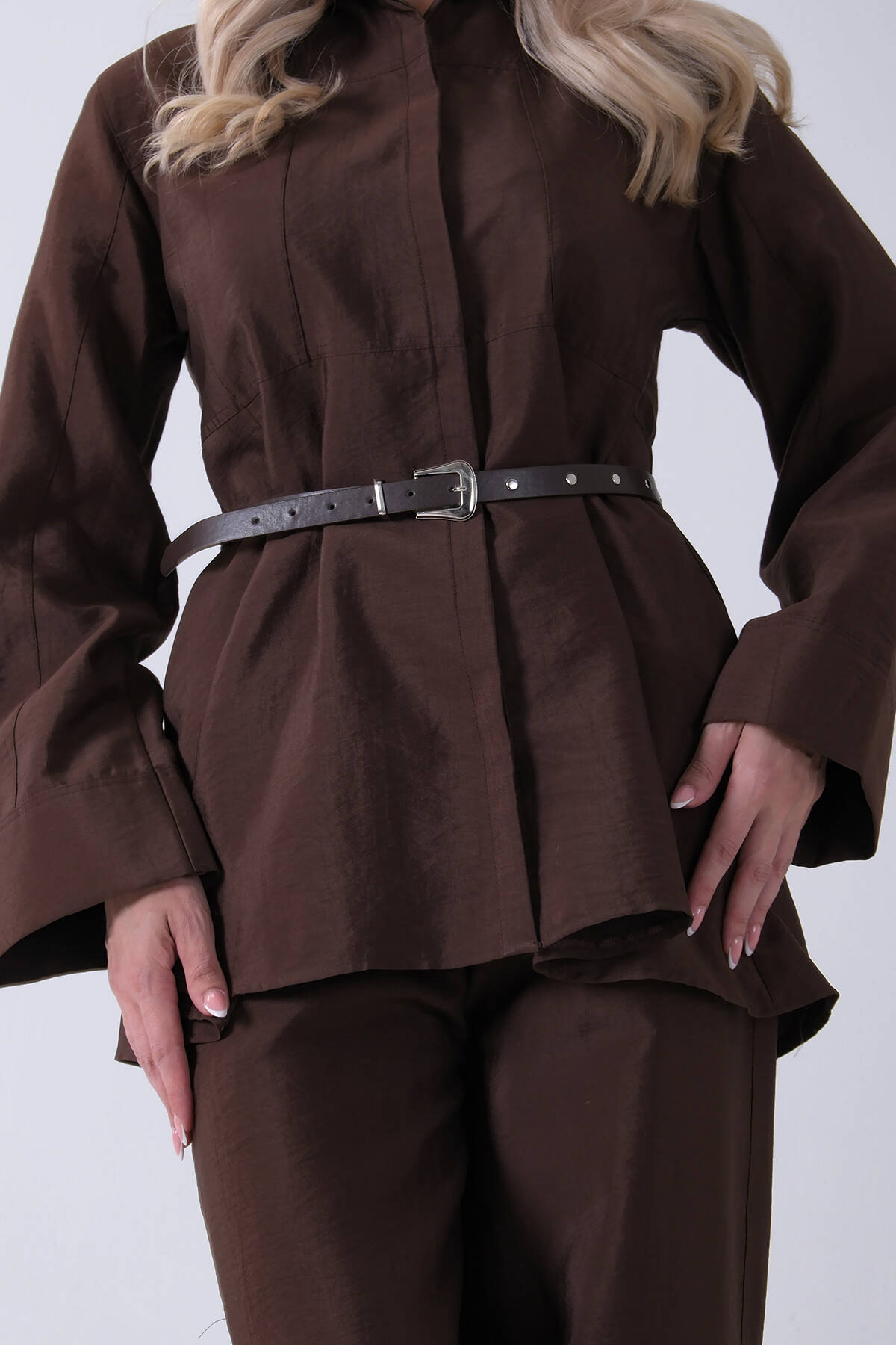 Kahve Bol Paça Pantolon Kemerli Parçalı Tunik Takım 5303167.05