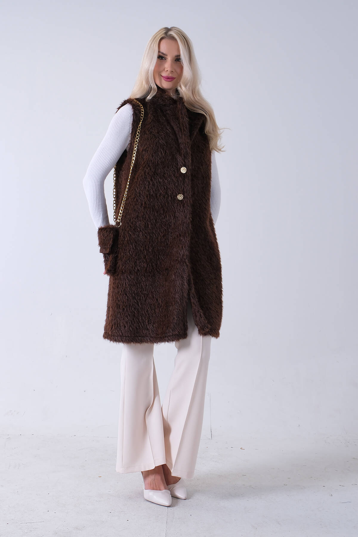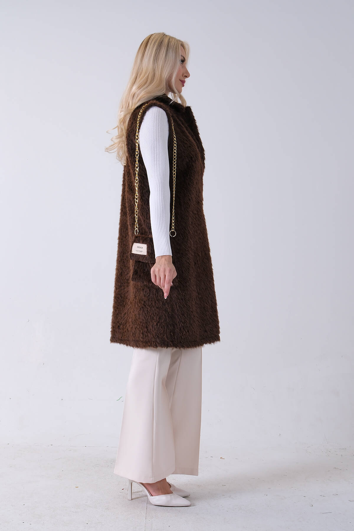 Kahve Çanta Aksesuarlı Tek Düğmeli Yün Yelek 31070199.05