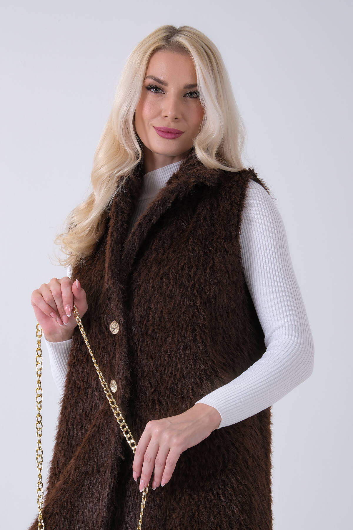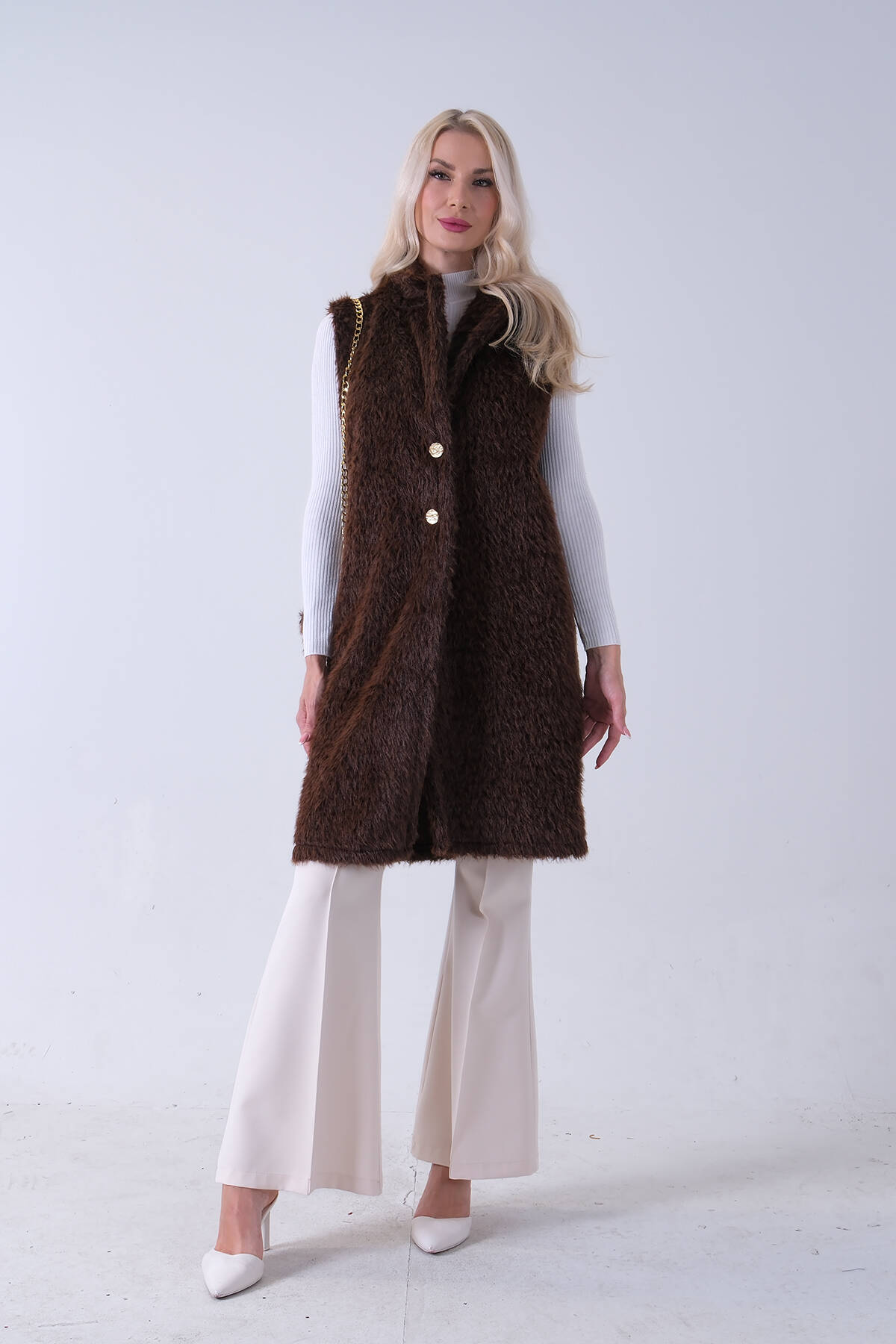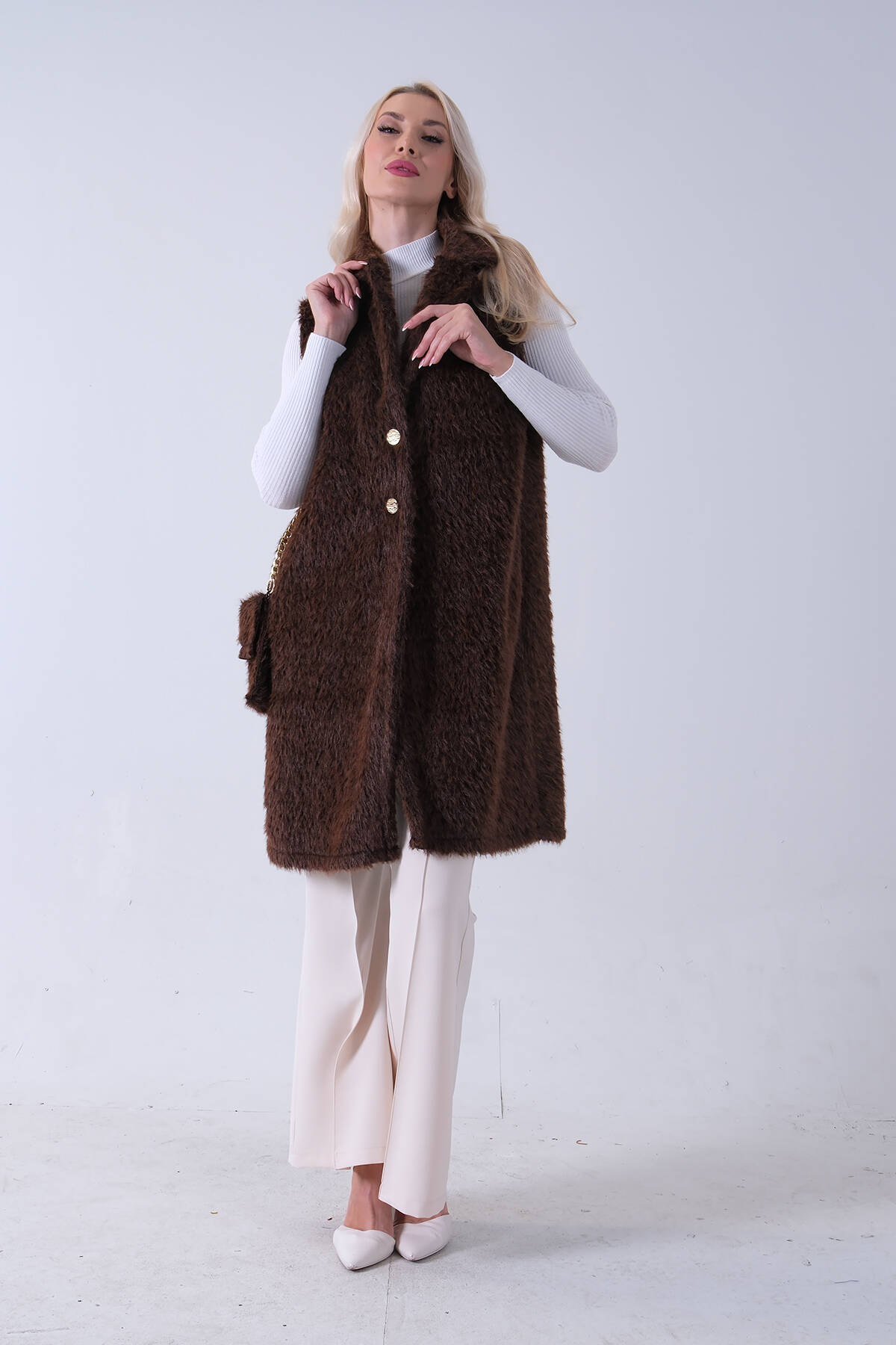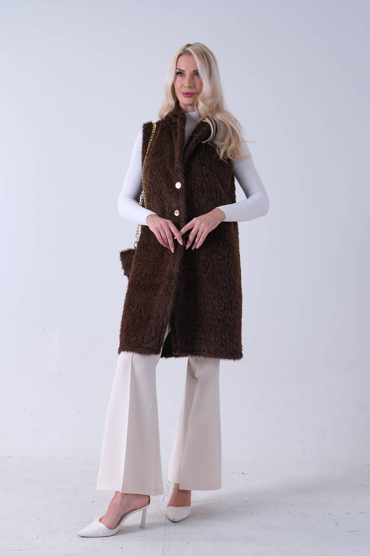 Taş Yakası Peluşlu Tek Düğme Kapamalı Yelek 4579035.50