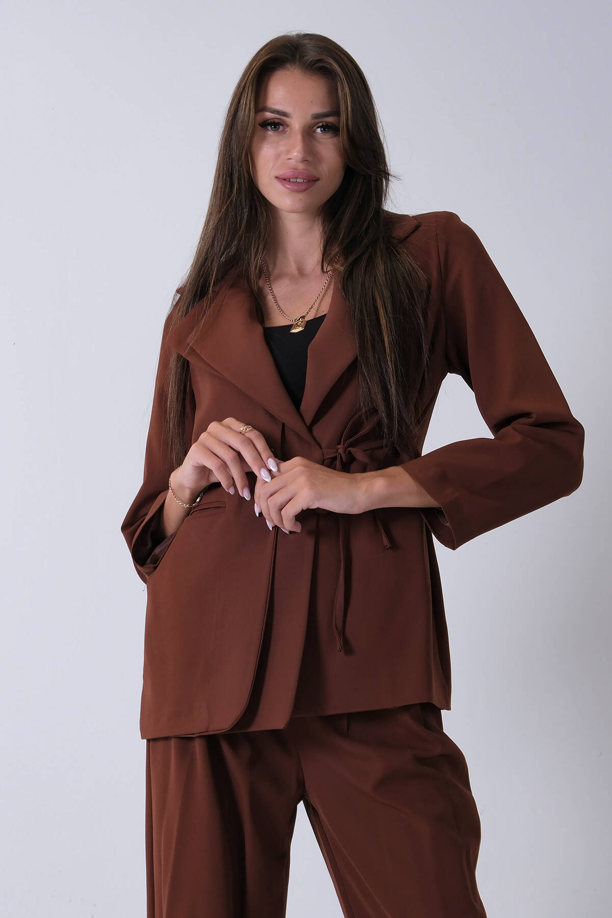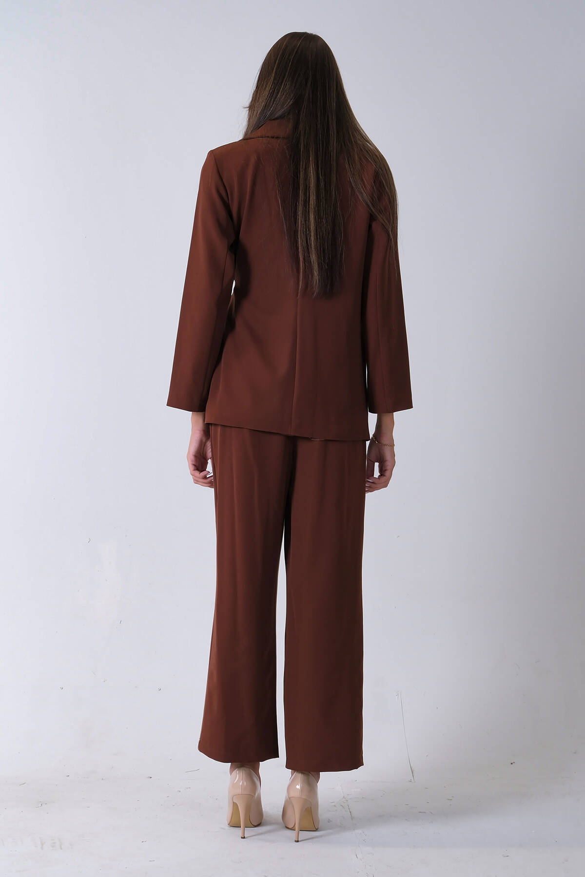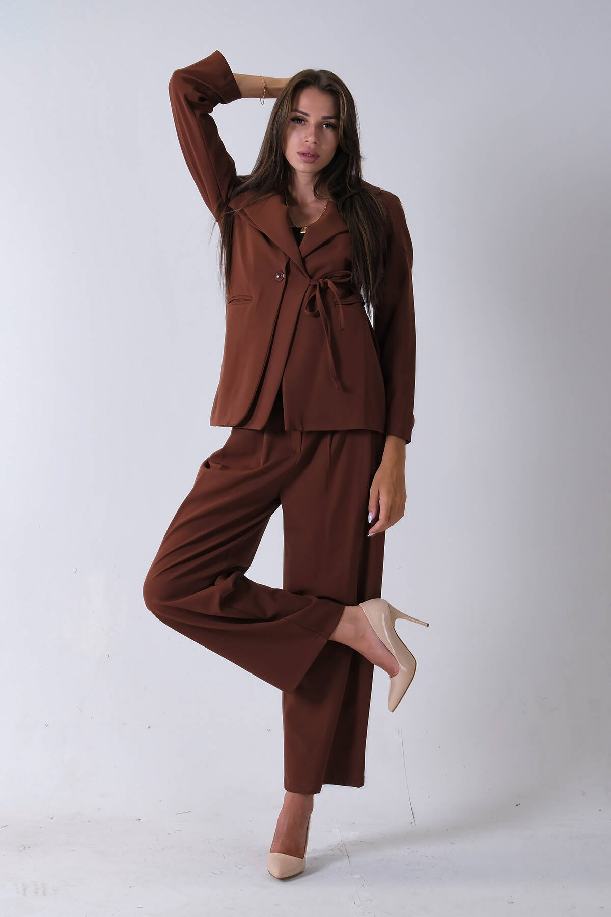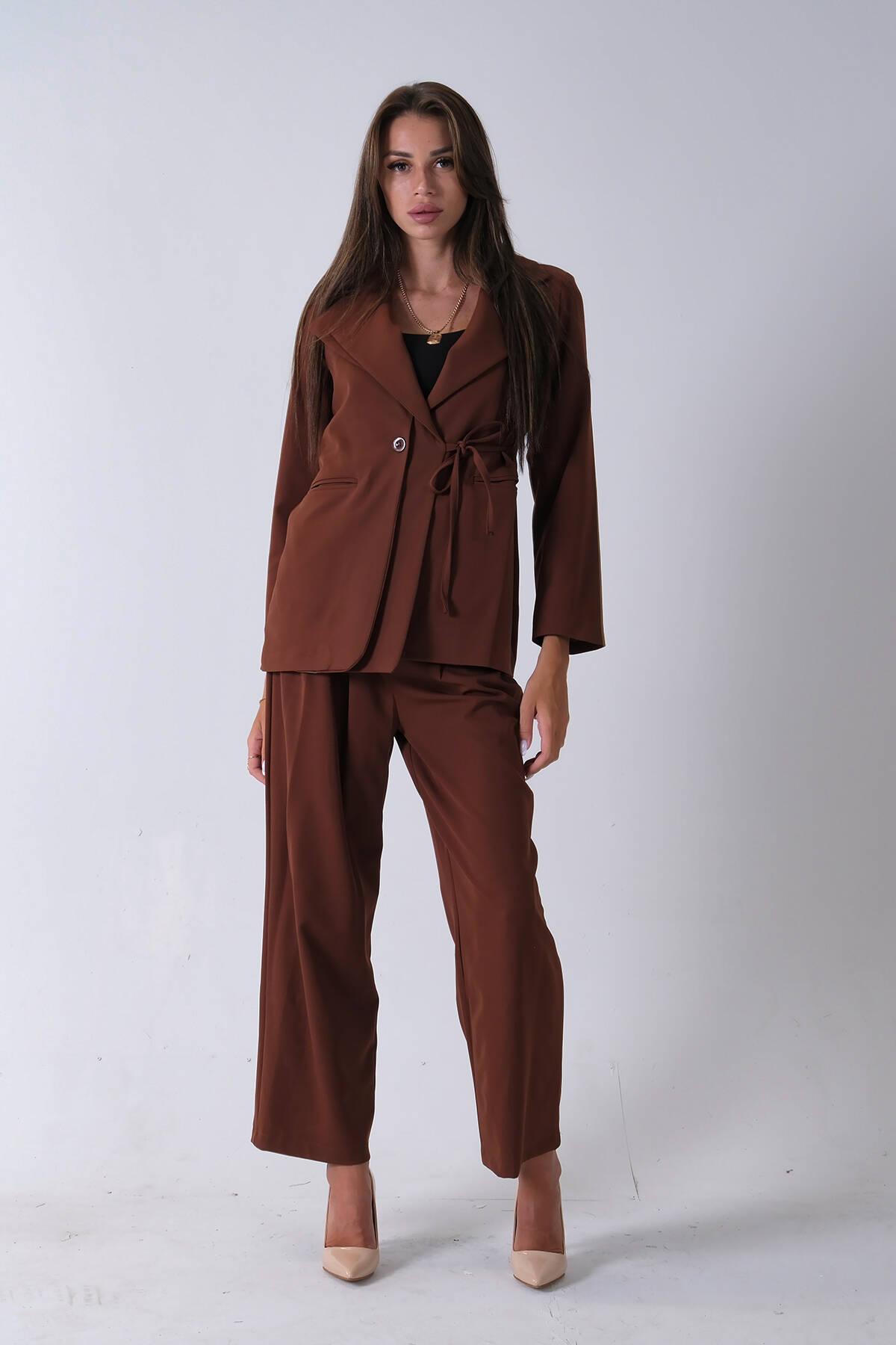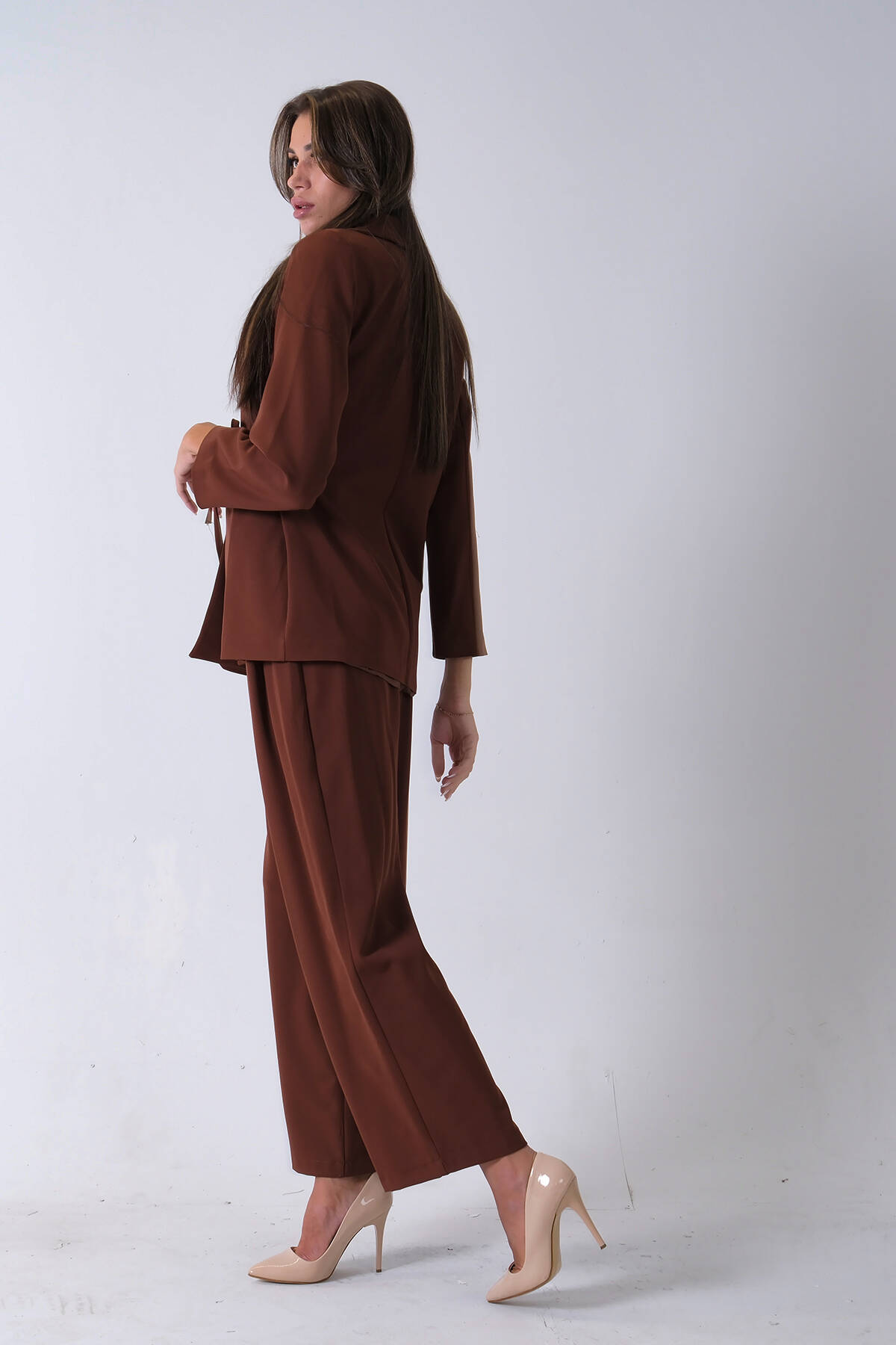 Kahve Çift Cep Yandan Bağlamalı Ceket Pantolonlu Takım 4592259.05