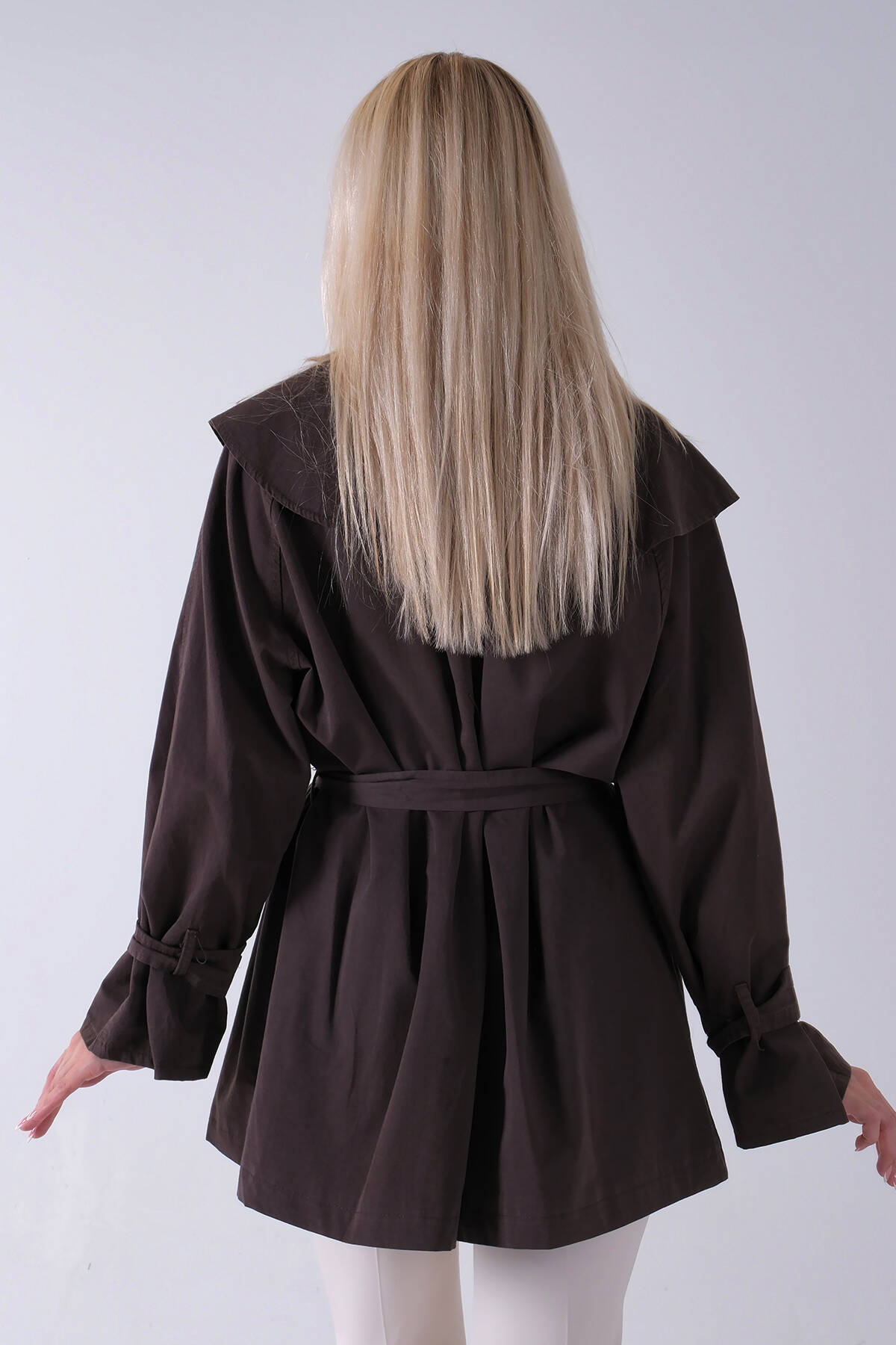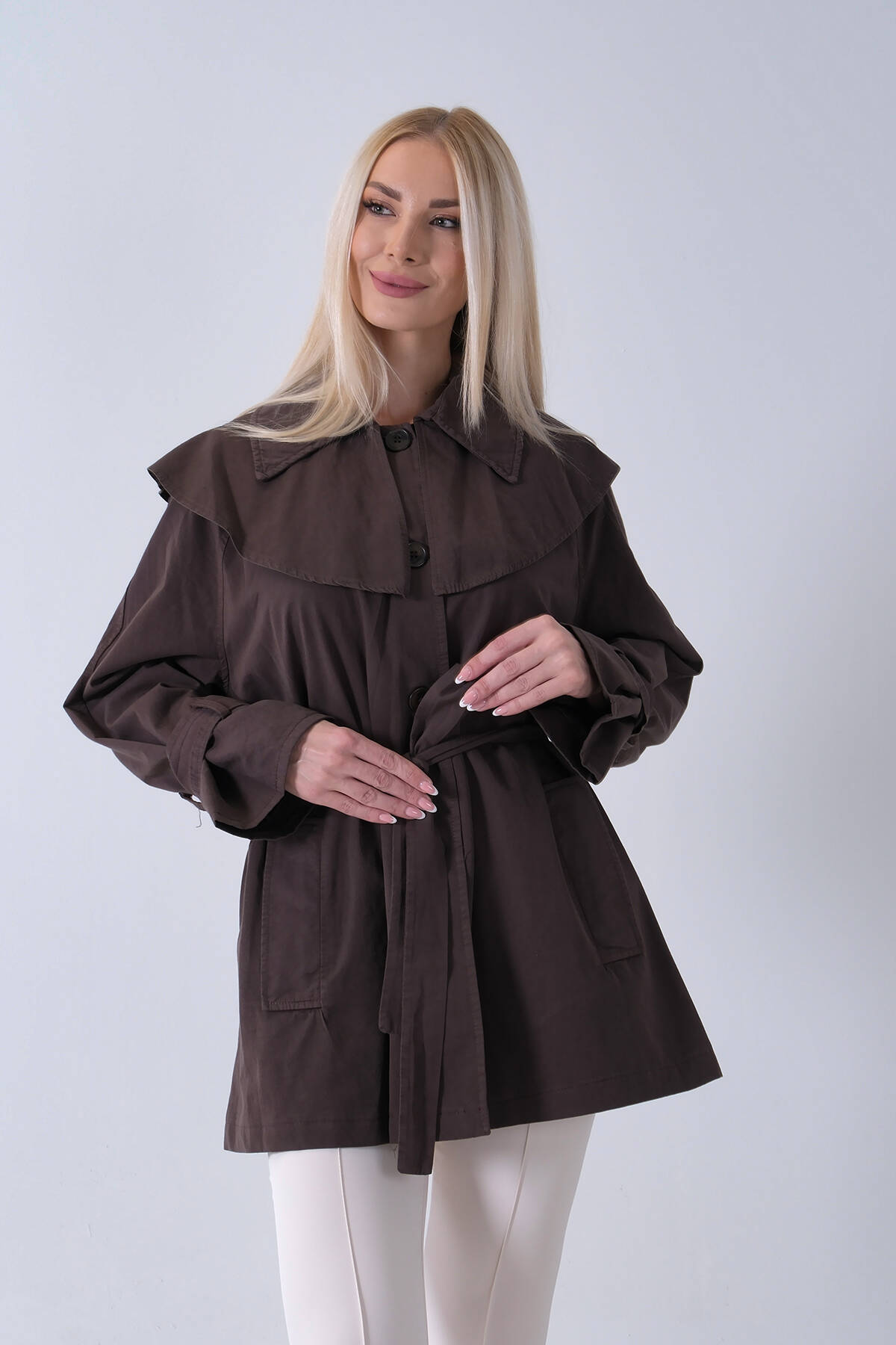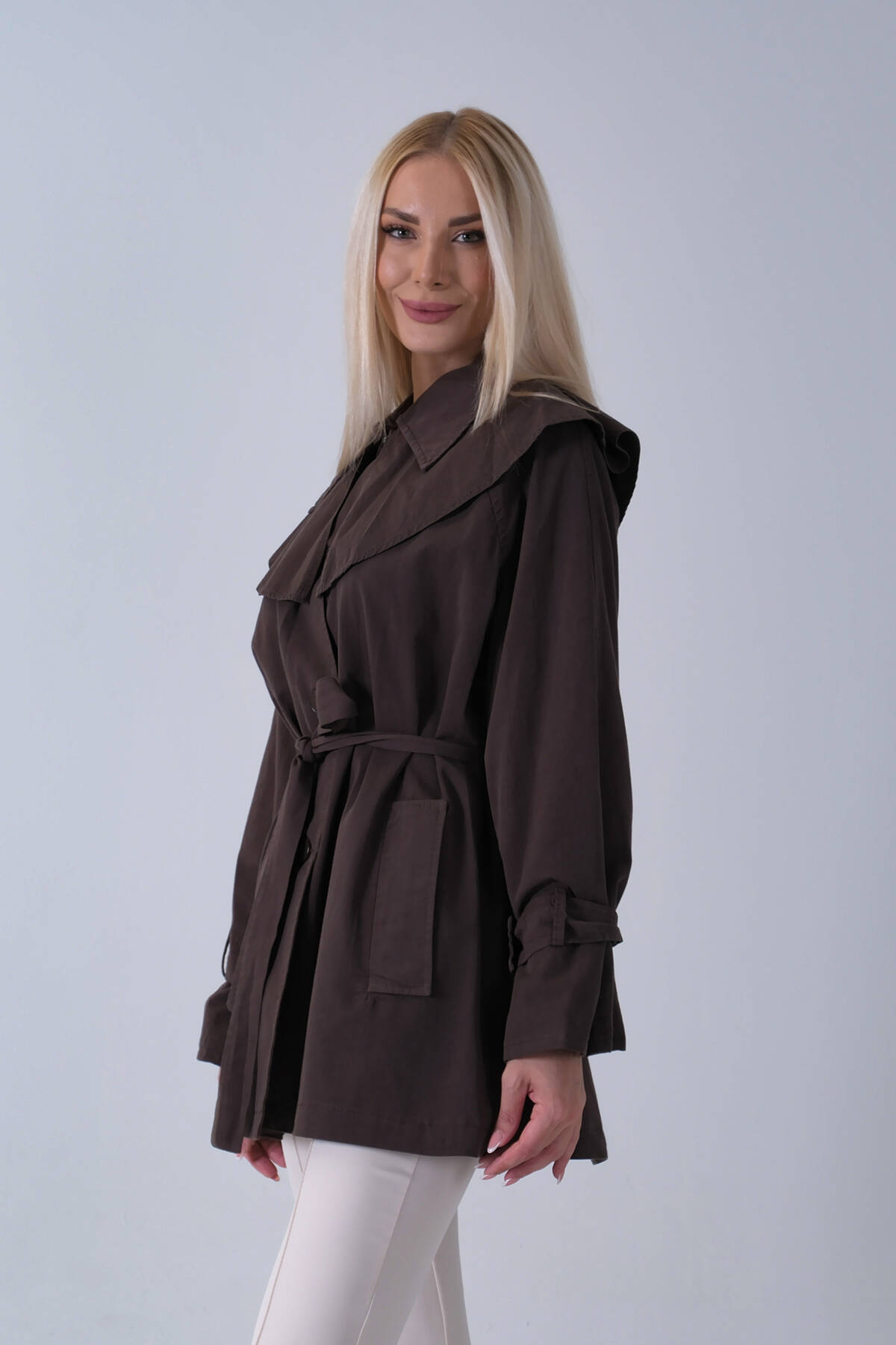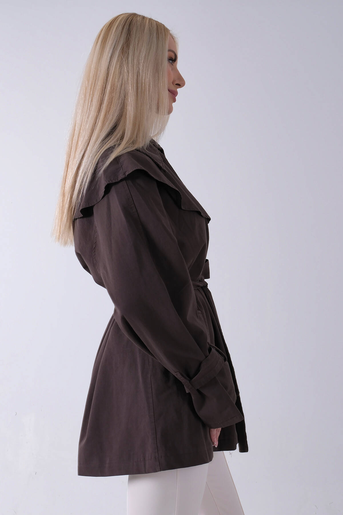 Kahve Düğme Kapamalı Kuşaklı Yandan Cepli Trenç 422235.05