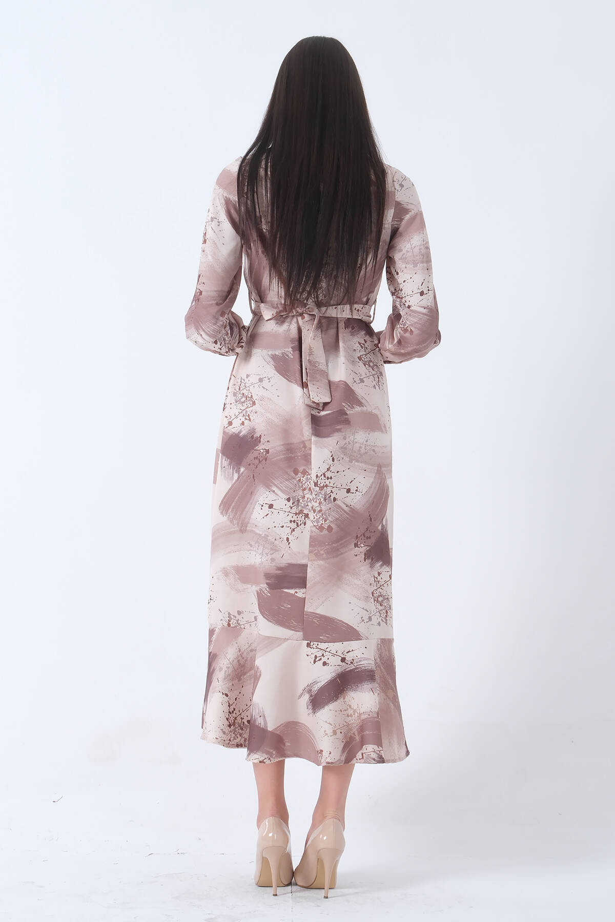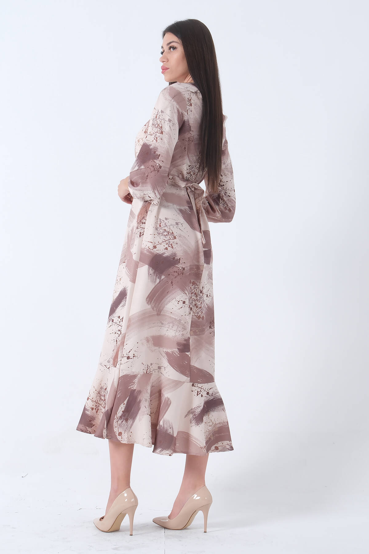 Kahve Fırça Darbesi Desenli Modern Şık Elbise 0807769.05