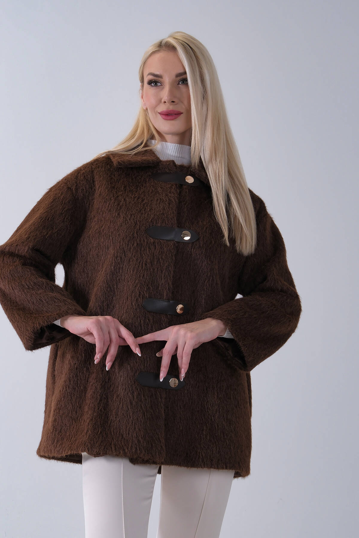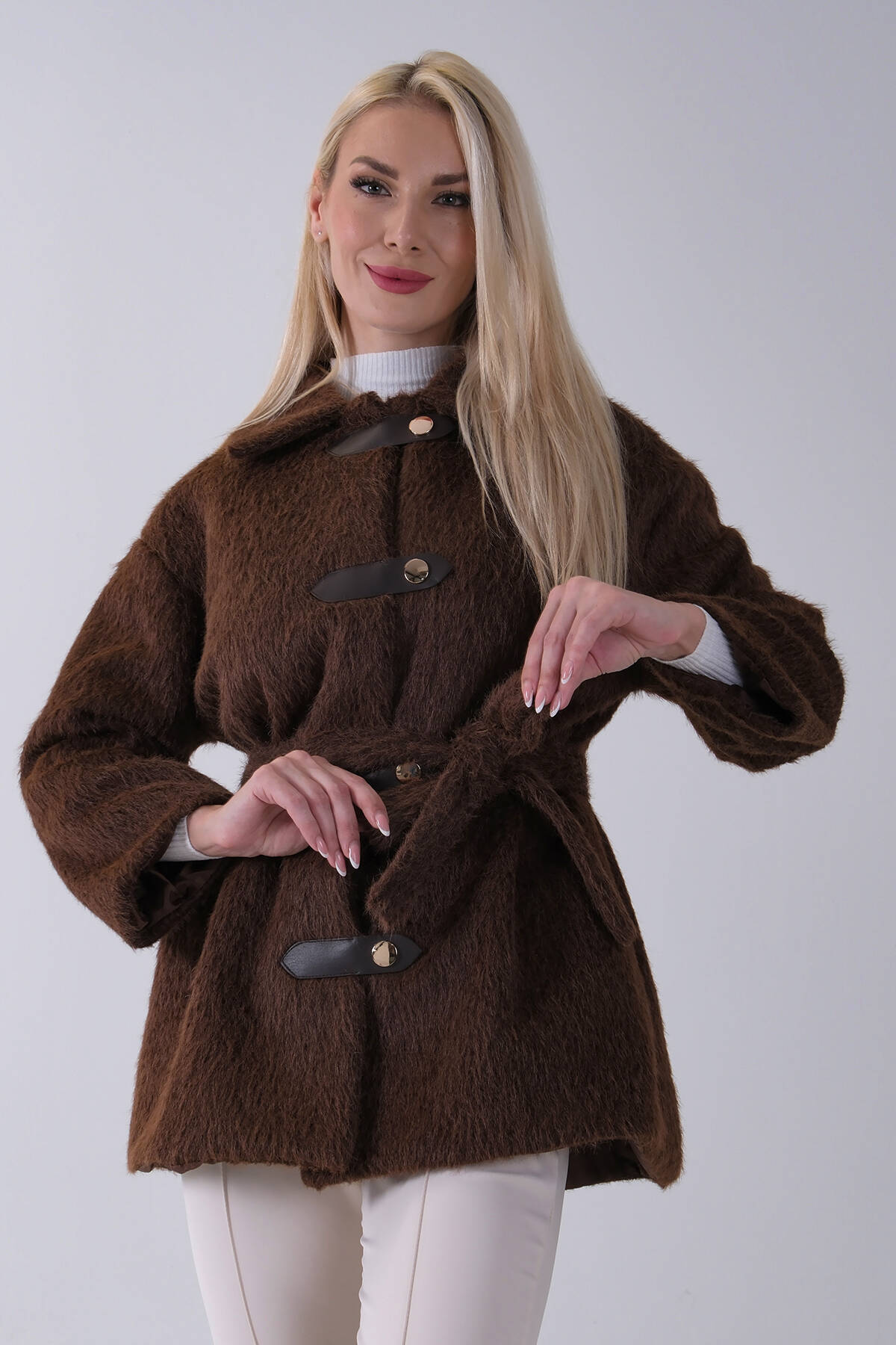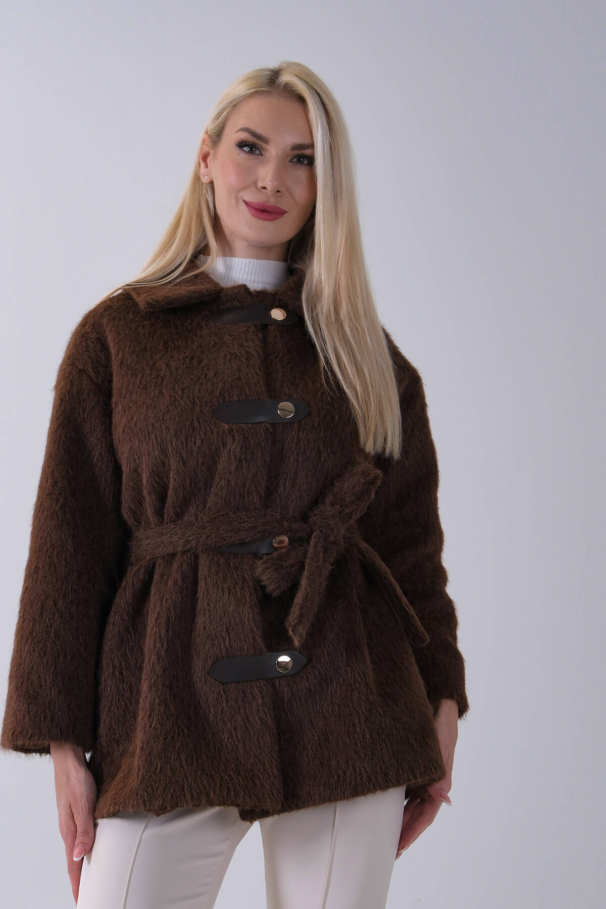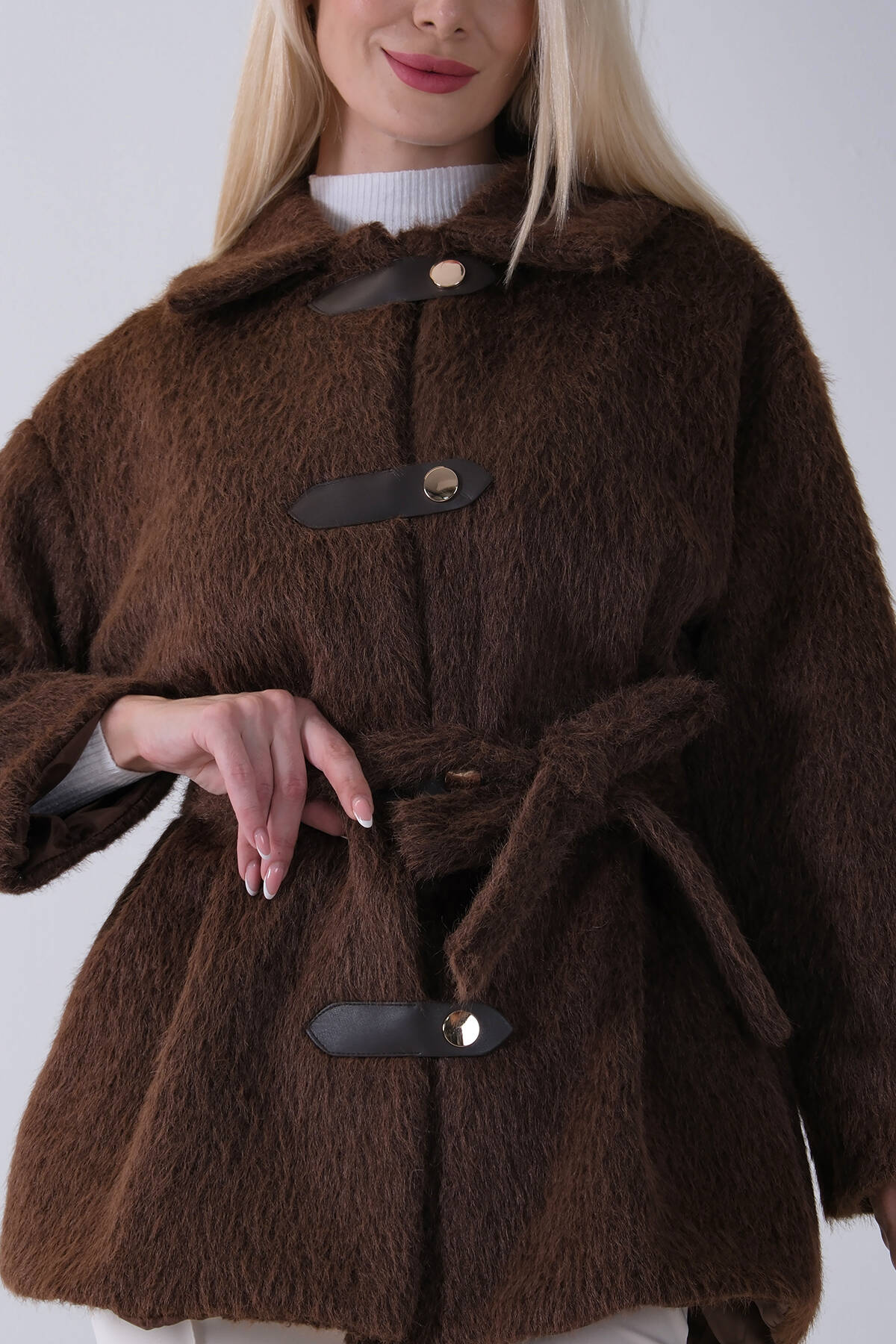 Kahve Gömlek Yakalı 4 Düğme Deri Bukle Detaylı Kaşe Yün Ceket 5307122.05